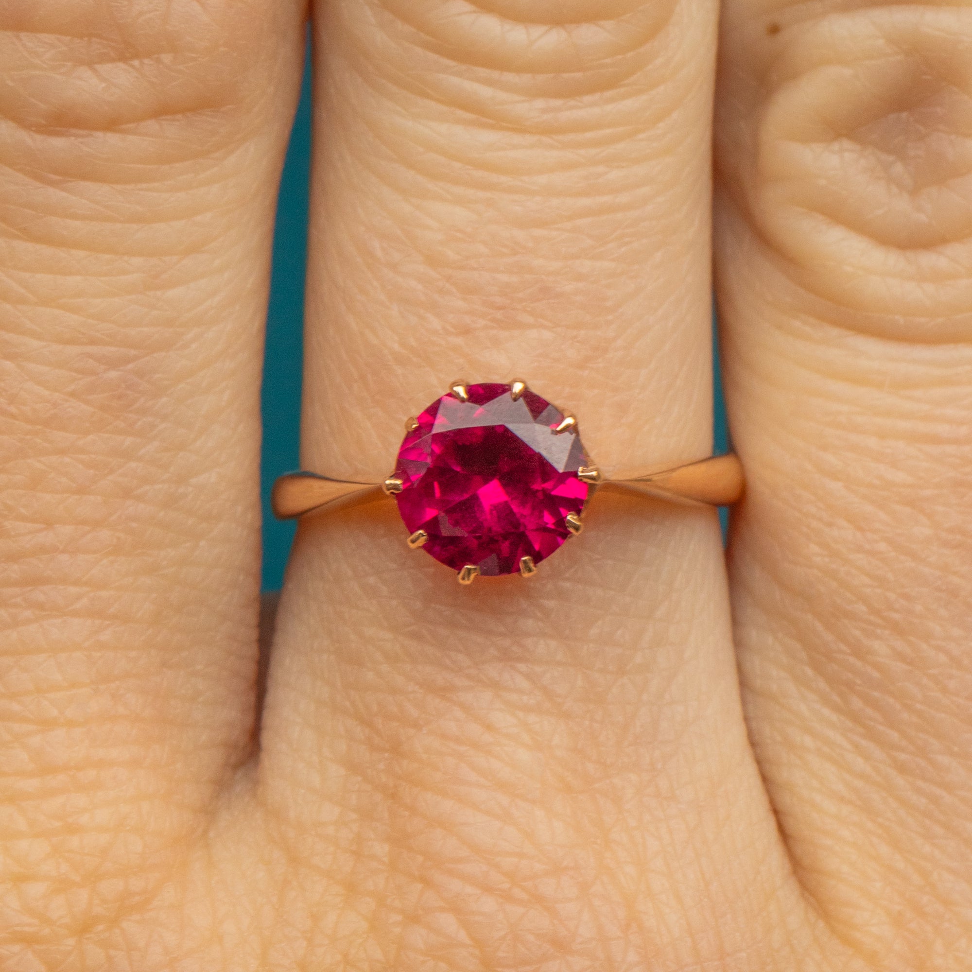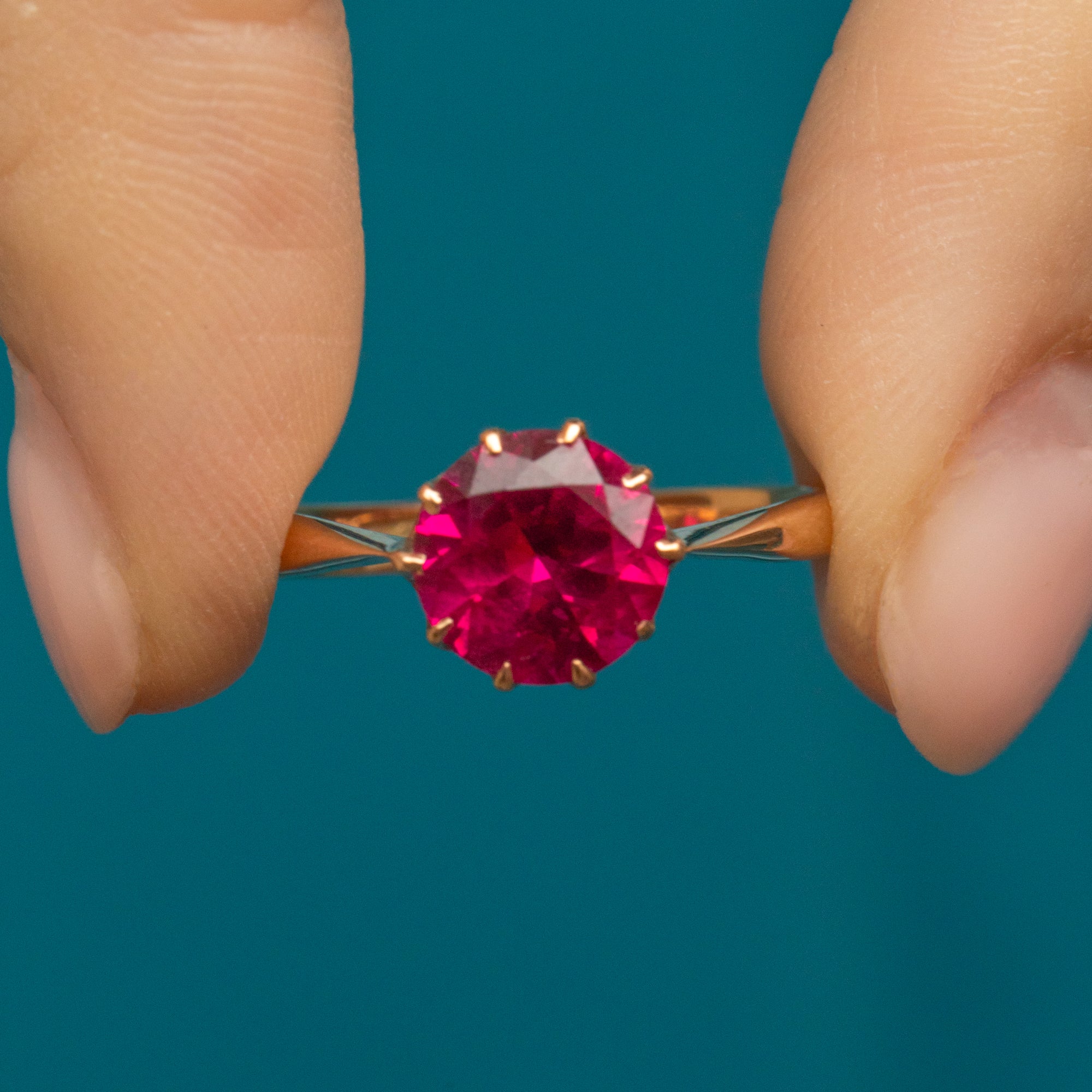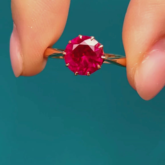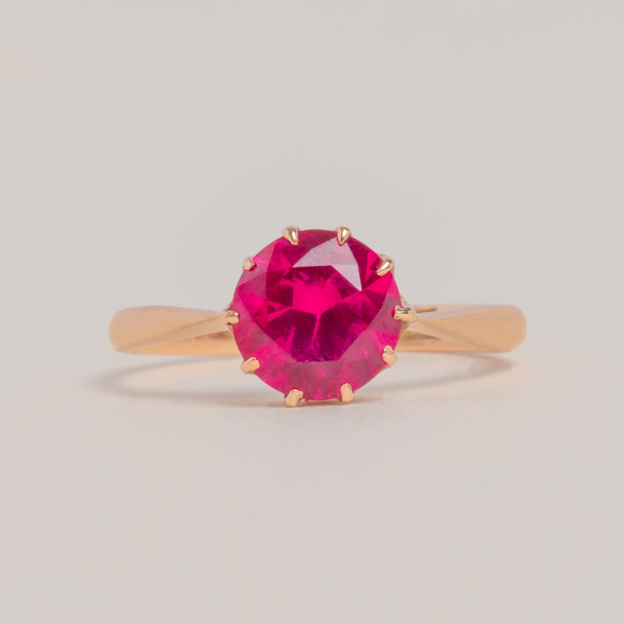 This antique 9ct Gold Ruby solitaire ring would make a fierce addition to any jewellery collection! Homing a Verneille synthetic Ruby, this Victorian ring possesses a rich history, as this was the first successful method of creating synthetic gemstones, developed in 1886.