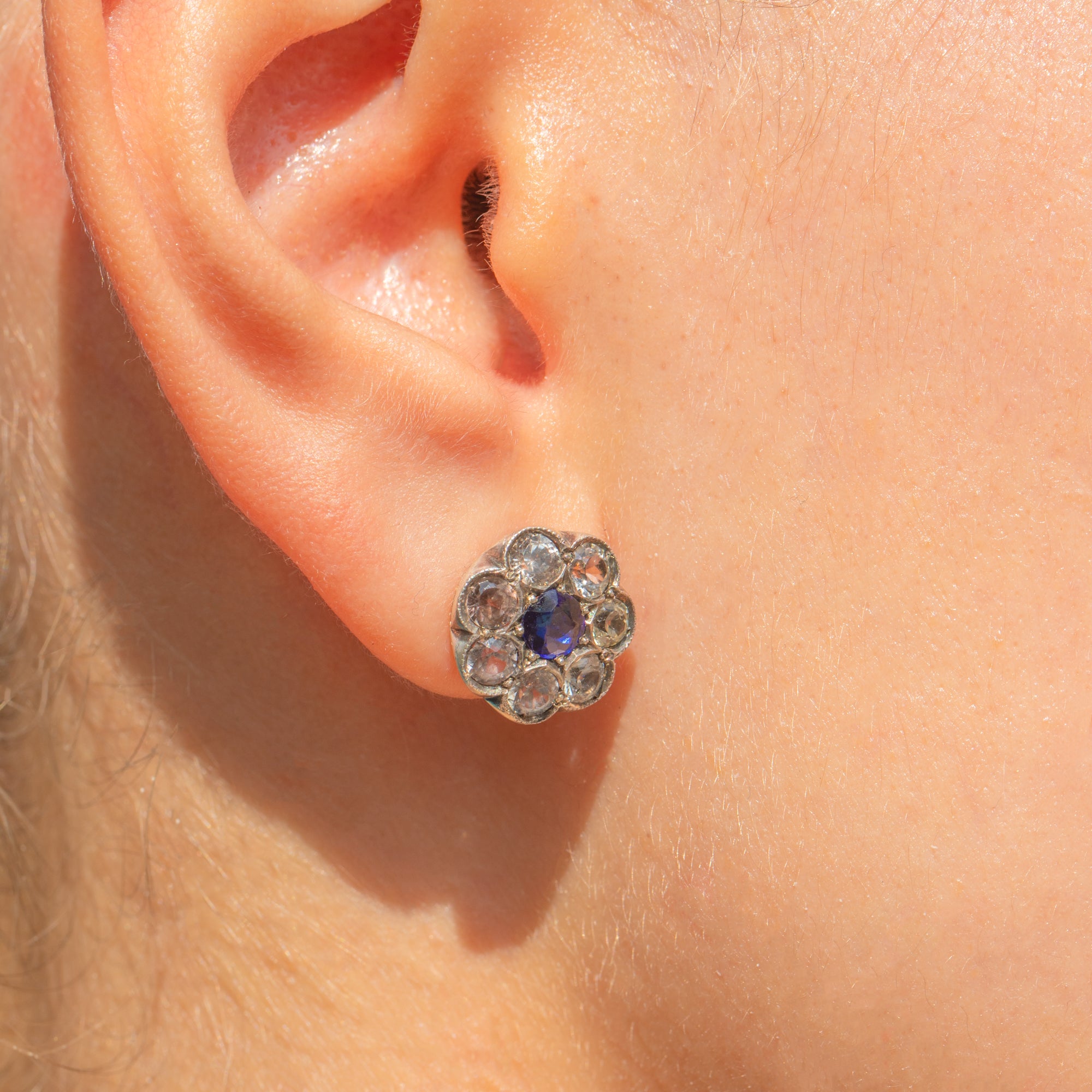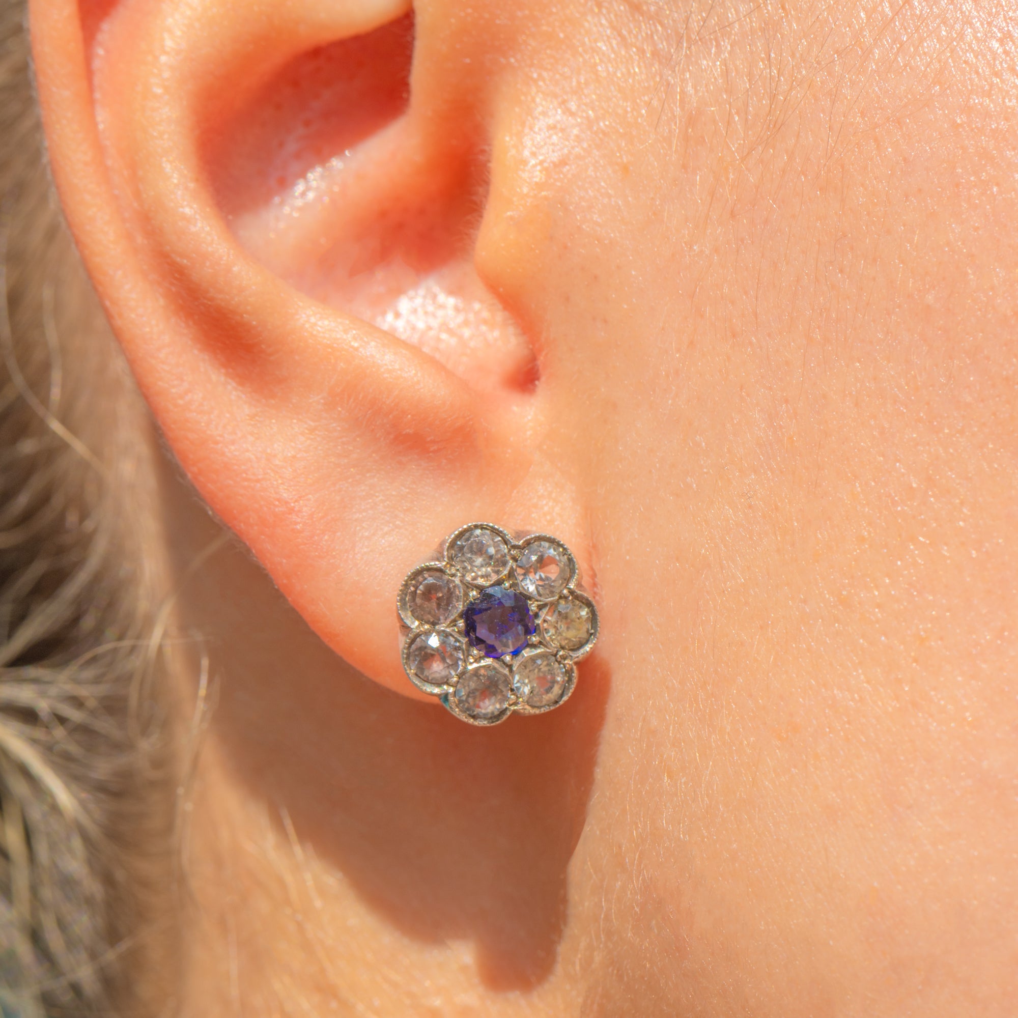 Antique 9ct Gold Sapphire Flower Cluster Earrings