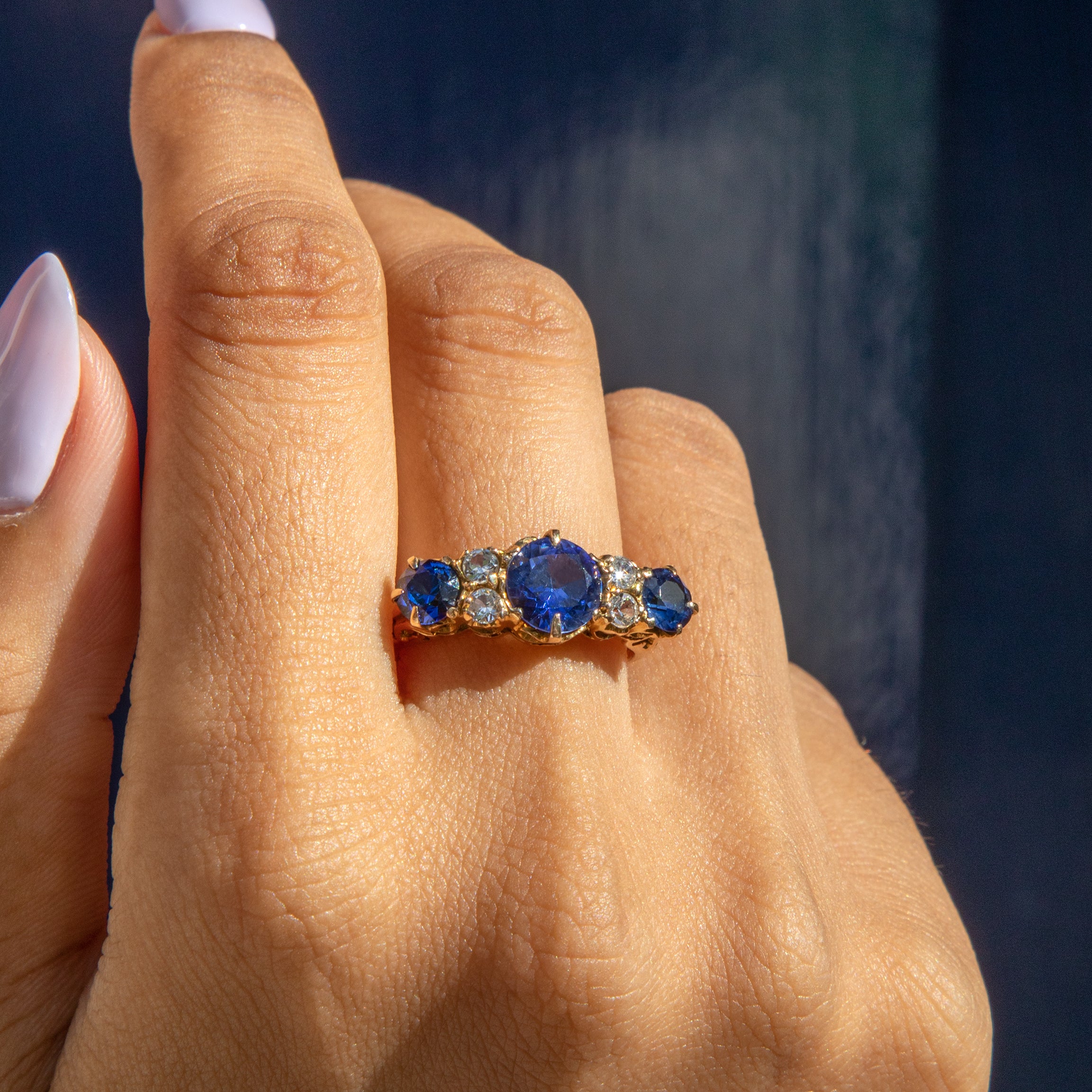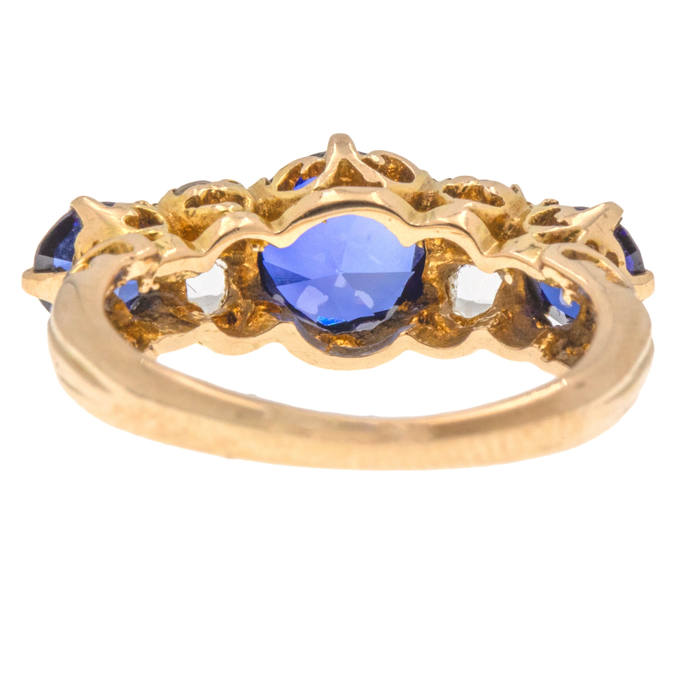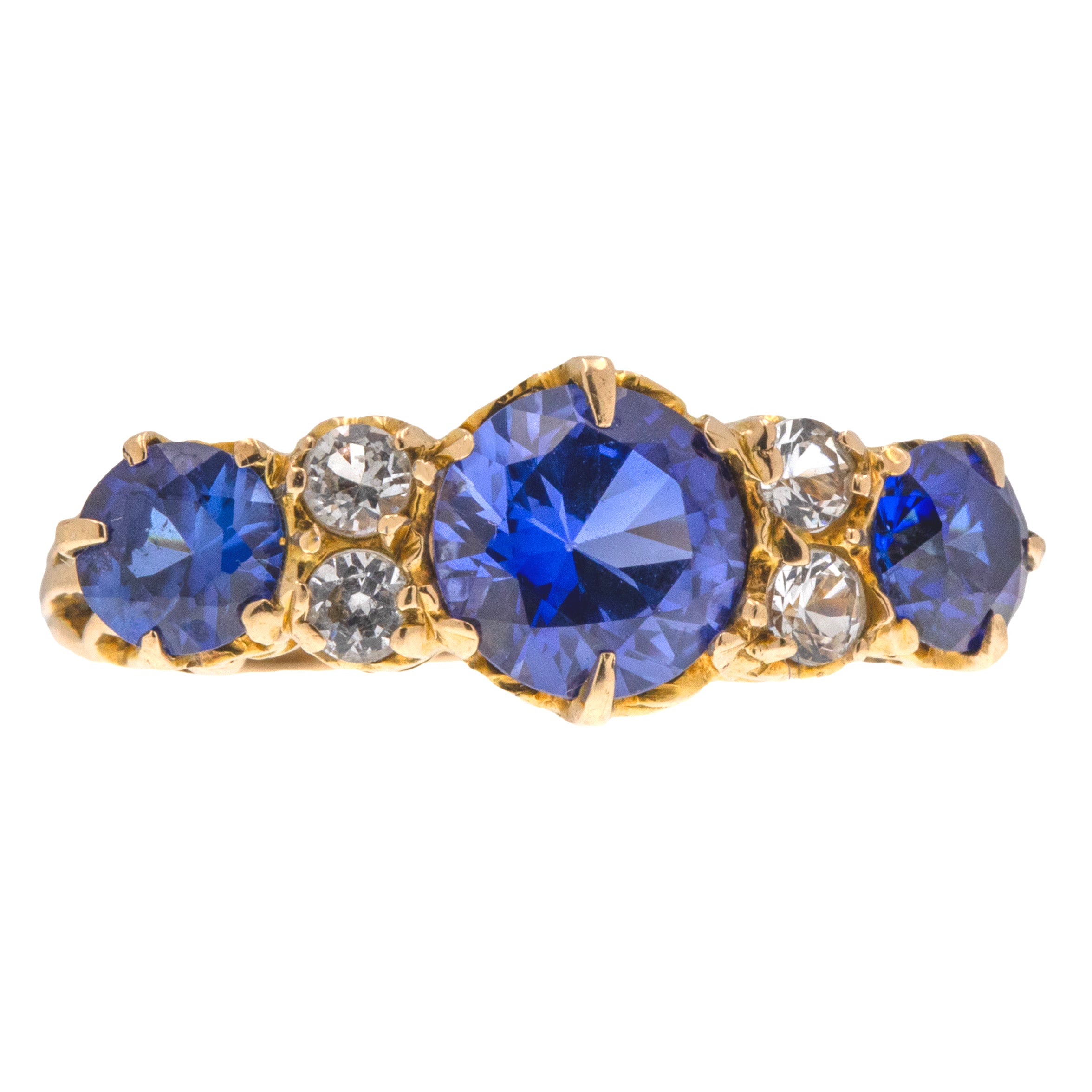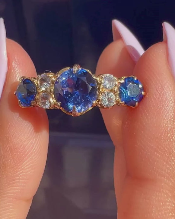 Bague ancienne édouardienne en or 9 carats avec trois saphirs, 1,35 ct