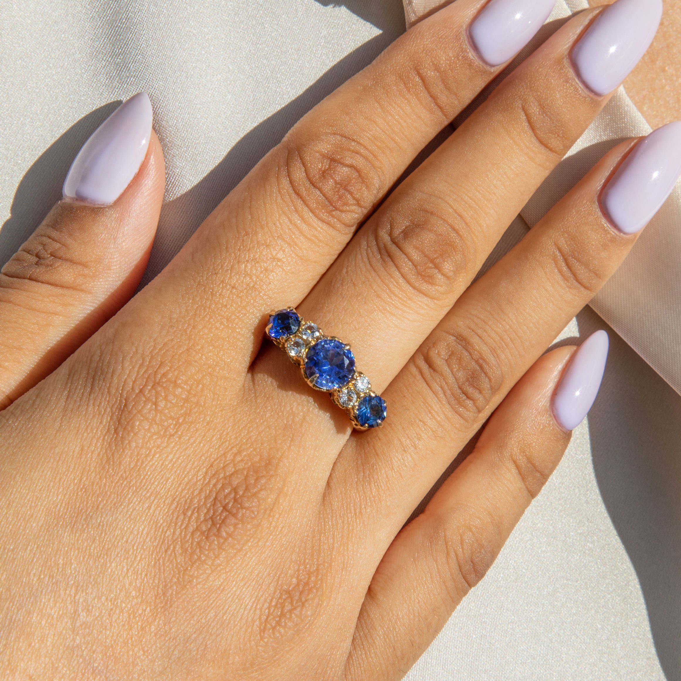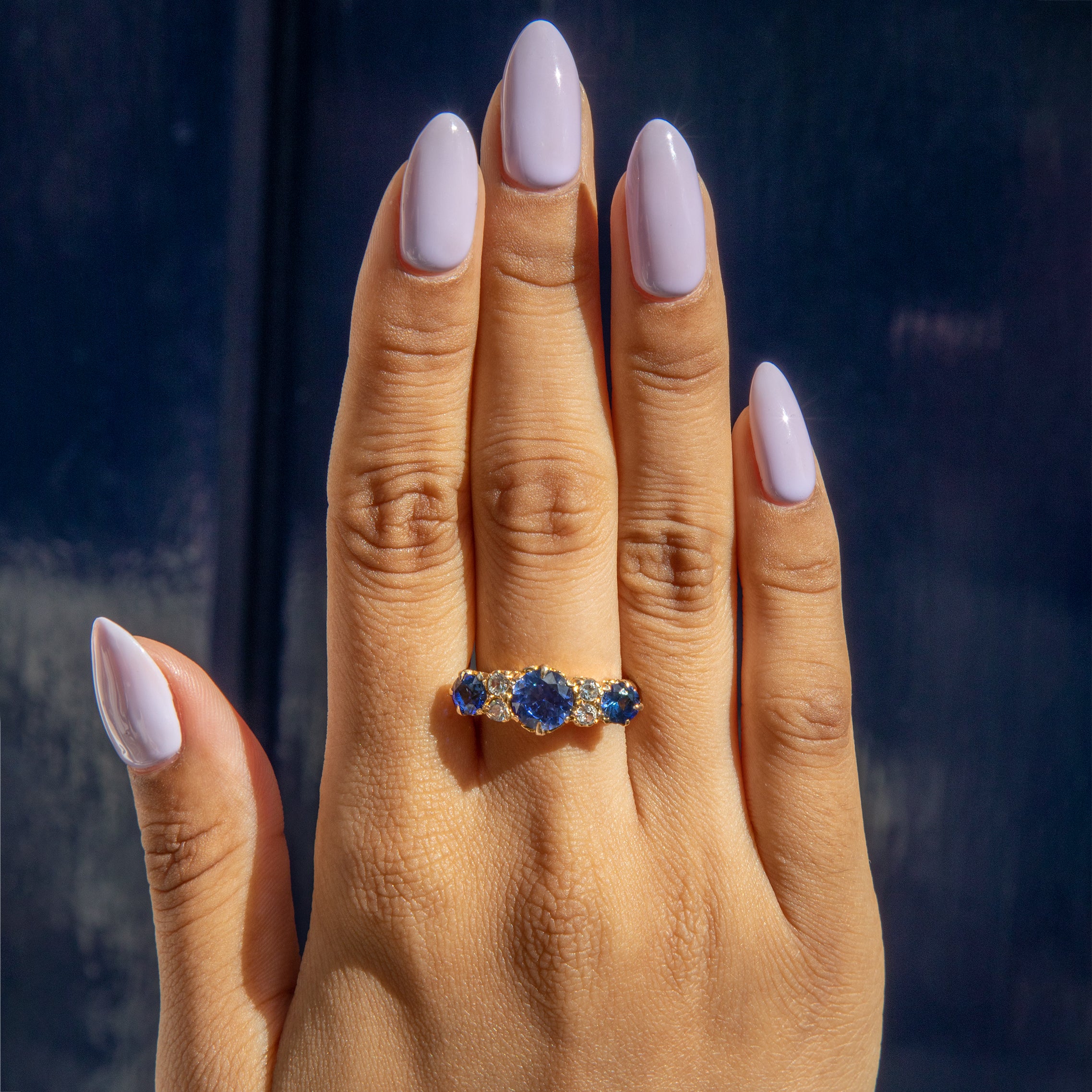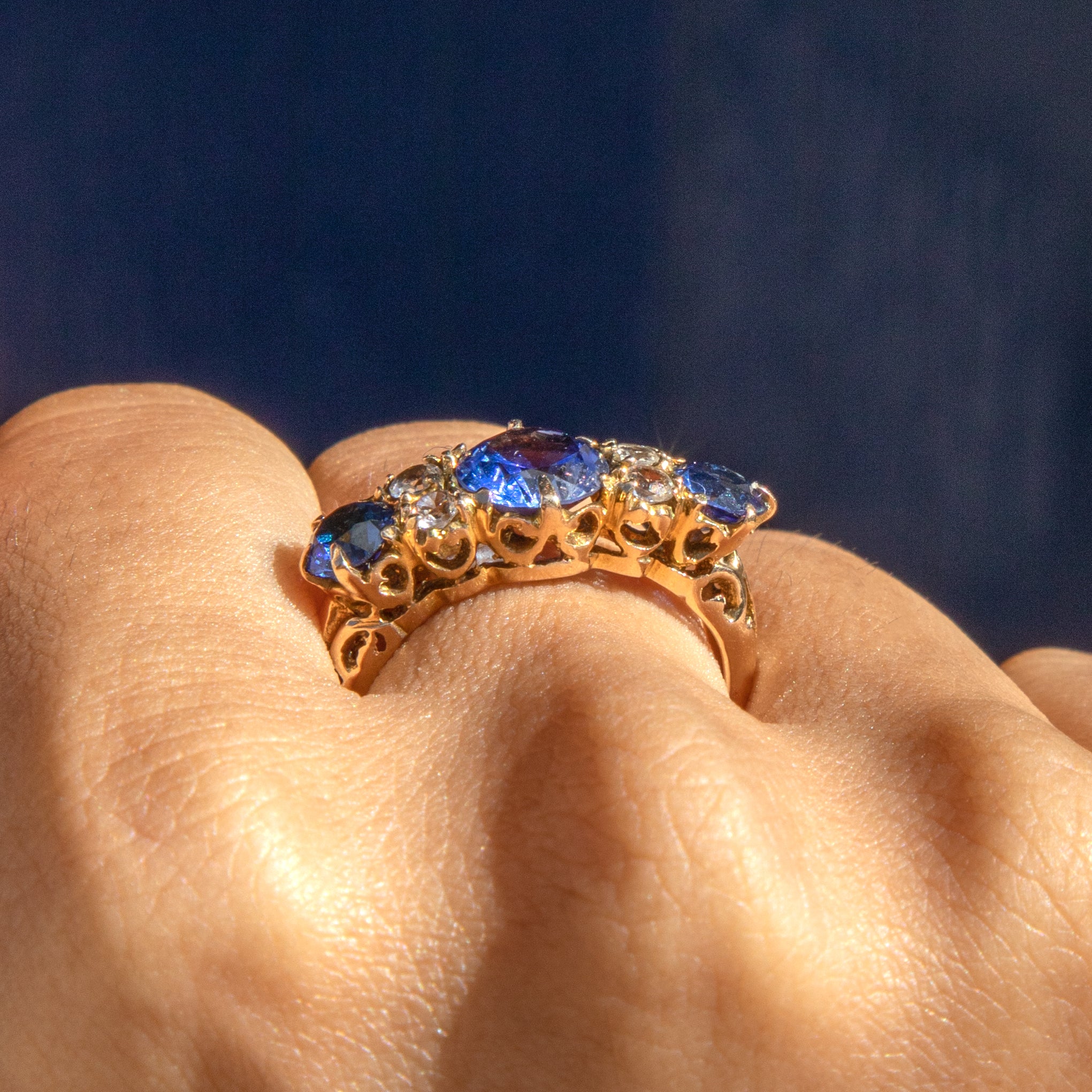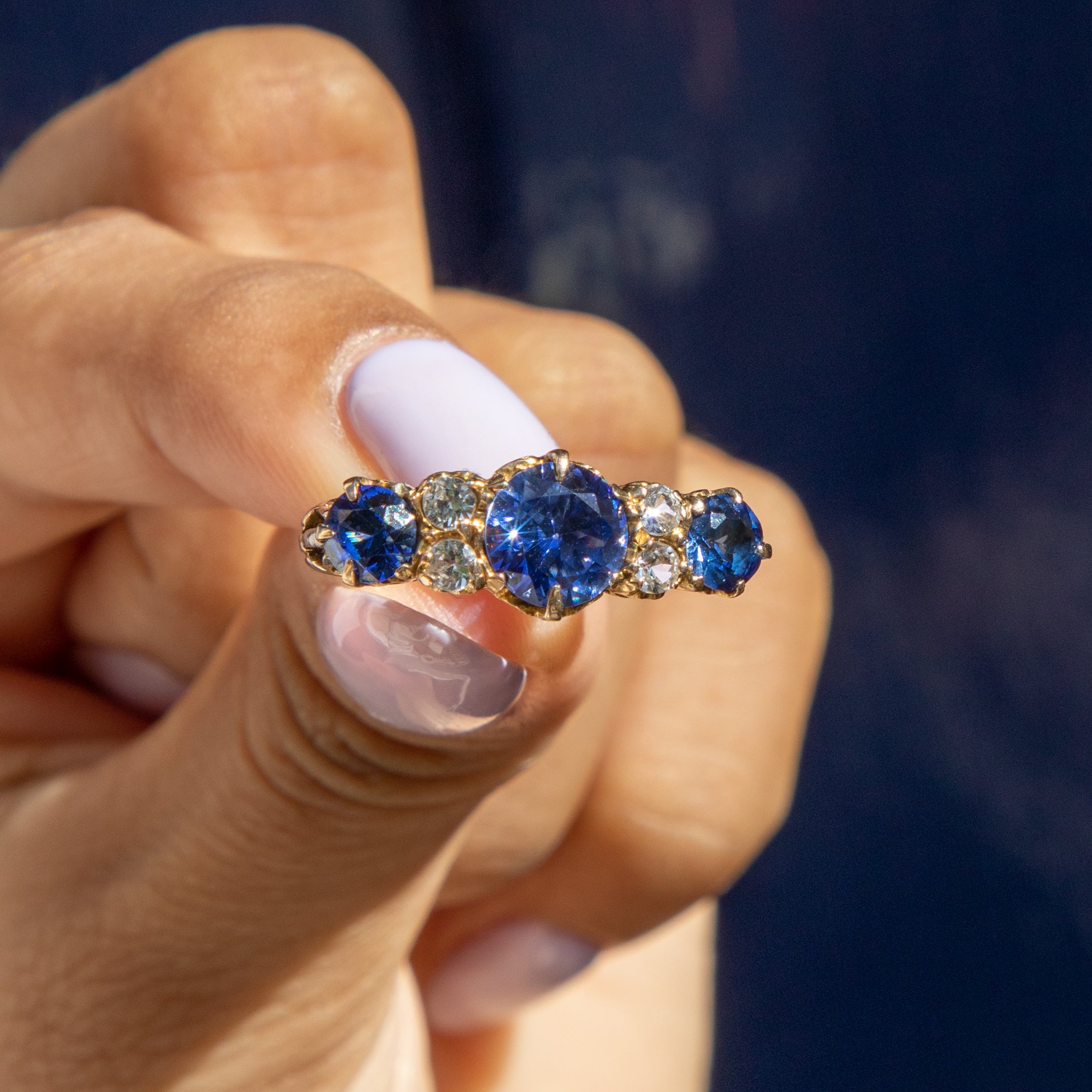 Bague ancienne édouardienne en or 9 carats avec trois saphirs, 1,35 ct
