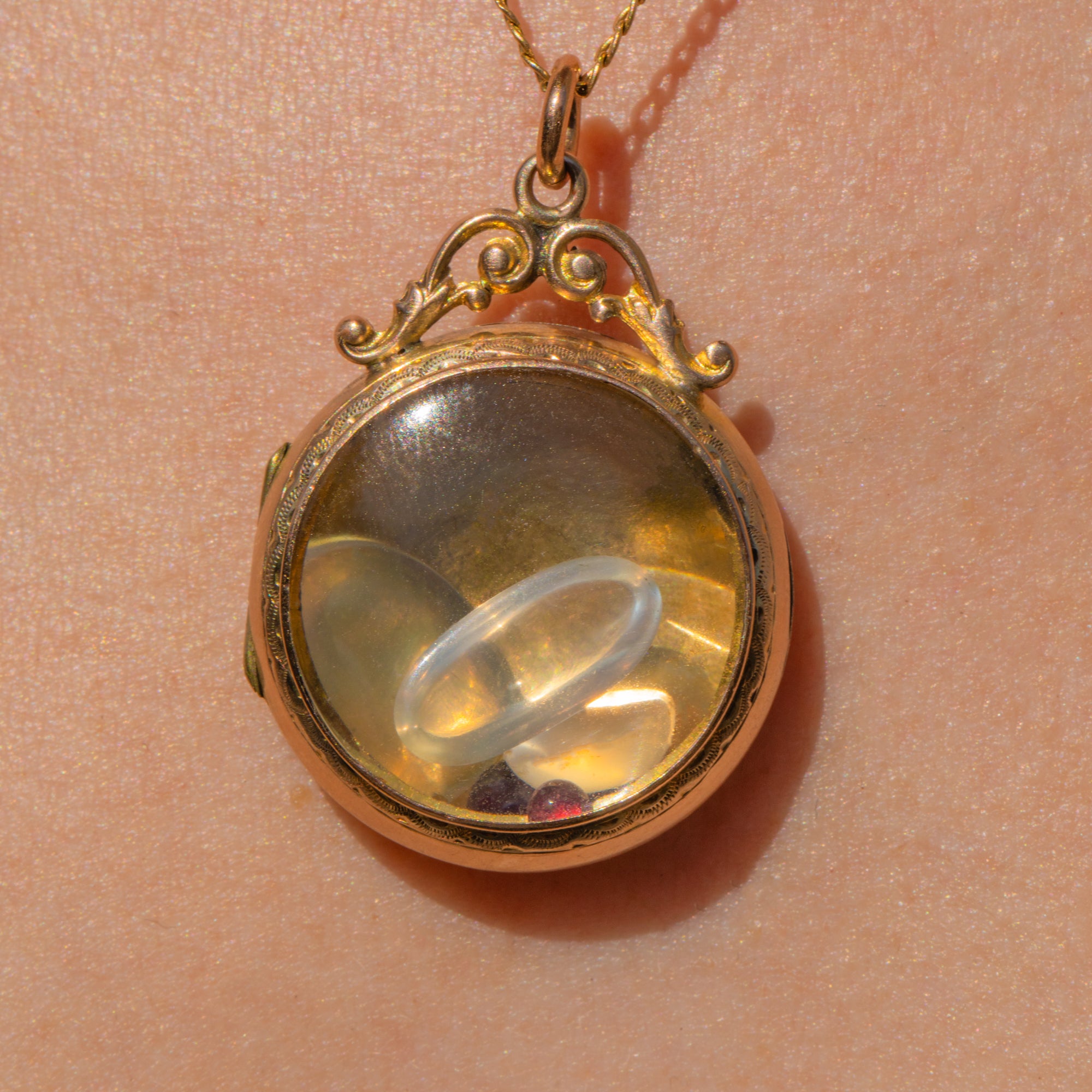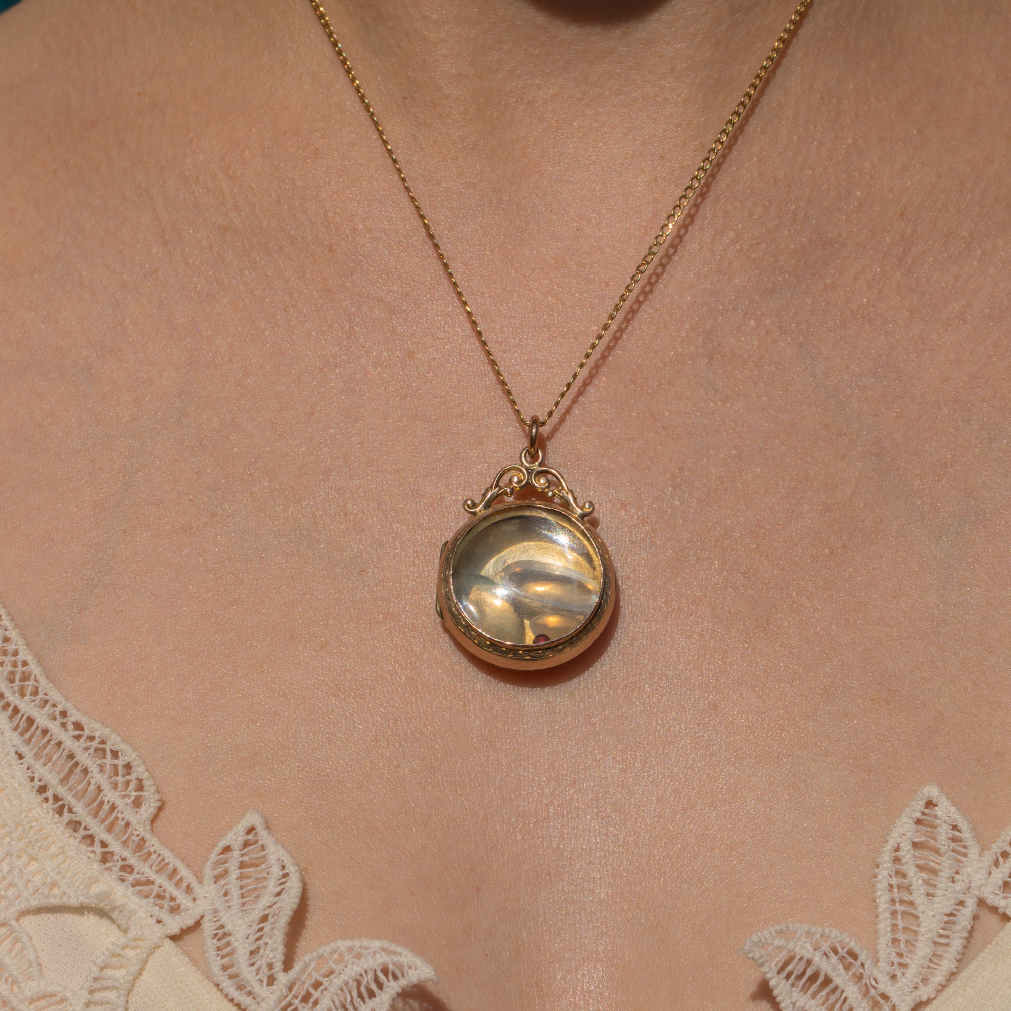 VERY GOOD. This antique 9ct Gold shaker locket is in very good condition! Her form has retained its structural integrity with the glass securely in place, free from any damage to note. The locket door closes securely, safely holding it's contents inside. Once open the inside frame has some damage and darkening but this cannot be seen when worn. With a sturdy bale and jump-ring, this Edwardian shaker locket can be worn with confidence!