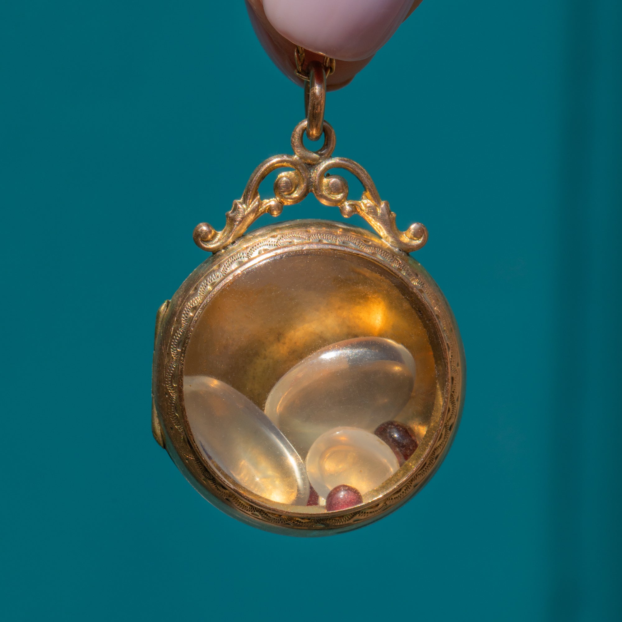 Antique 9ct Gold Shaker Locket, Loose Moonstones & Garnets