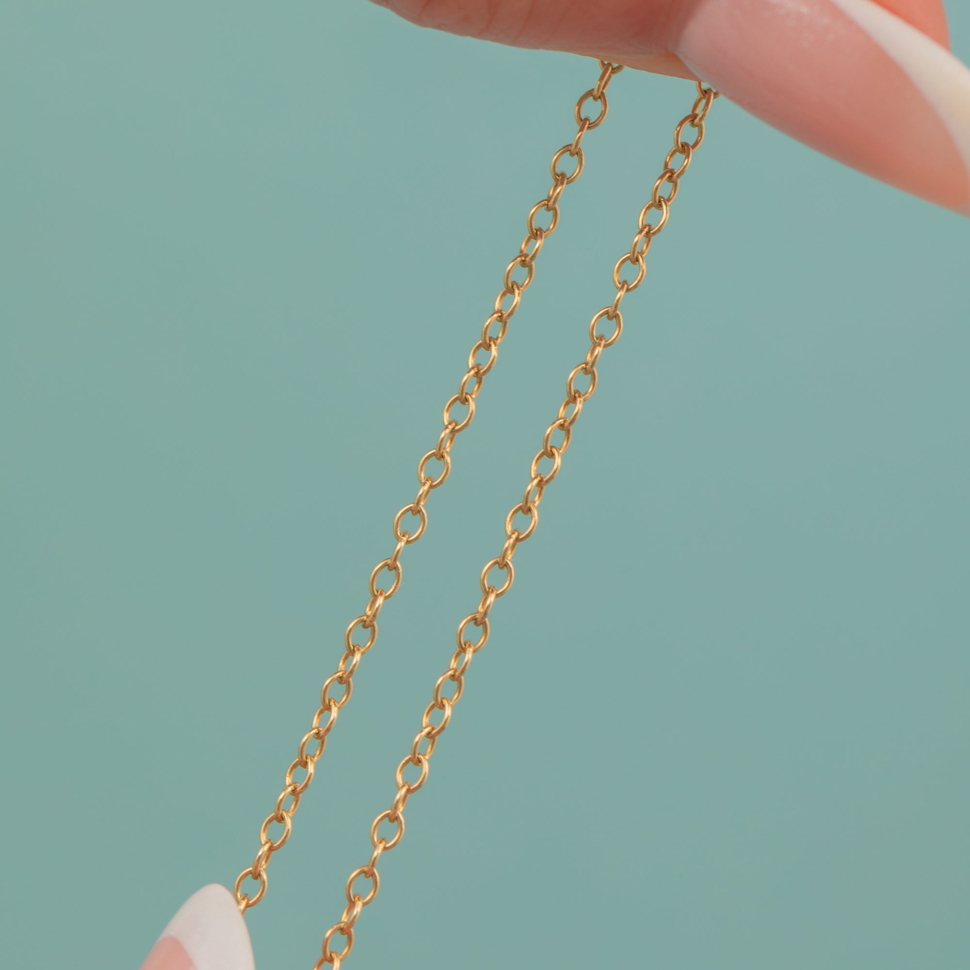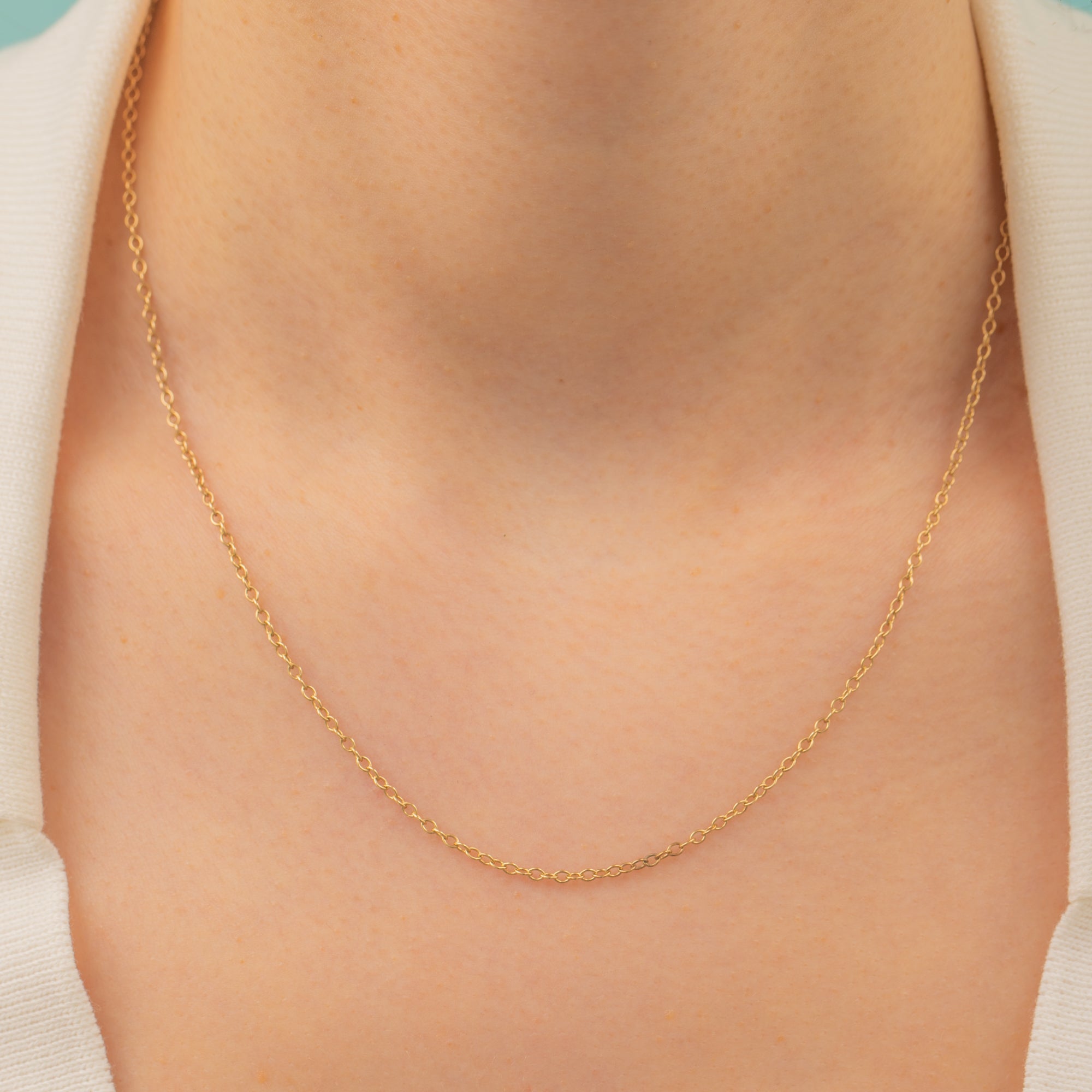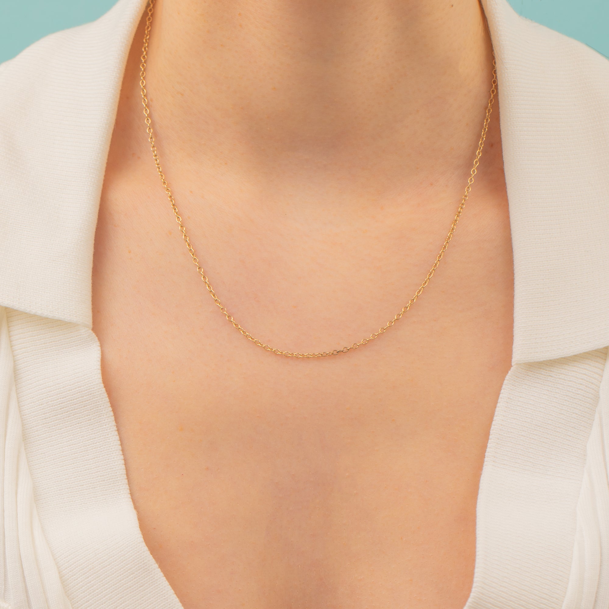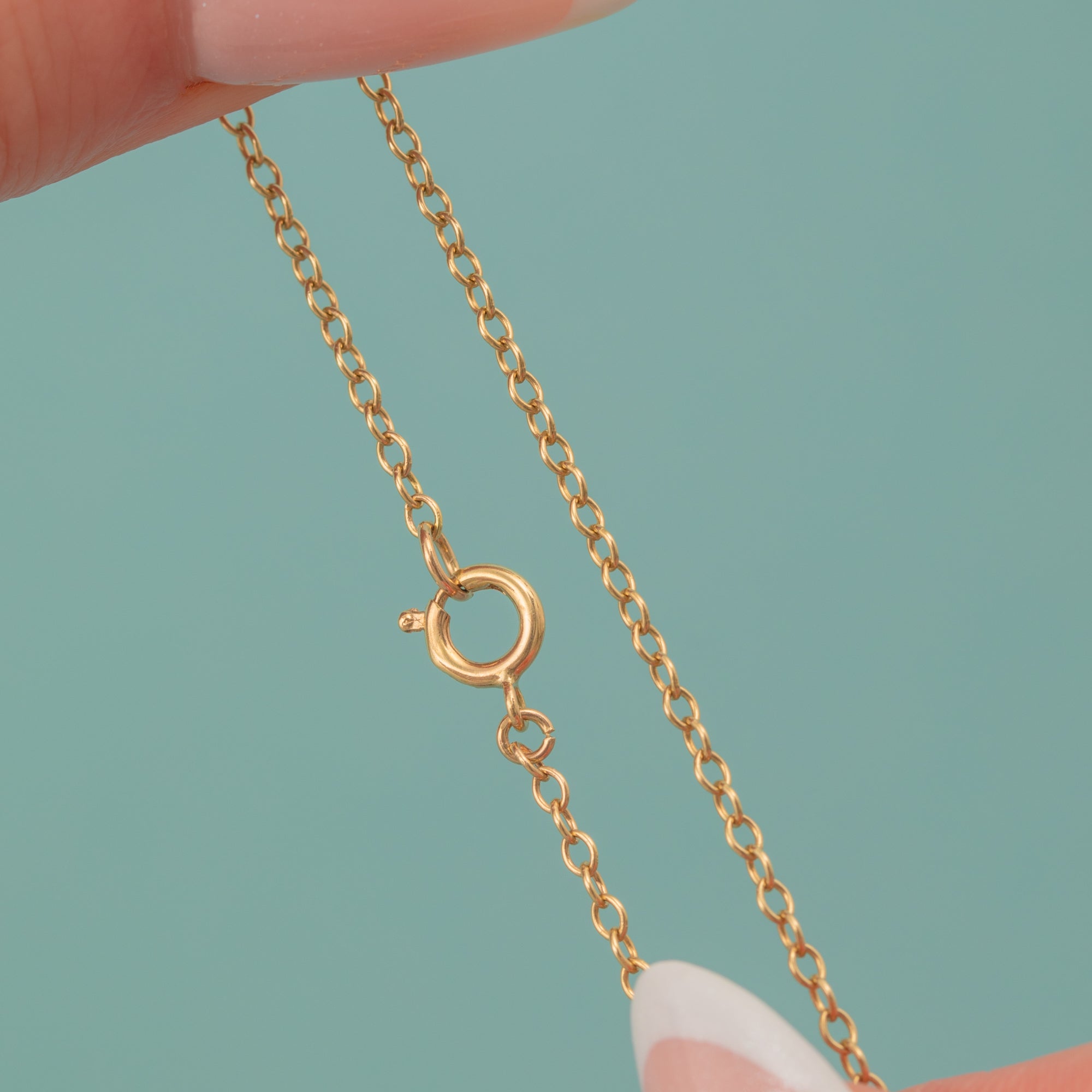 EXCELLENT. This antique 9ct Gold skinny pendant chain is in excellent condition throughout. Each link is perfectly formed and securely connected to the next, and the bolt-ring is in fine working order. A must-have for your collection!