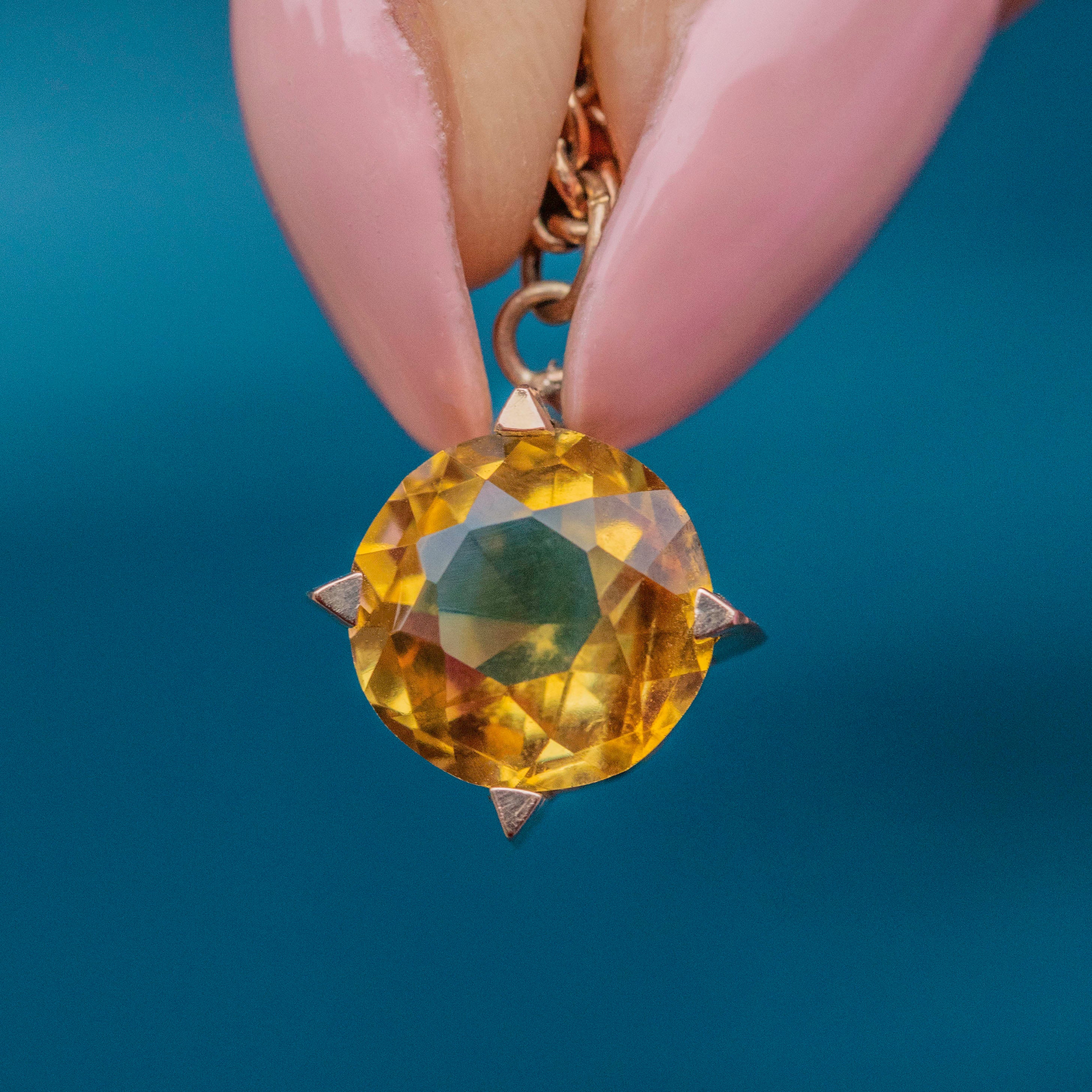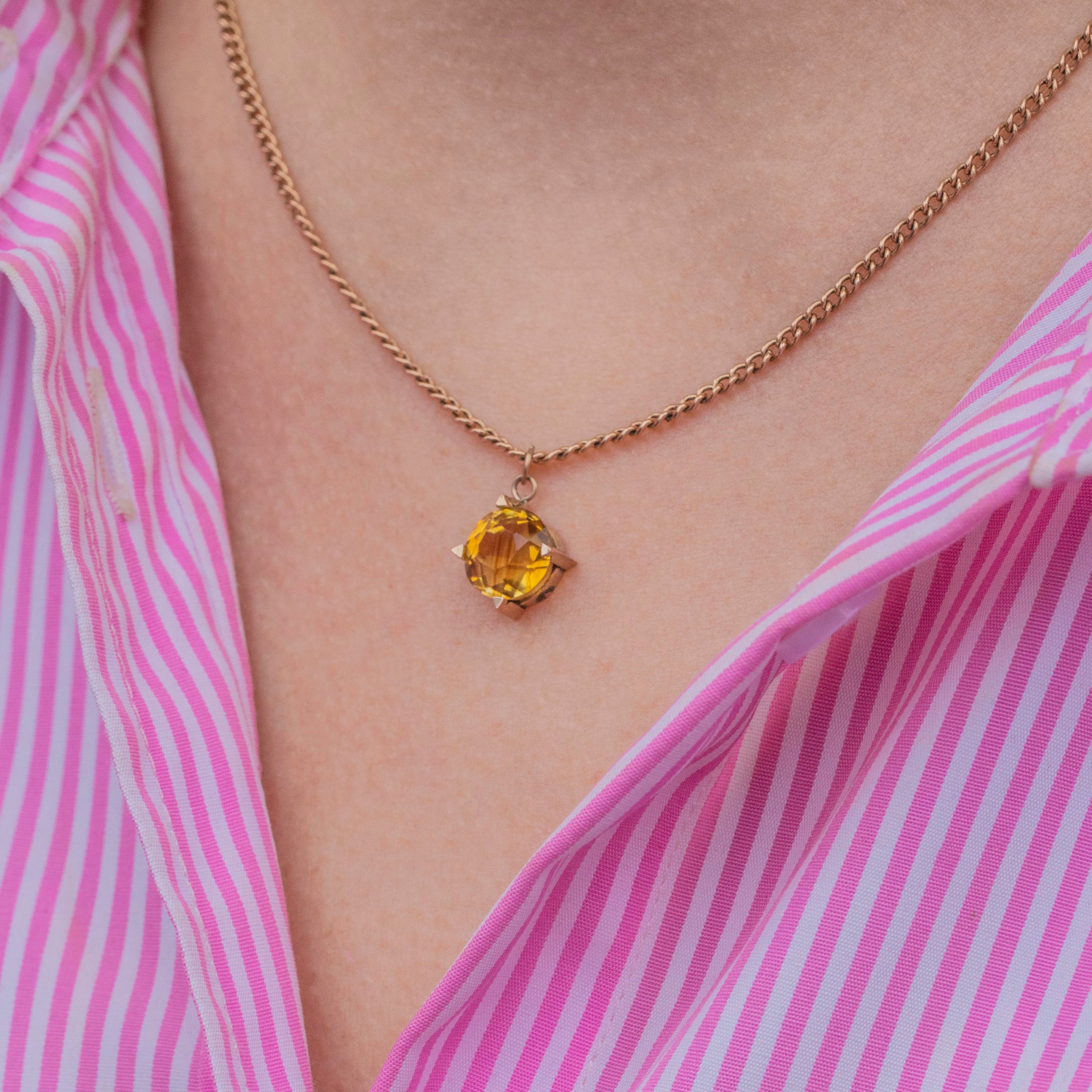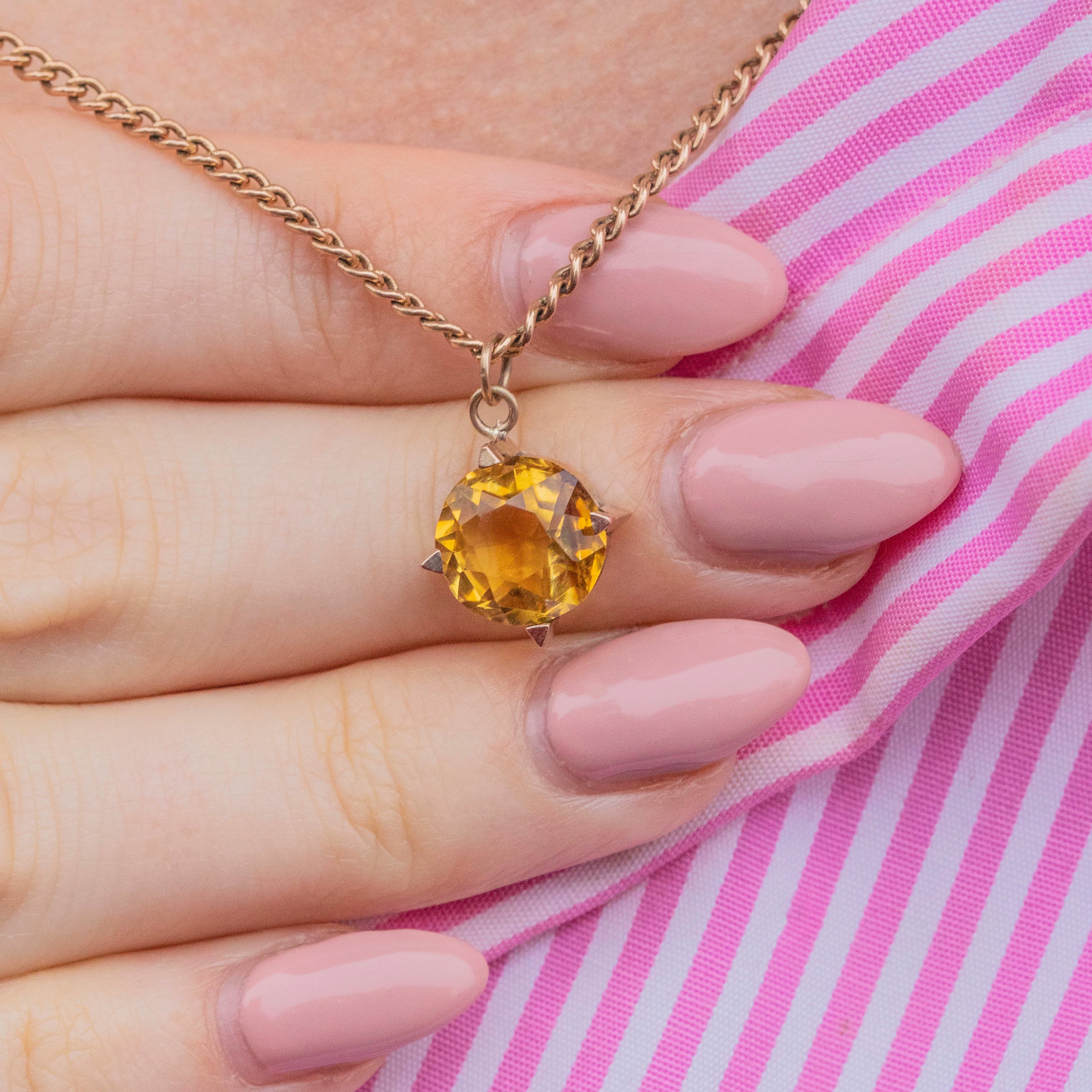 As well as securing the Citrine into place, her claw settings provide a statement feature, giving this Victorian pendant the appearance of a four-pointed star. Dainty in size and packing a serious punch, you will be reaching for this Gold Citrine pendant time and time again.