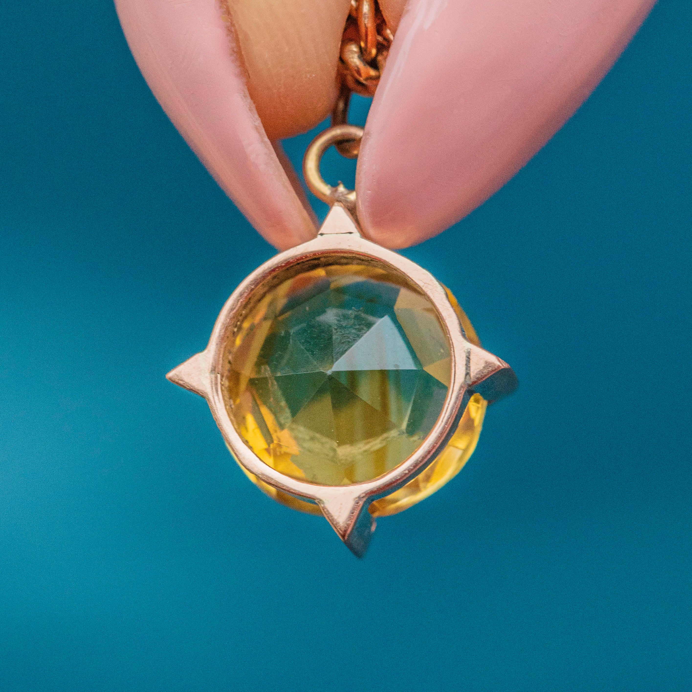 VERY GOOD. This antique 9ct Gold star Citrine charm is in very good condition! The Citrine sits securely within the four claw settings, with no damage to the facets to note. There is some darkening in two areas at the bottom of the setting from what we believe would have been from a previous conversion, but rest assured this doesn't affect her overall beauty. This Victorian treasure bound to brighten up any attire!