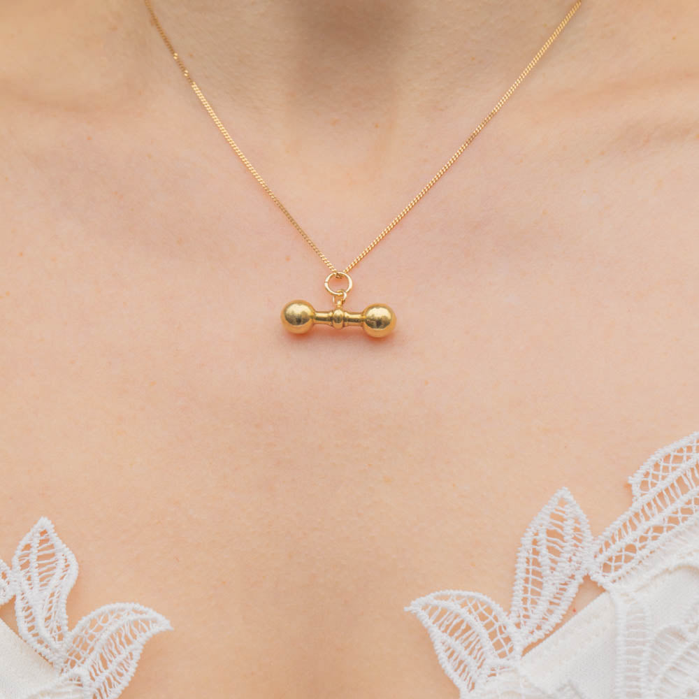 Is any Edwardian collection complete without an antique 9ct Gold t-bar pendant?! Crafted from buttery, solid 9ct Gold, this antique t-bar is perfect for adding a splash of splendour to any attire- this one is accented with two golden orbs either side!