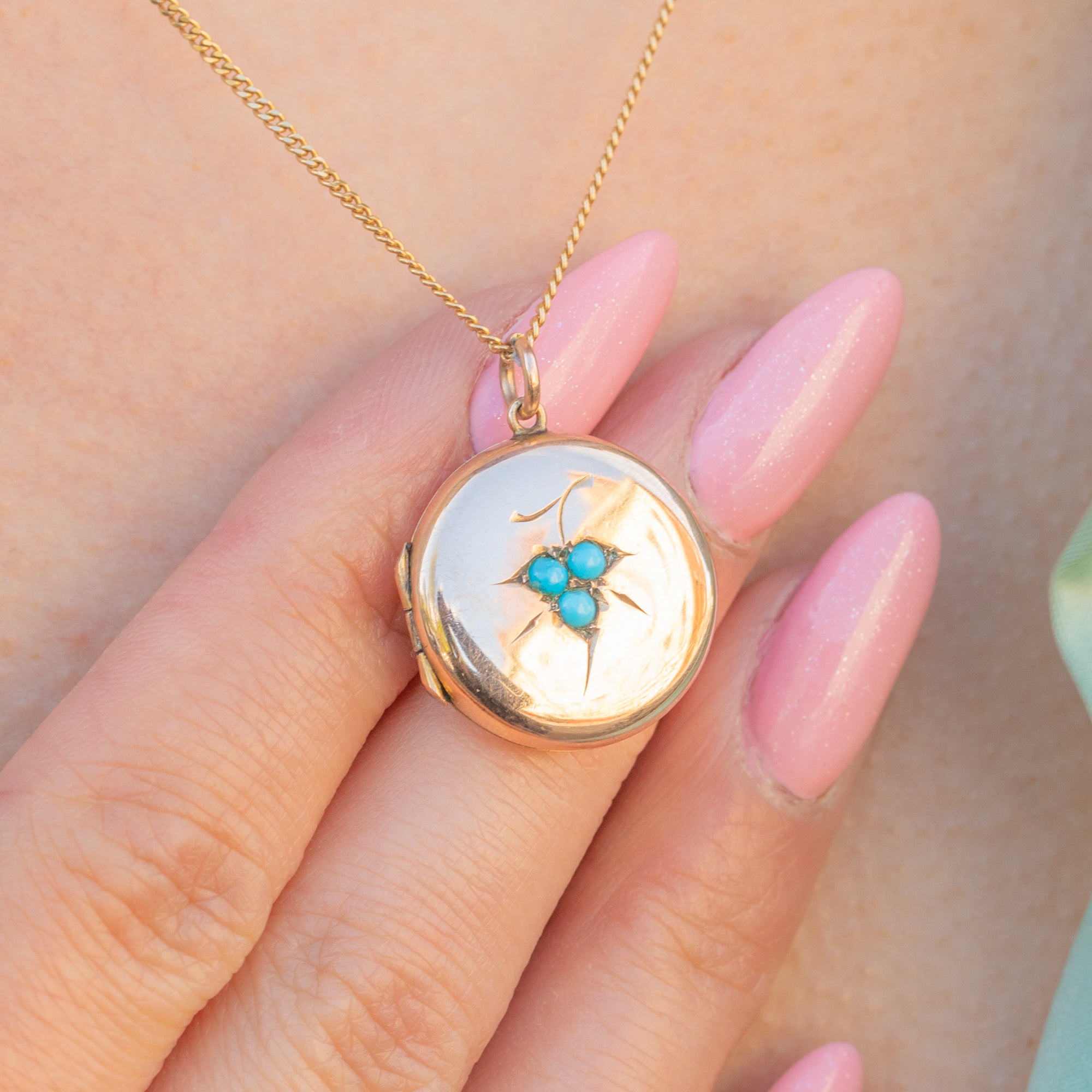 This antique 9ct Gold Turquoise ivy leaf locket is full of charm!
