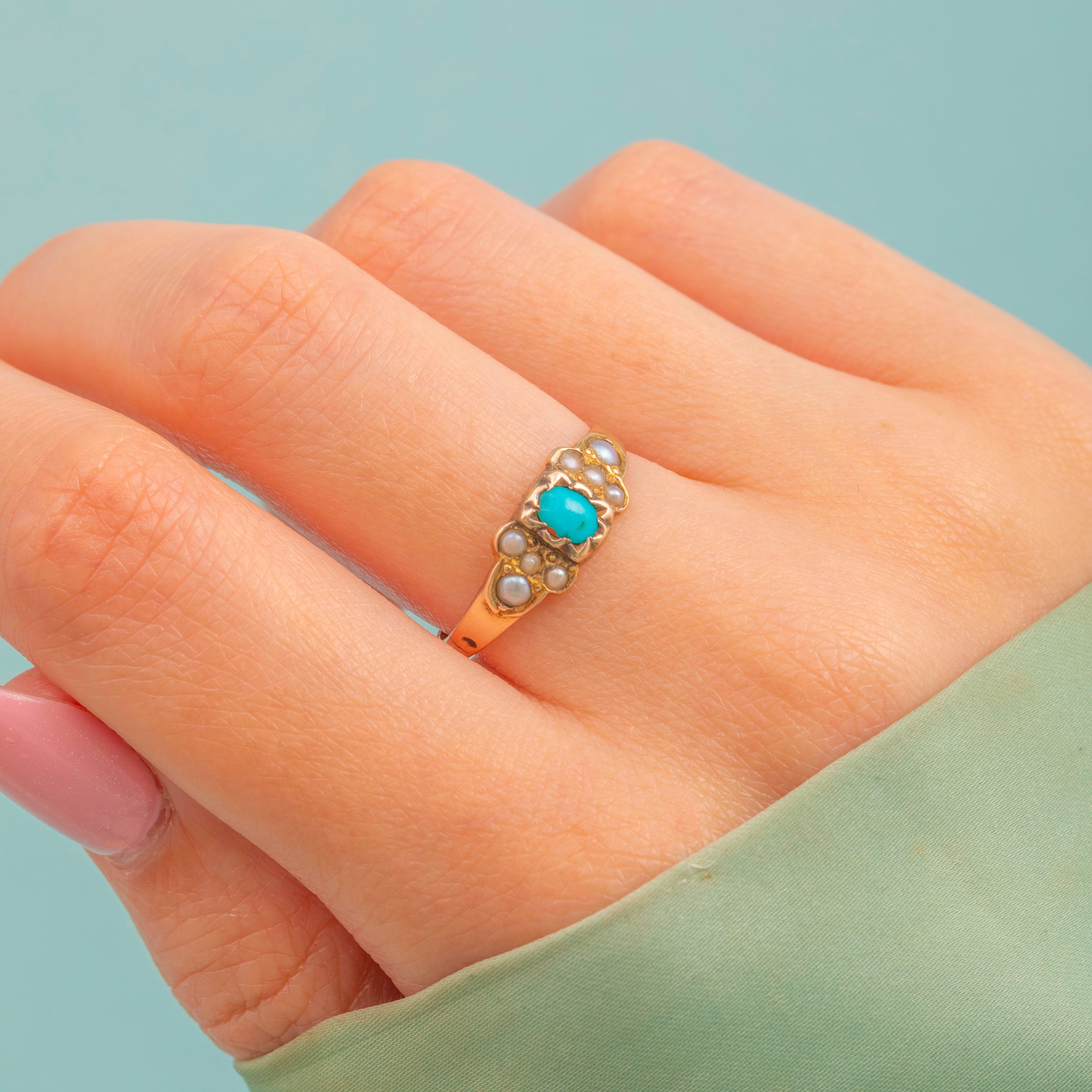 Antique 9ct Gold Turquoise Pearl Ring, c.1876