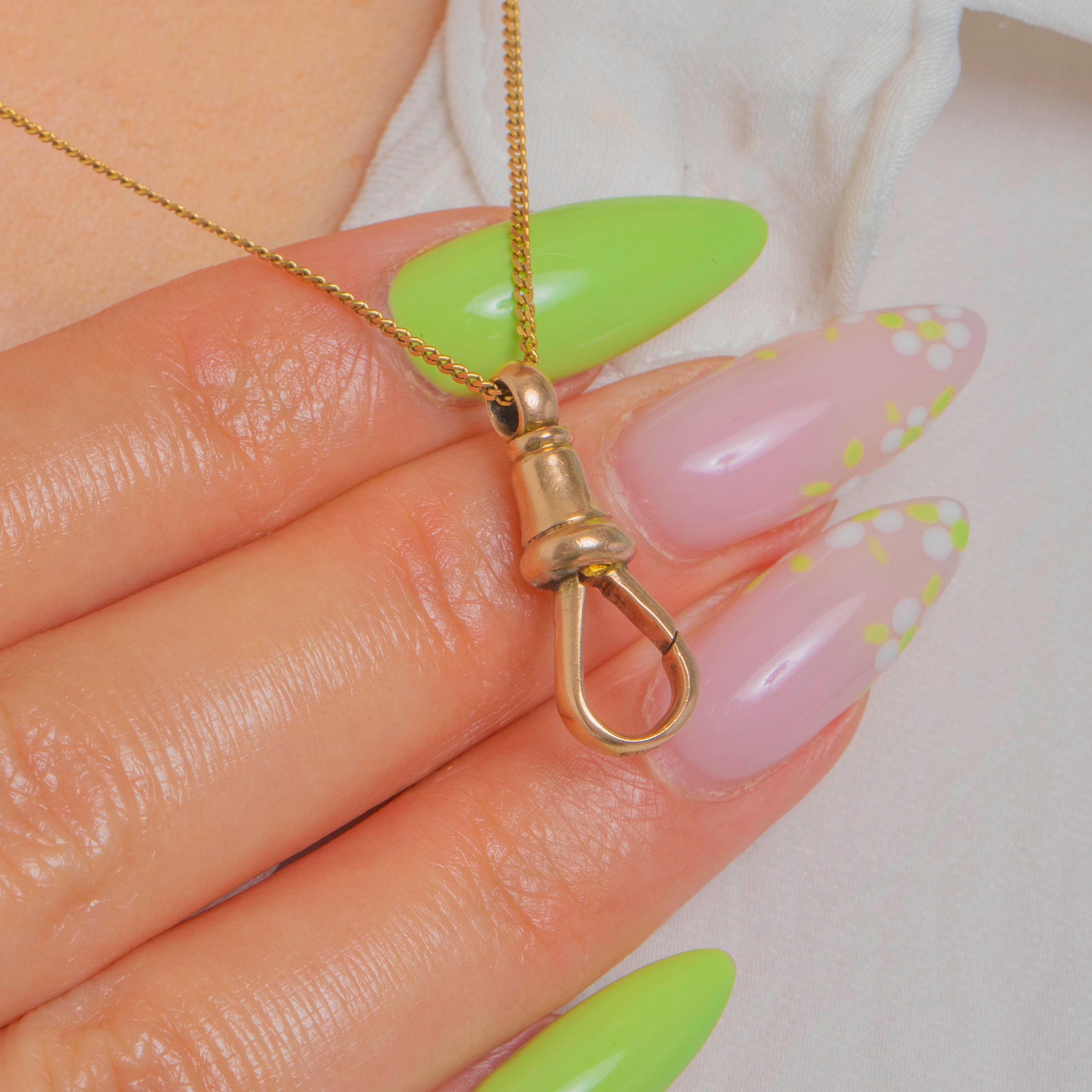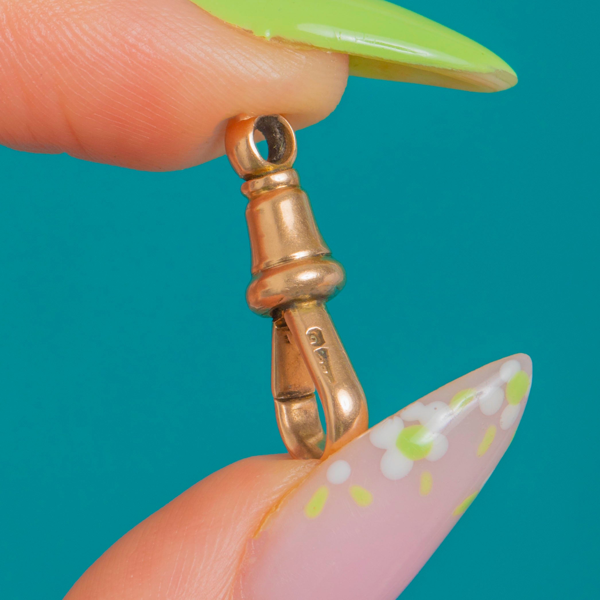 A wonderfully versatile Victorian dog-clip clasp, crafted in warm 9ct Gold. Compact yet full of antique character, this handsome piece has the classic rounded form and practical spring-loaded fitting that made dog-clips such useful and collectable findings.