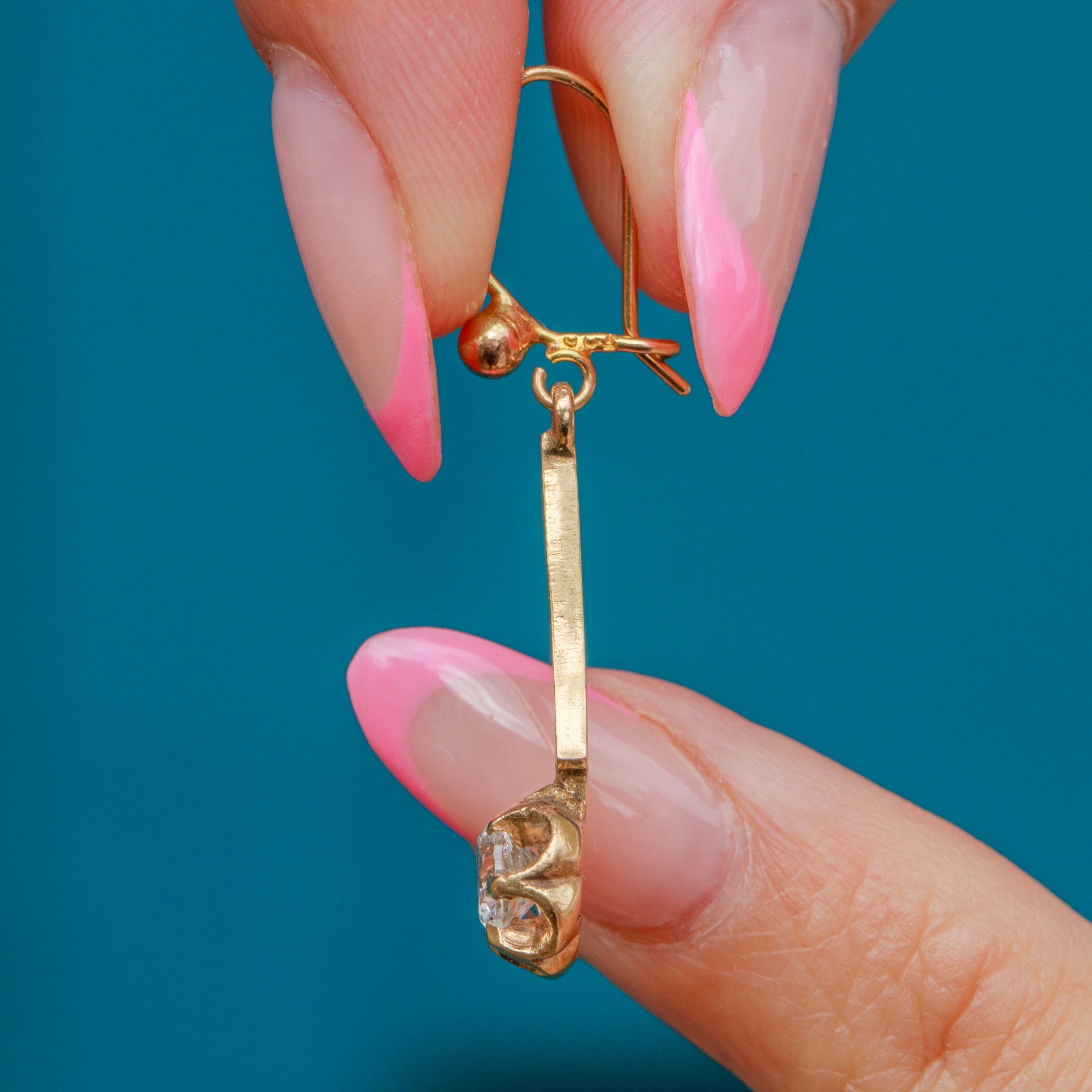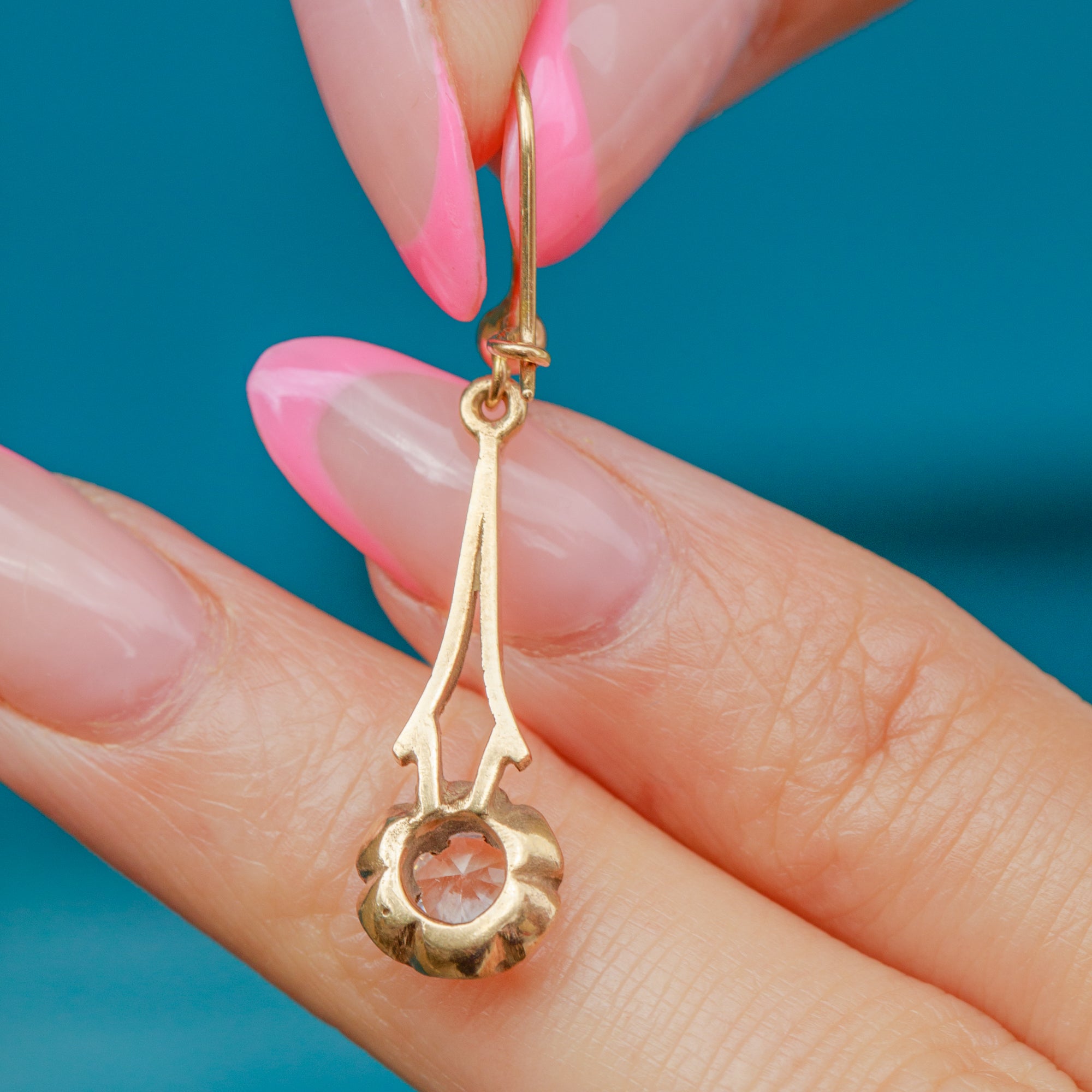 Antique 9ct Gold White Spinel Flower Drop Earrings, 1.65ct