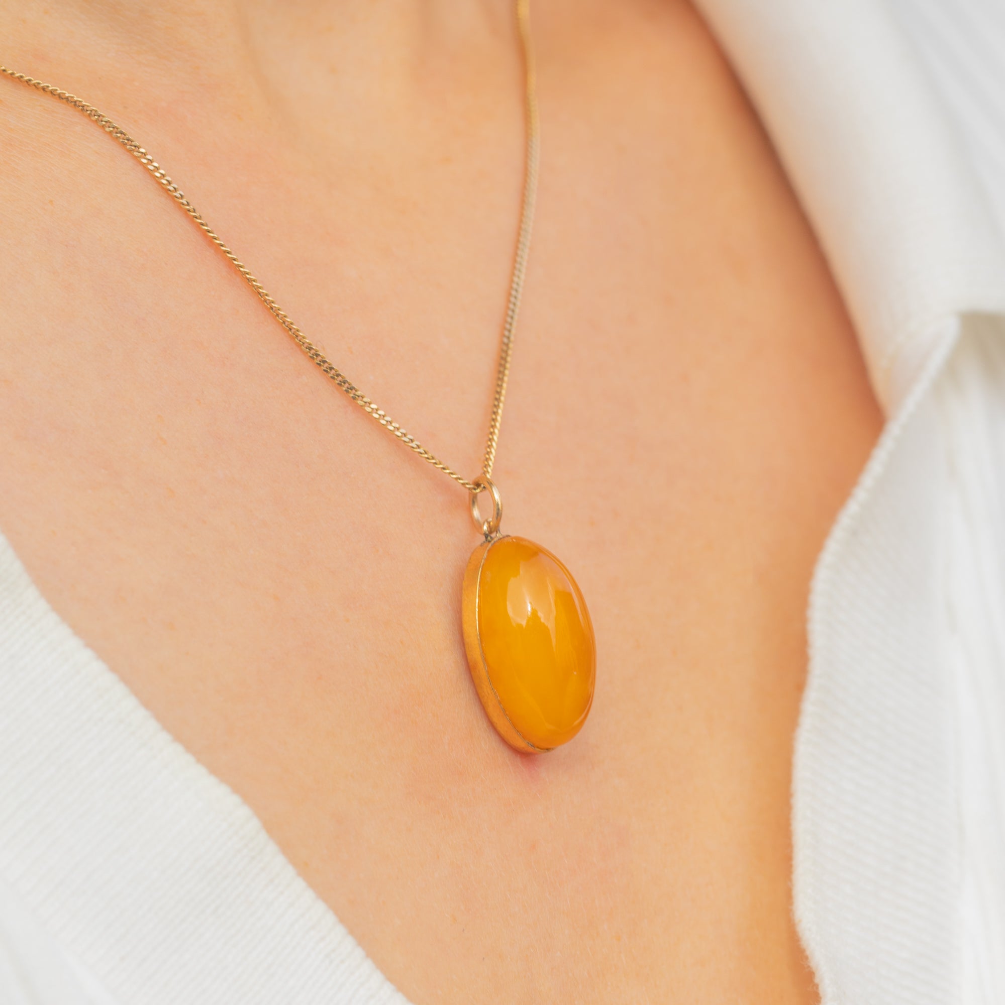 Dated to c.1900, the finish is crisp and the profile is satisfyingly smooth. A classic antique pendant with that rich honey hue collectors love.