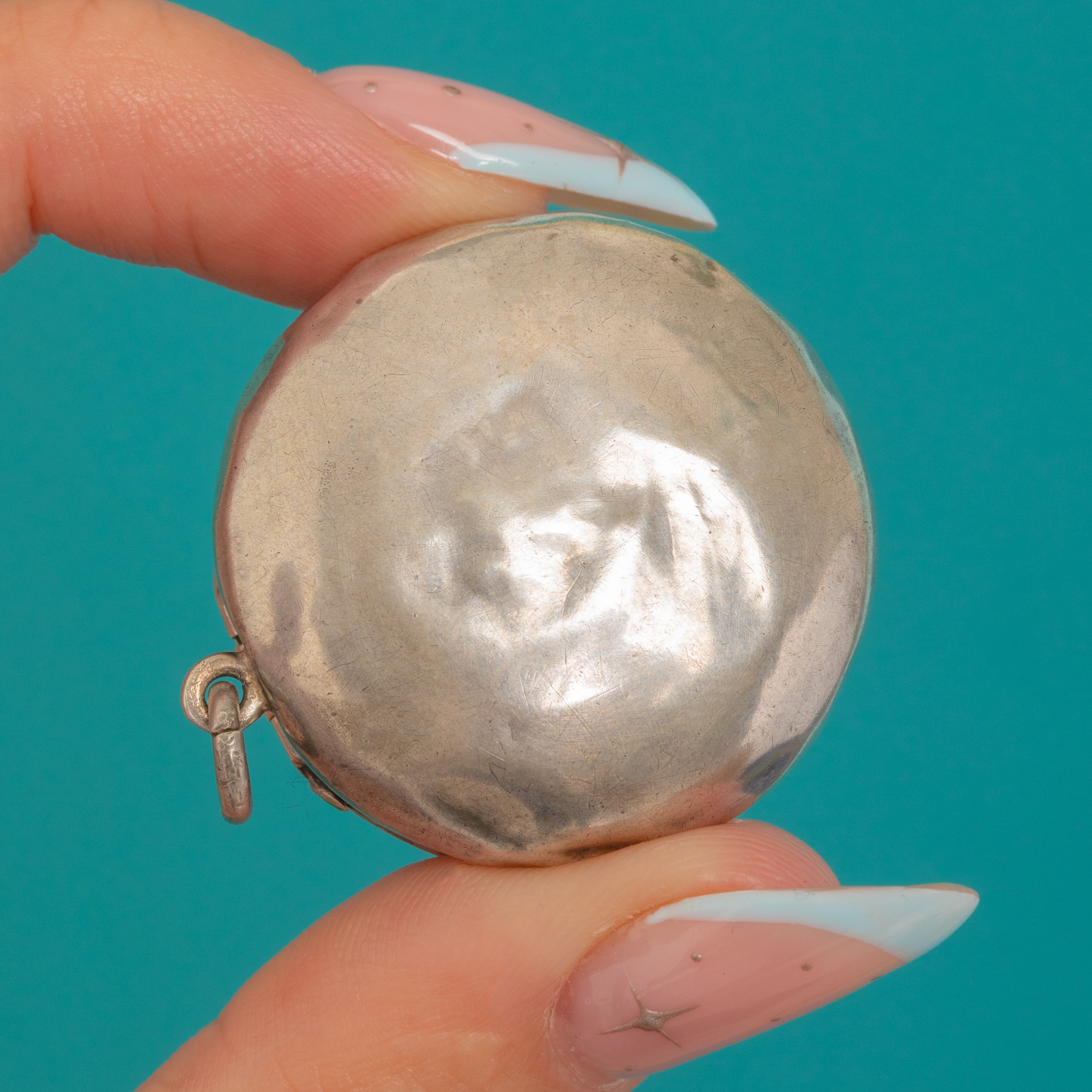 Sensuously sculpted in deep relief, this Art Nouveau locket pendant blooms with a graceful iris and flowing whiplash scrolls across a domed Silver face. The reverse is domed for a sleek profile, with a soldered jump ring for effortless wear.