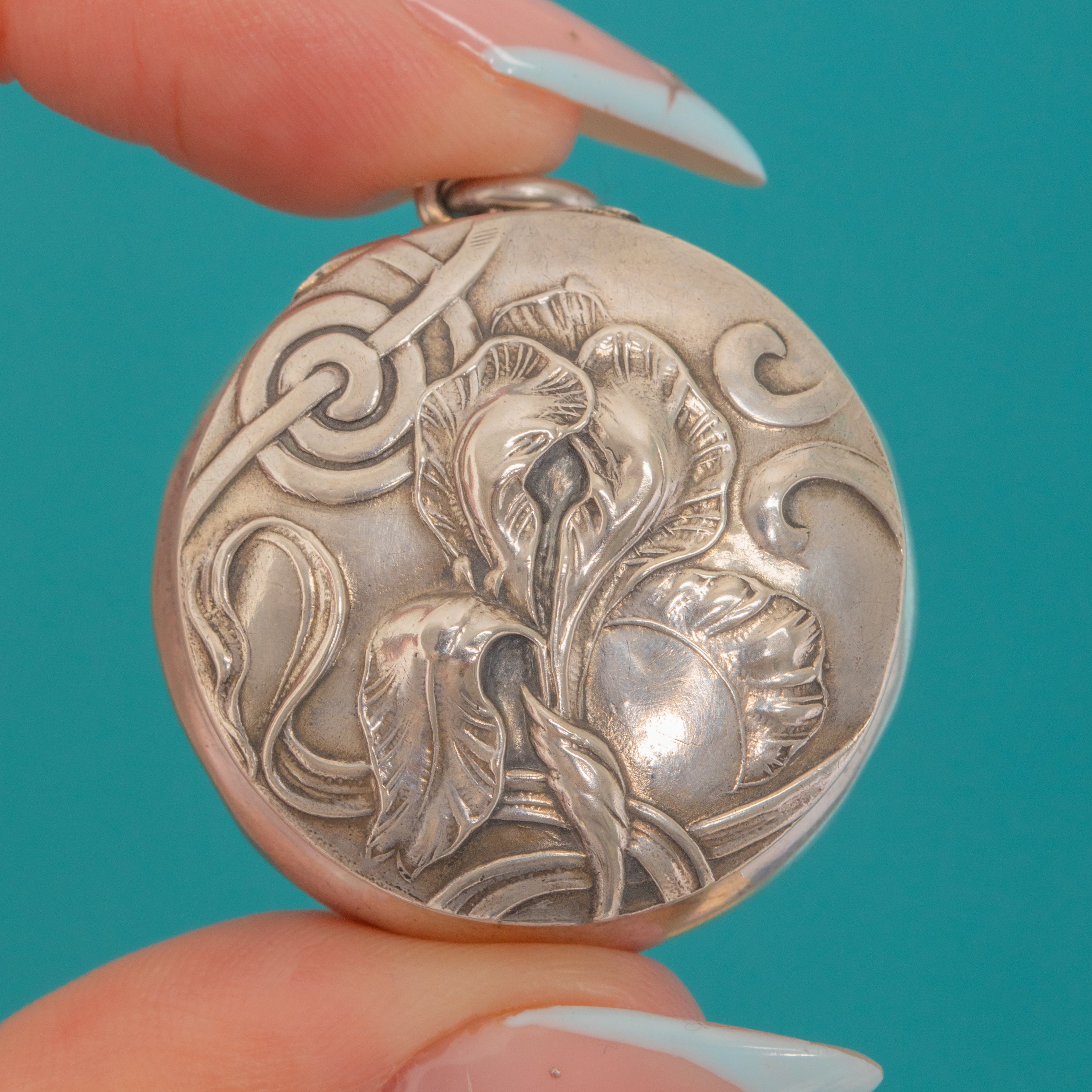 Antique Art Nouveau Silver Iris Flower Trinket Pendant