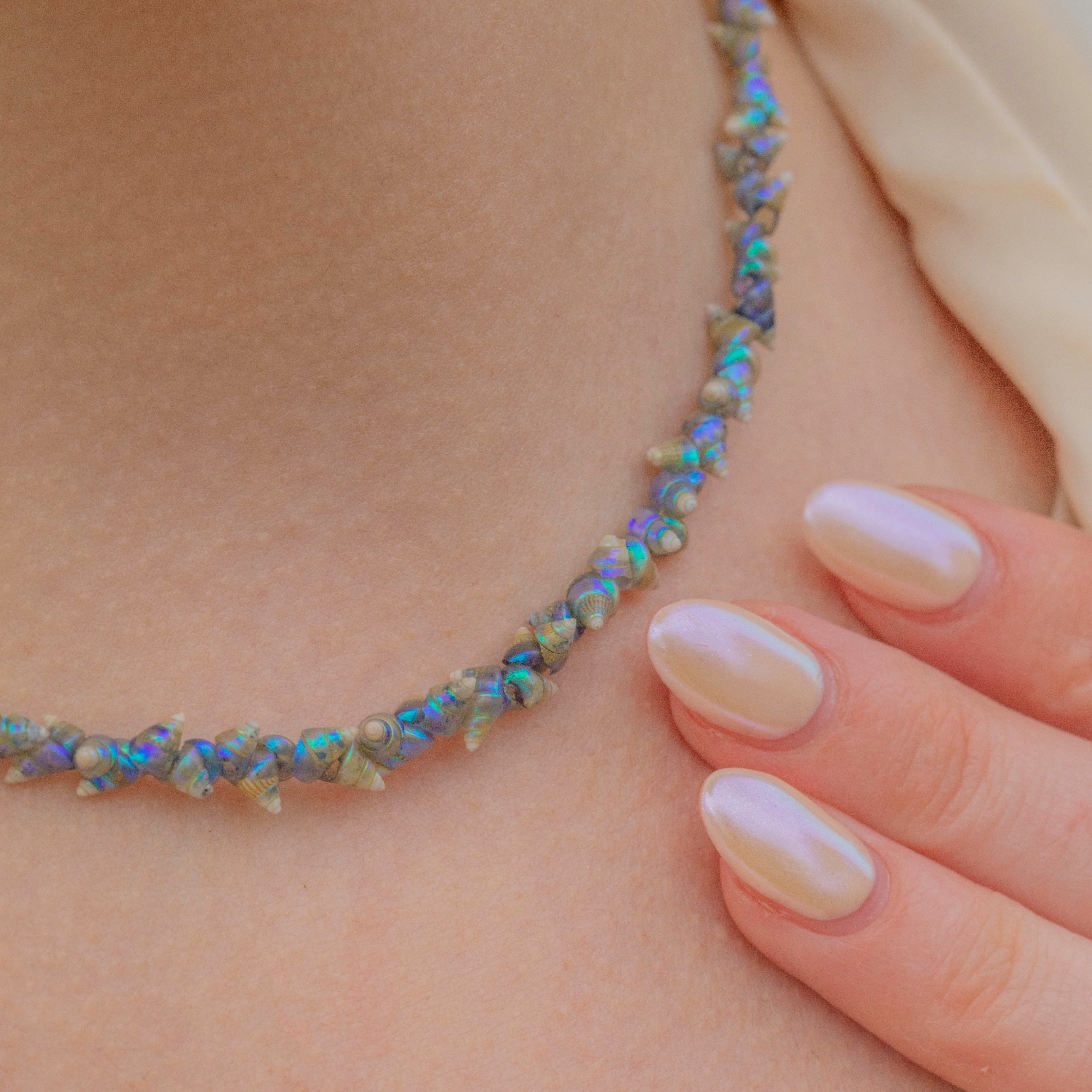 Complete with dozens of dainty shells from the shores of Tasmania, the play of colour displayed across each of them is simply magnificent. From deep ocean blues to subtle emerald greens, this antique necklace is sure to make an impact!