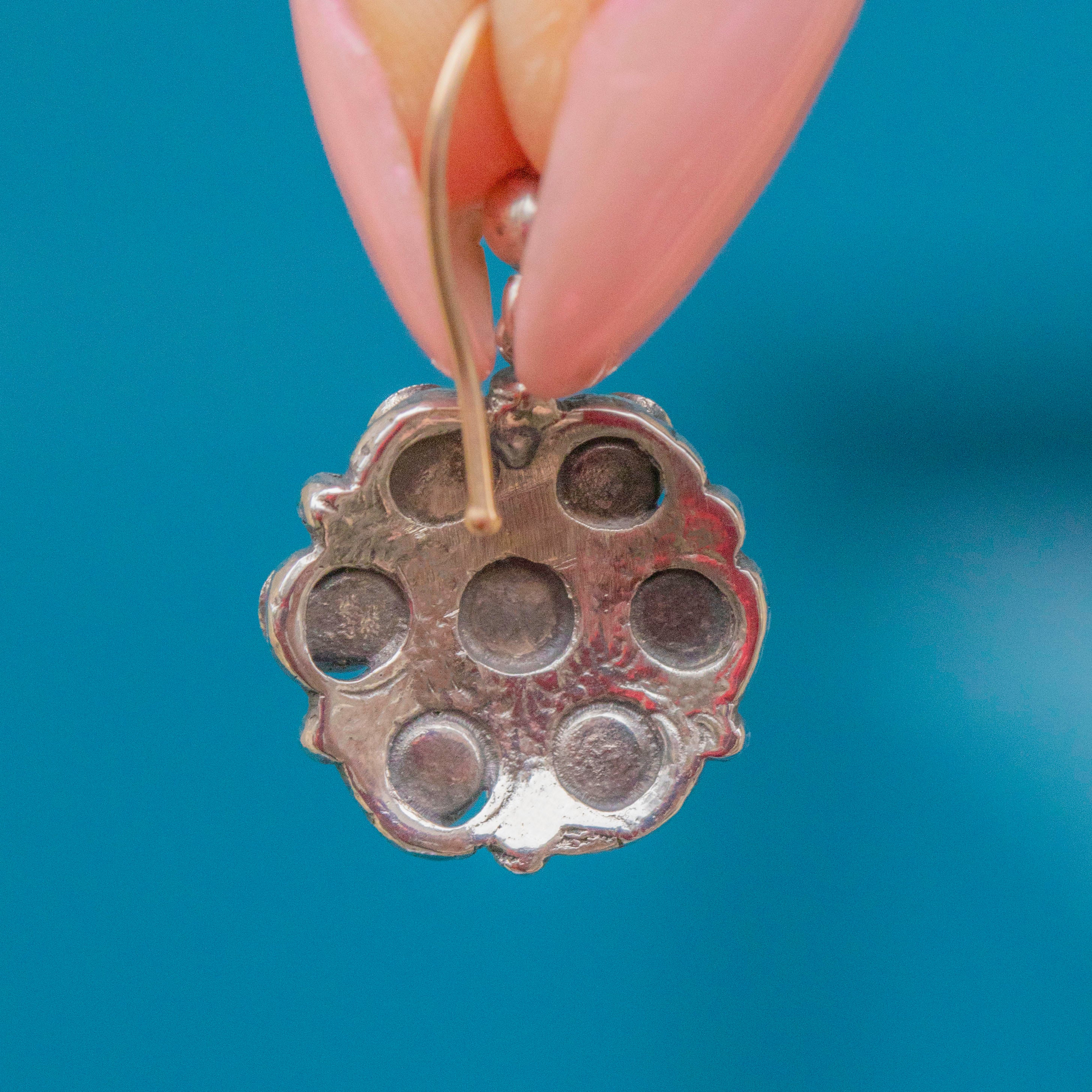 Antique Dragon's Breath Flower Cluster Earrings, 9ct Gold Hooks