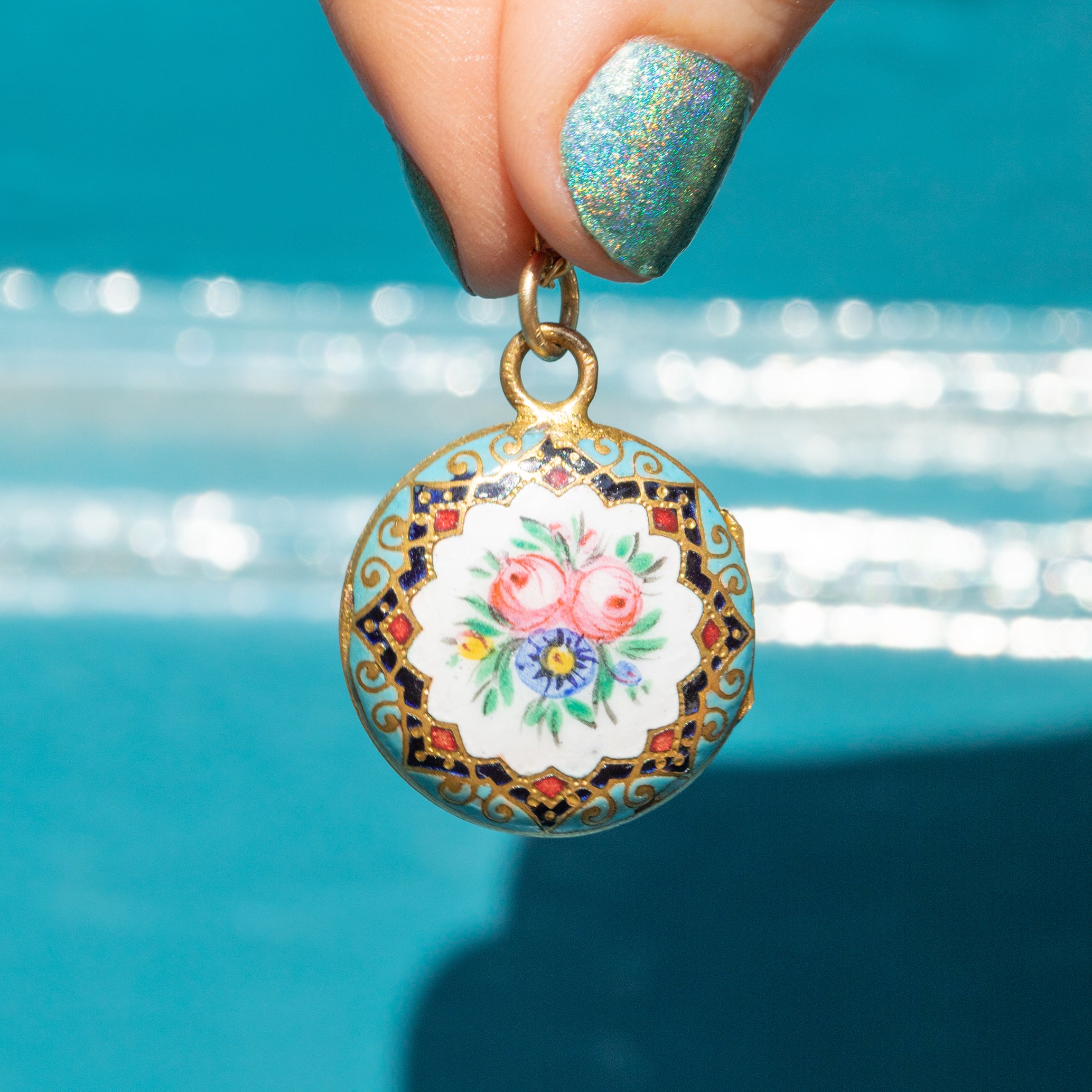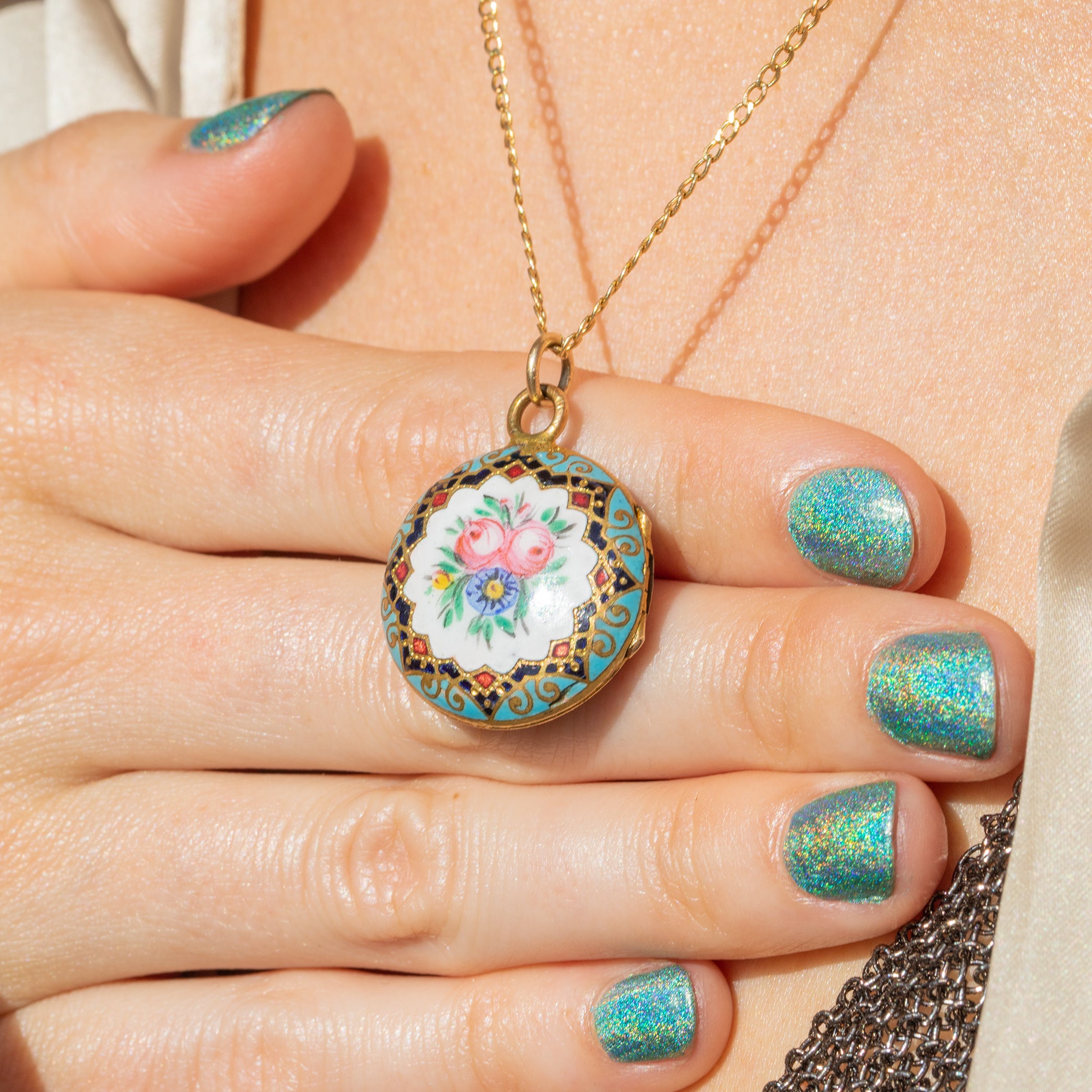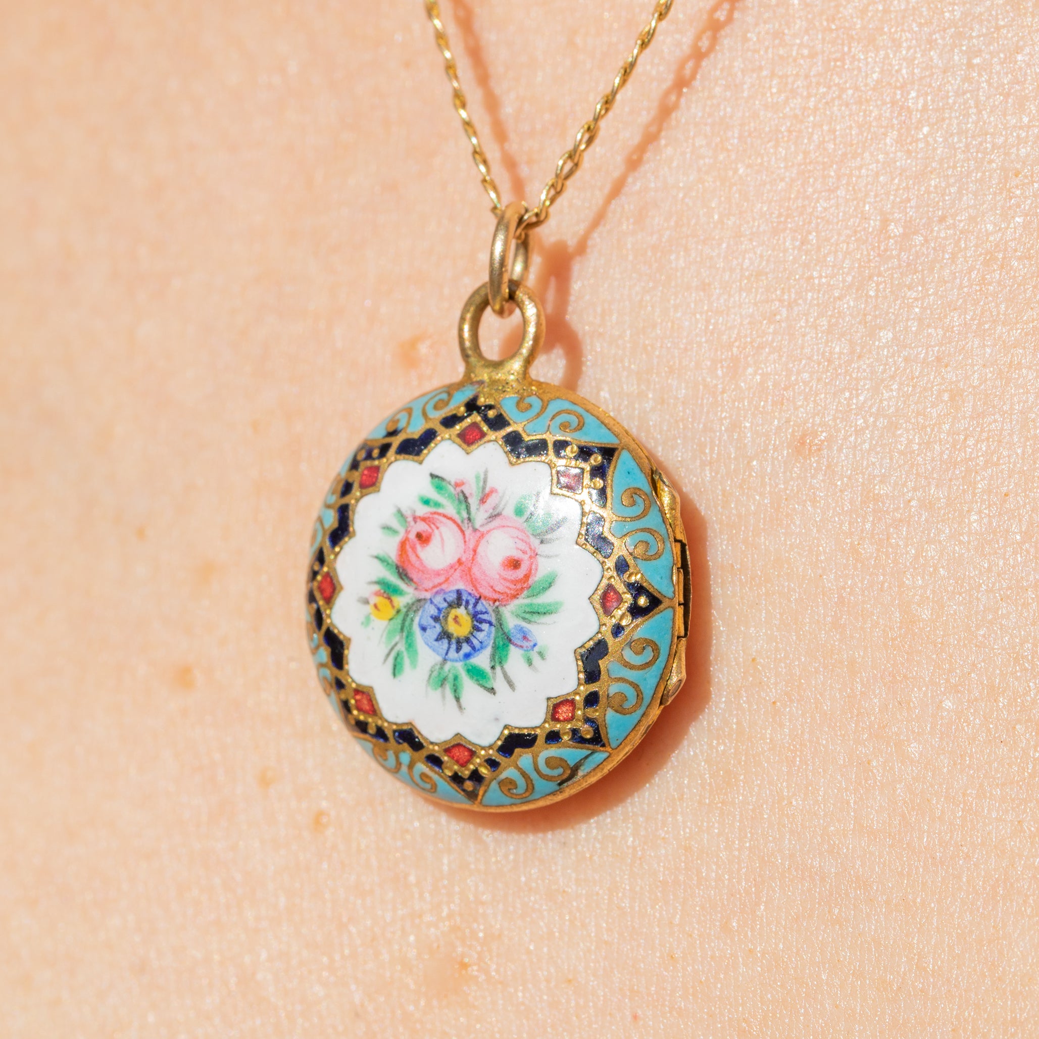 Antique Enamel Flower Locket