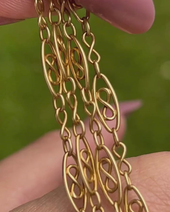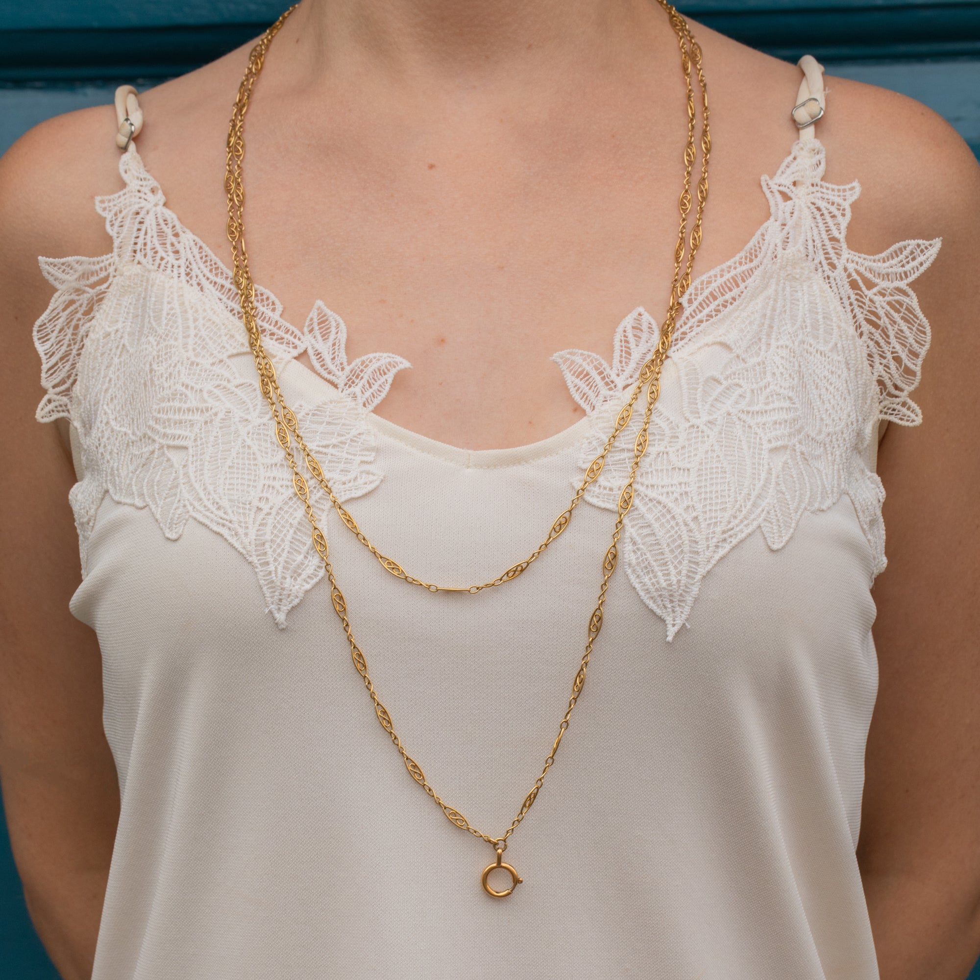 At 62 inches long, versatility is at the heart of this Victorian Gold necklace. Whether layered as a necklace stack, as a single loop, or using her large over-sized (and fully French stamped!) antique bolt-ring to suspend your favourite charm from, her beauty is timeless.