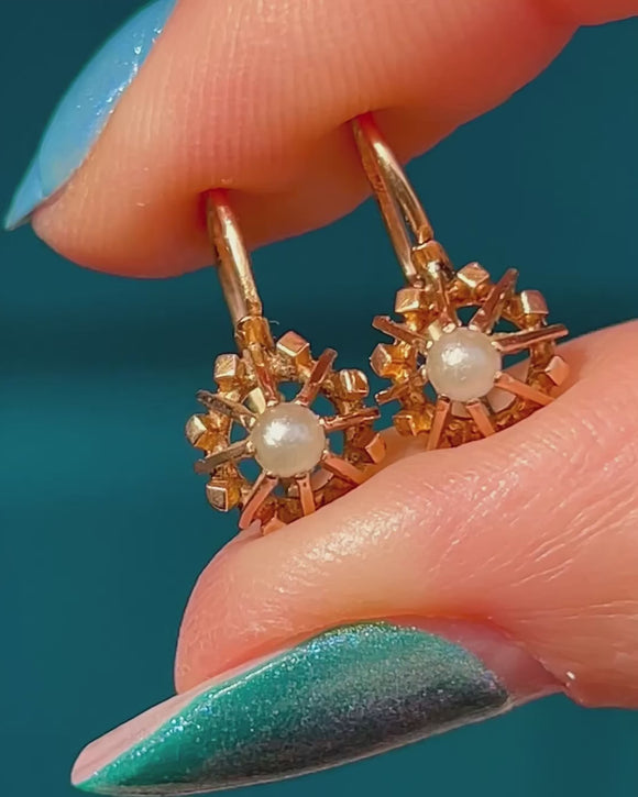 Antique French 18ct Gold Pearl Dormeuse Earrings