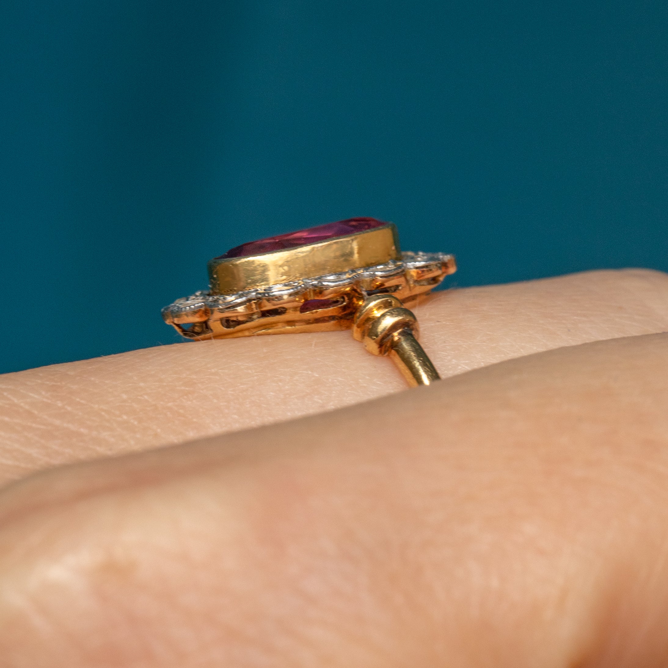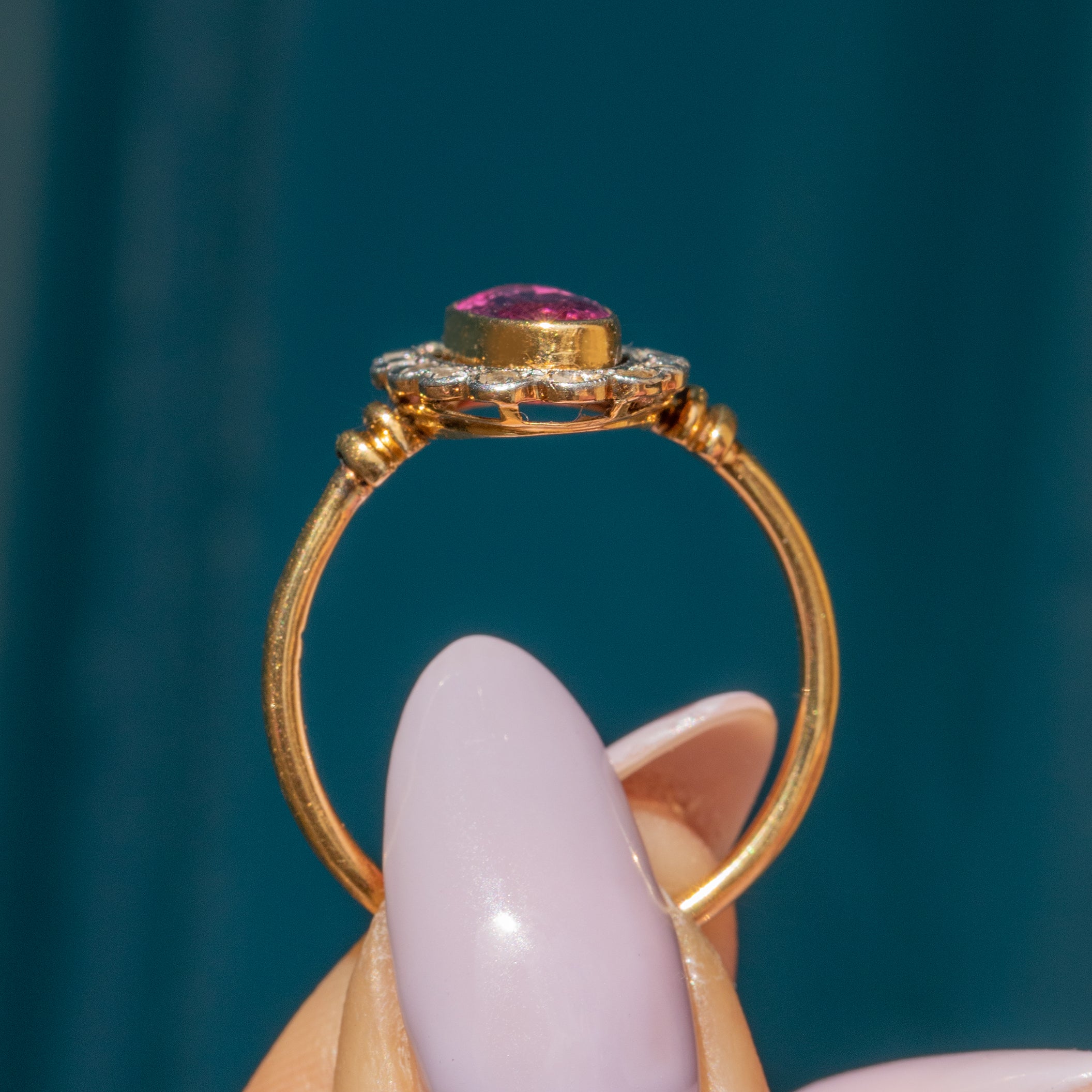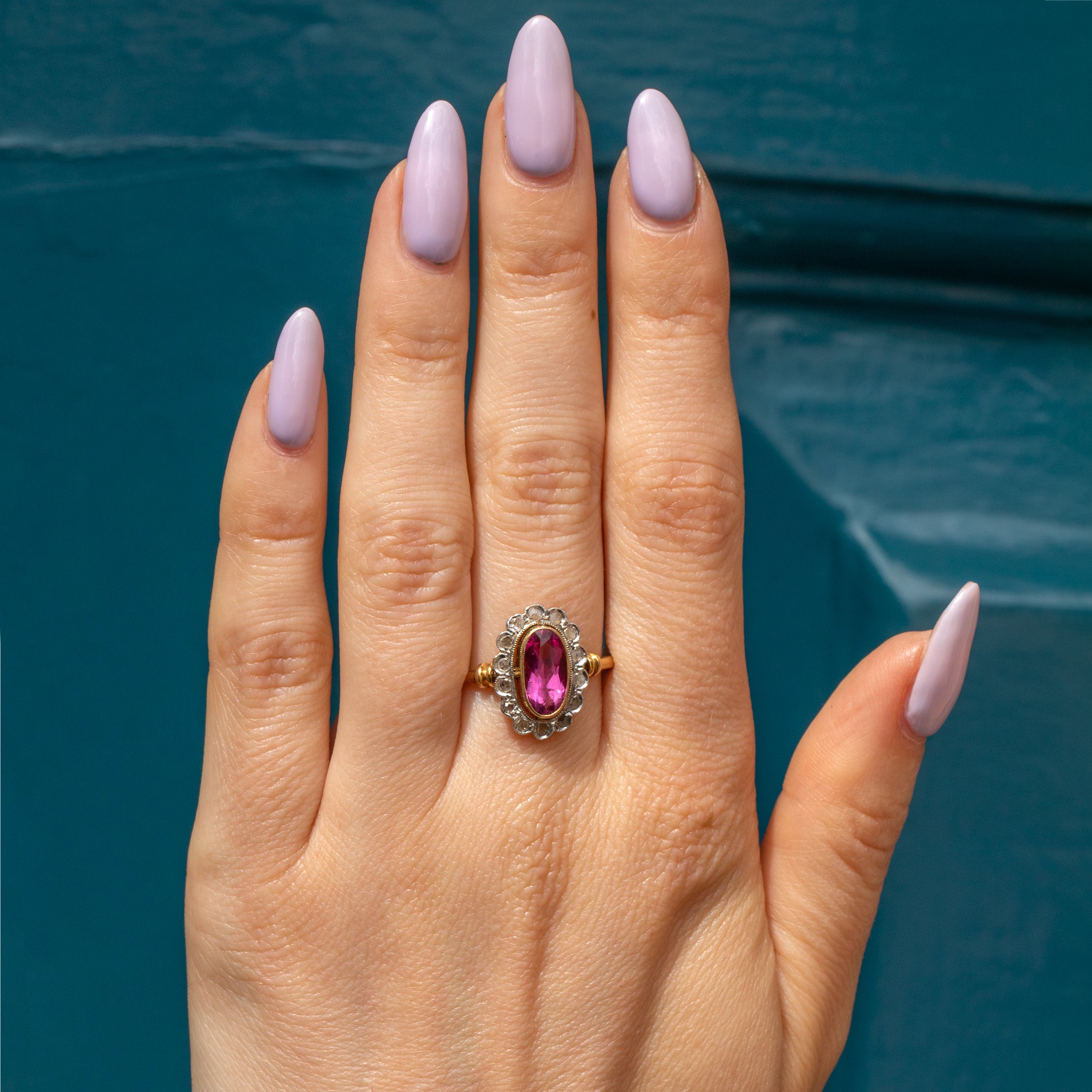 Antique French Pink Tourmaline Diamond Cluster Ring, 18ct Gold