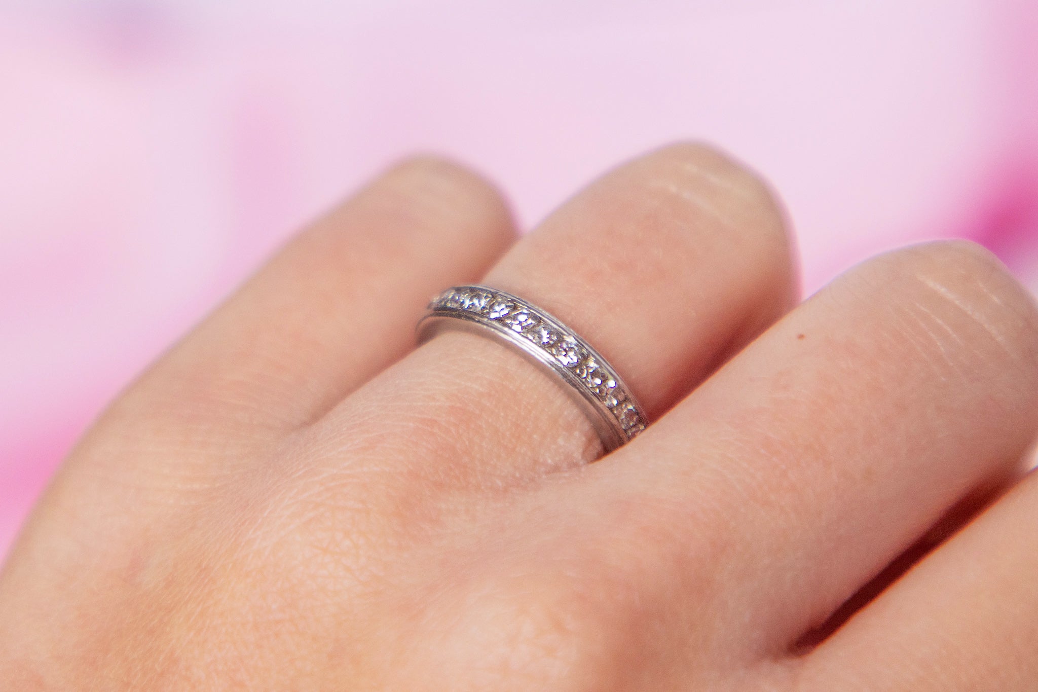 Bague Éternité Antique en Platine Français avec Diamants, 0,70 ct (K.5 / 5 & 3/8)