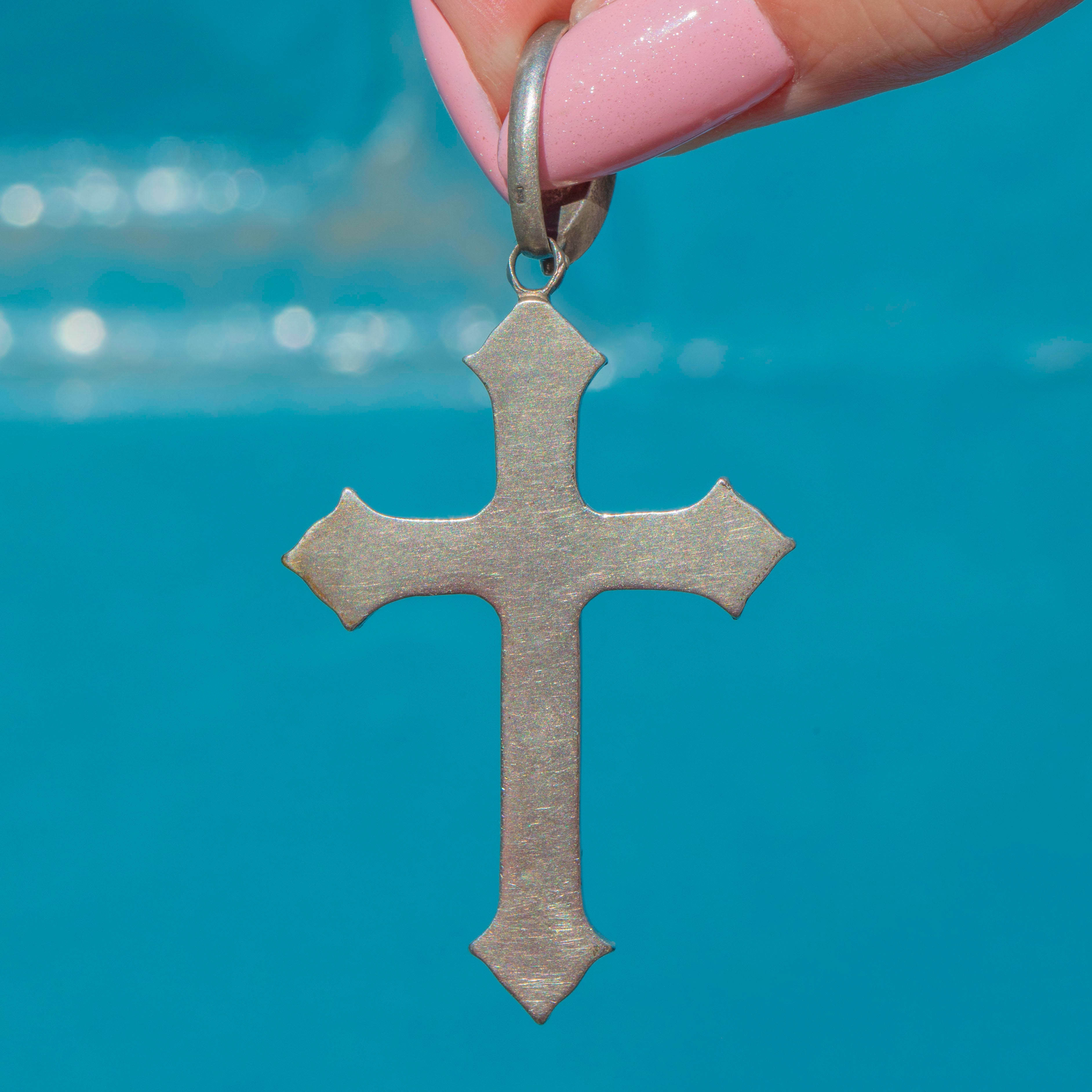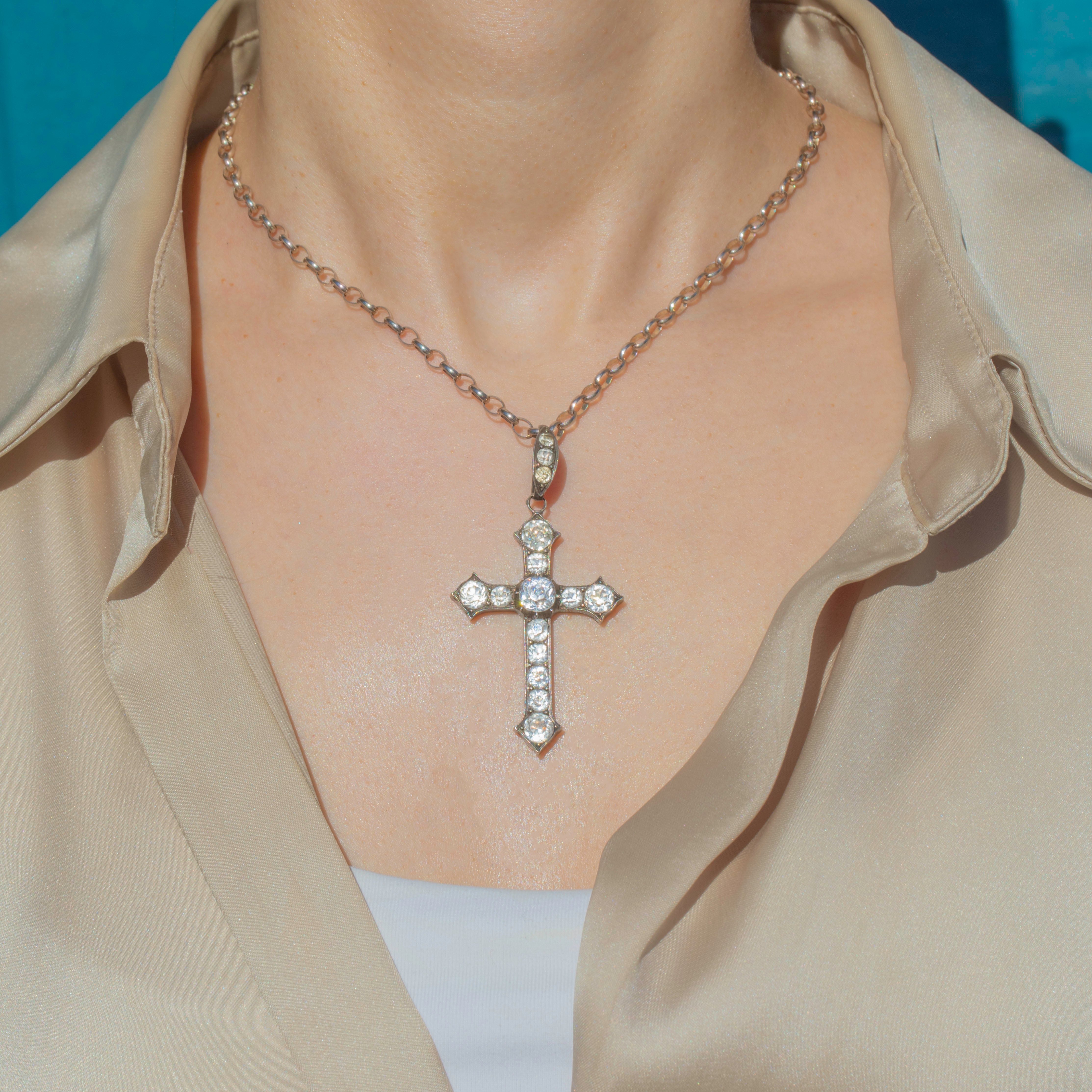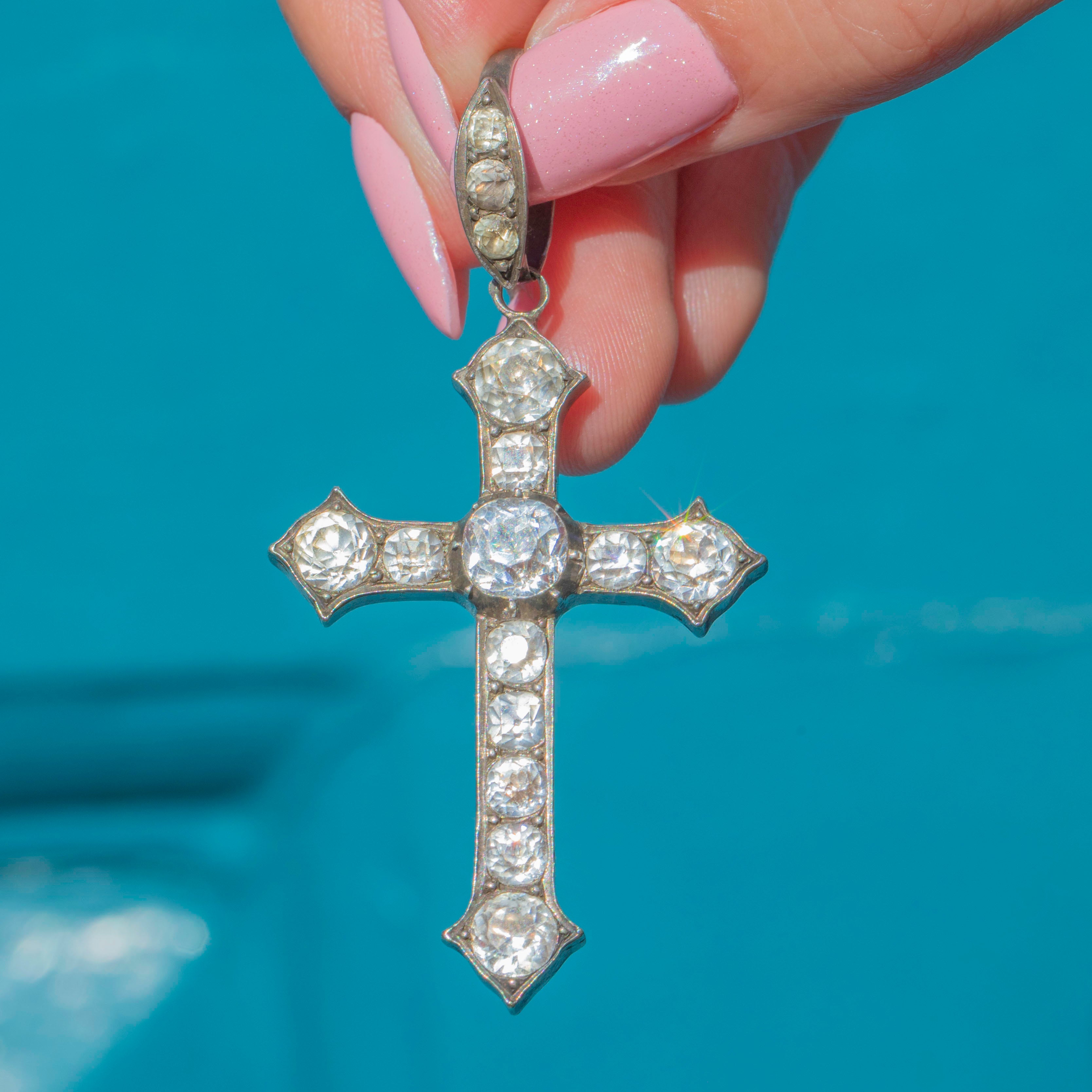 This antique French Silver Paste cross pendant will elevate your jewellery collection! Set with crisp white Paste gemstones and boasting a distinct Victorian gothic style, we love everything about this piece.
