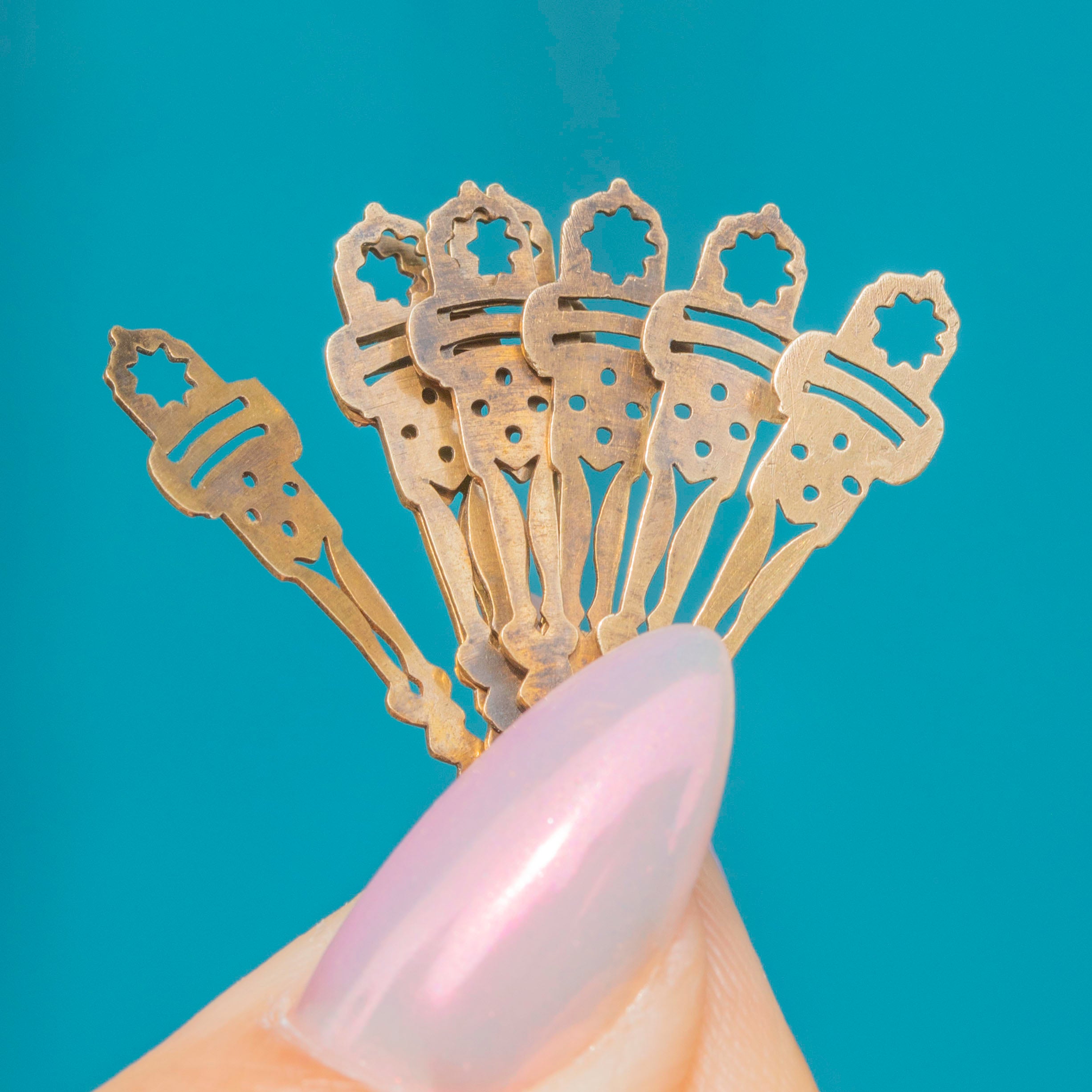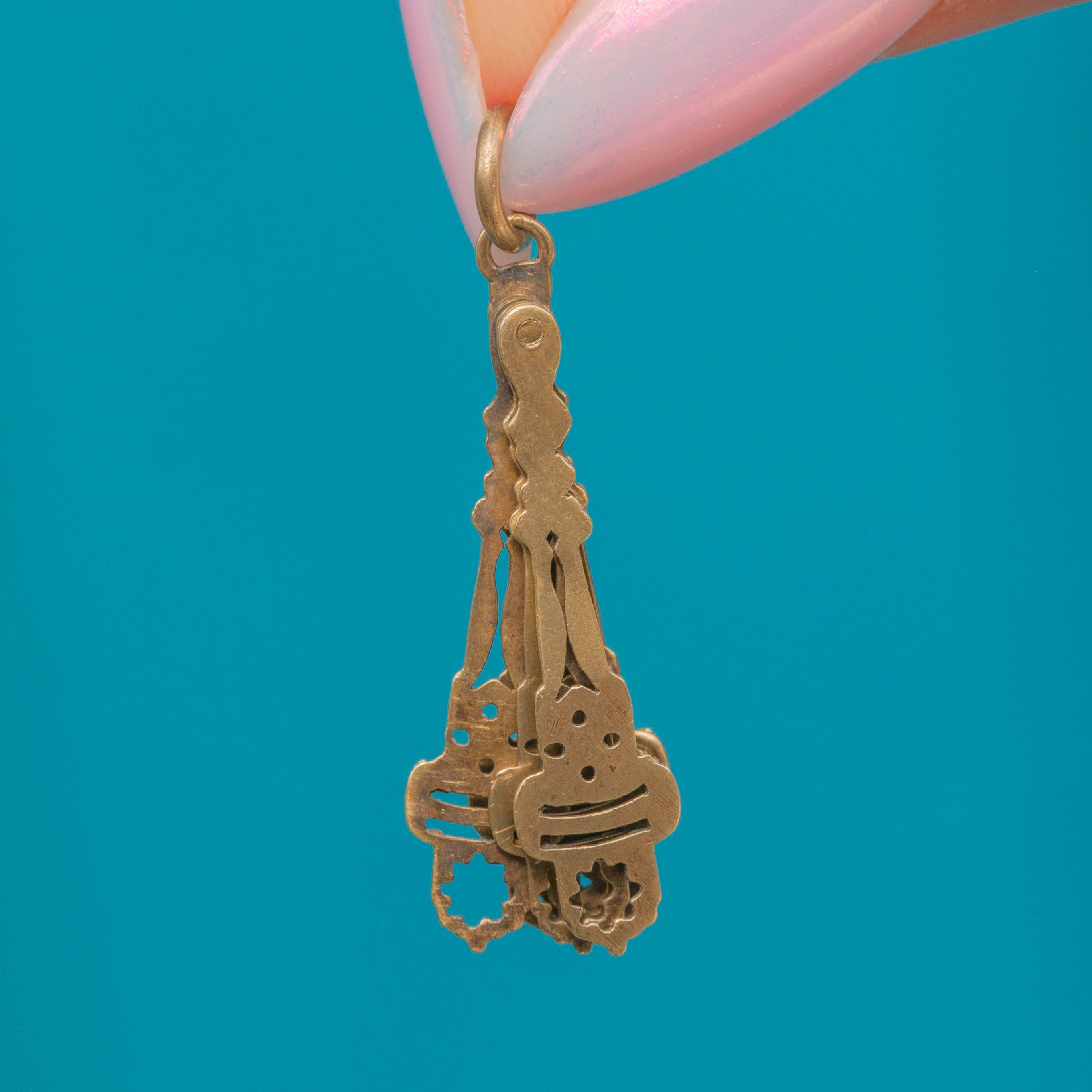 VERY GOOD-EXCELLENT: This Art Deco Gold toned openwork fan pendant is in great condition. Each fan link is well formed and is securely attached. There are some signs of wear to the metal, though this is expected with age. With a securely soldered jump ring, you can wear this openwork pendant with confidence!