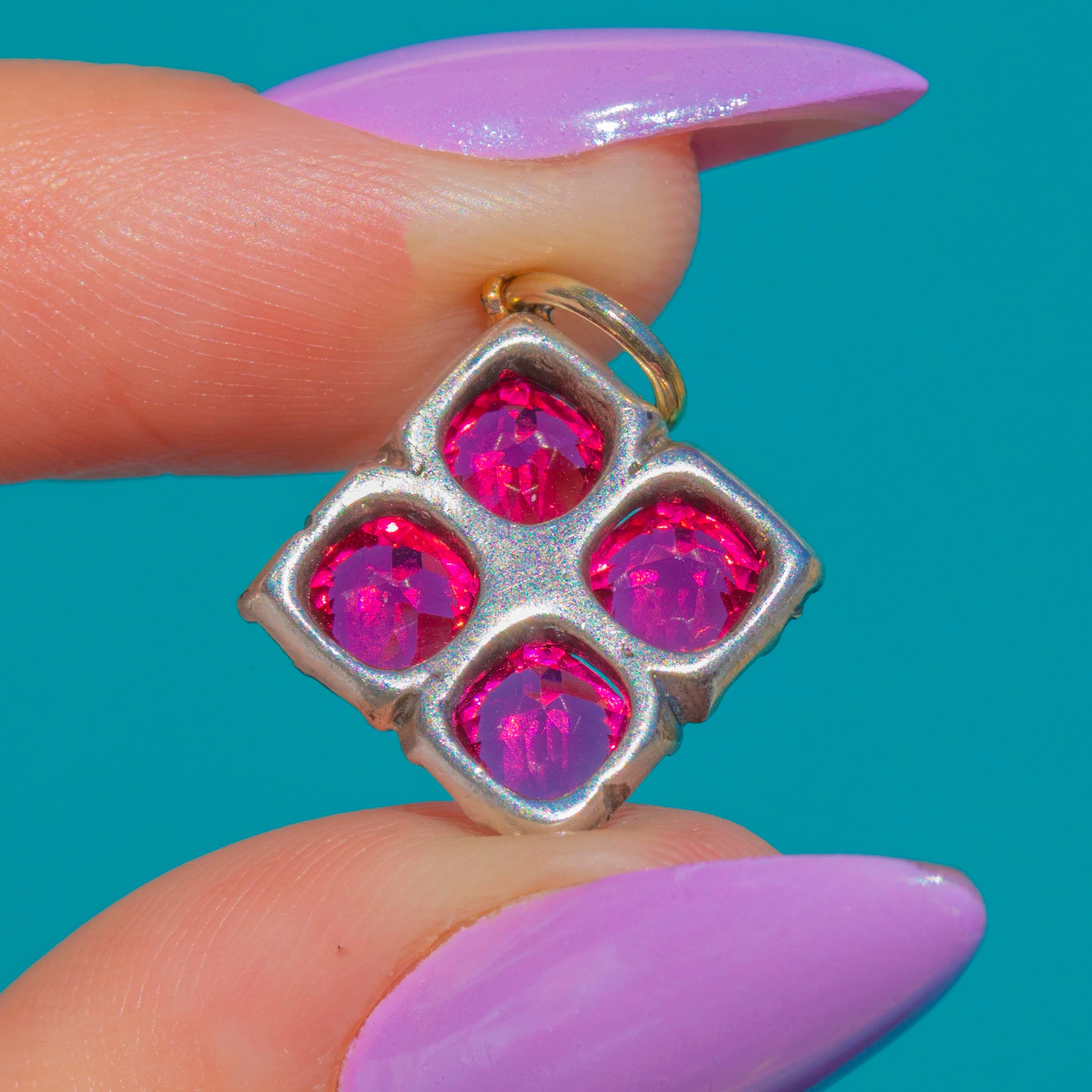 Antique Hot Pink Paste Flower Charm, Silver & 9ct Gold