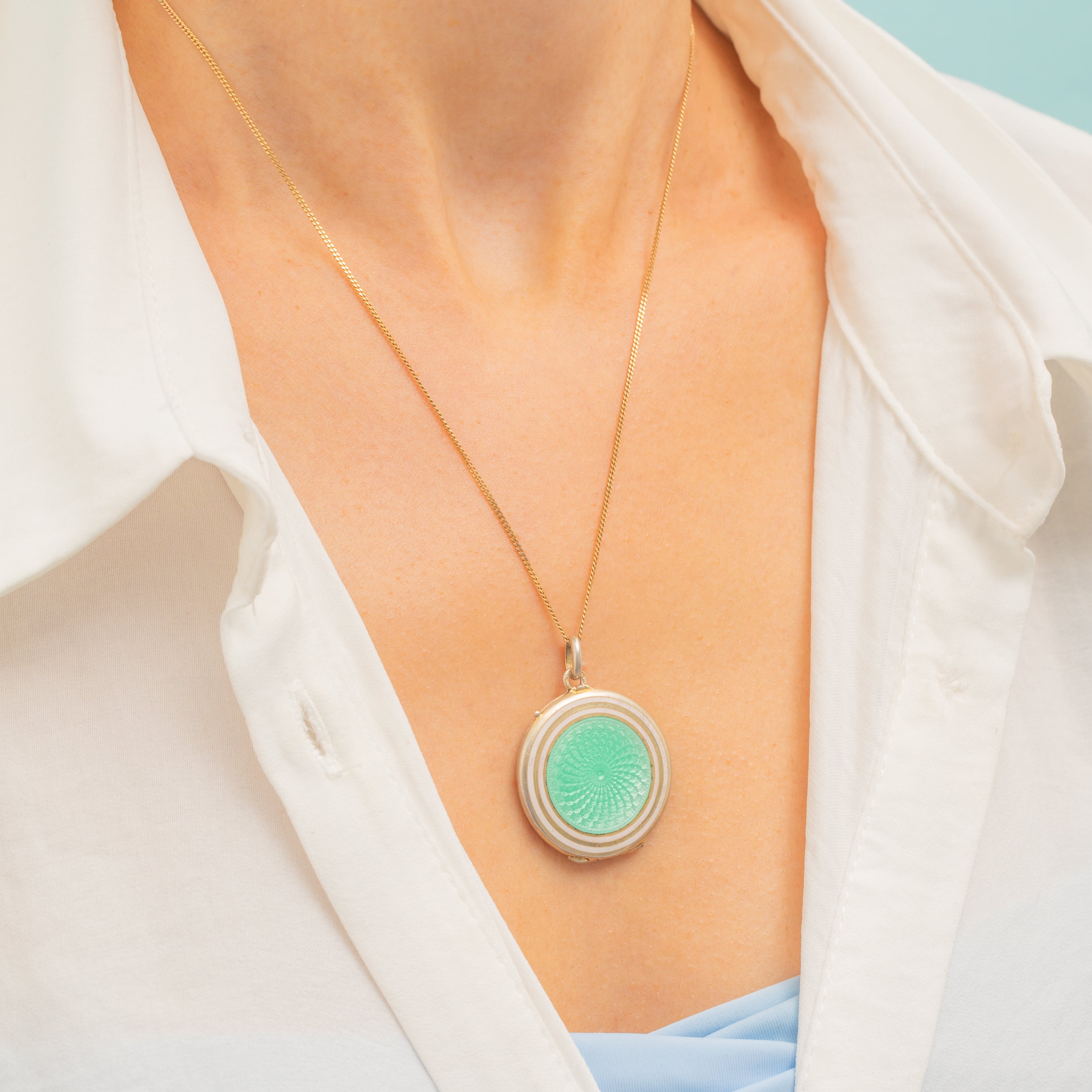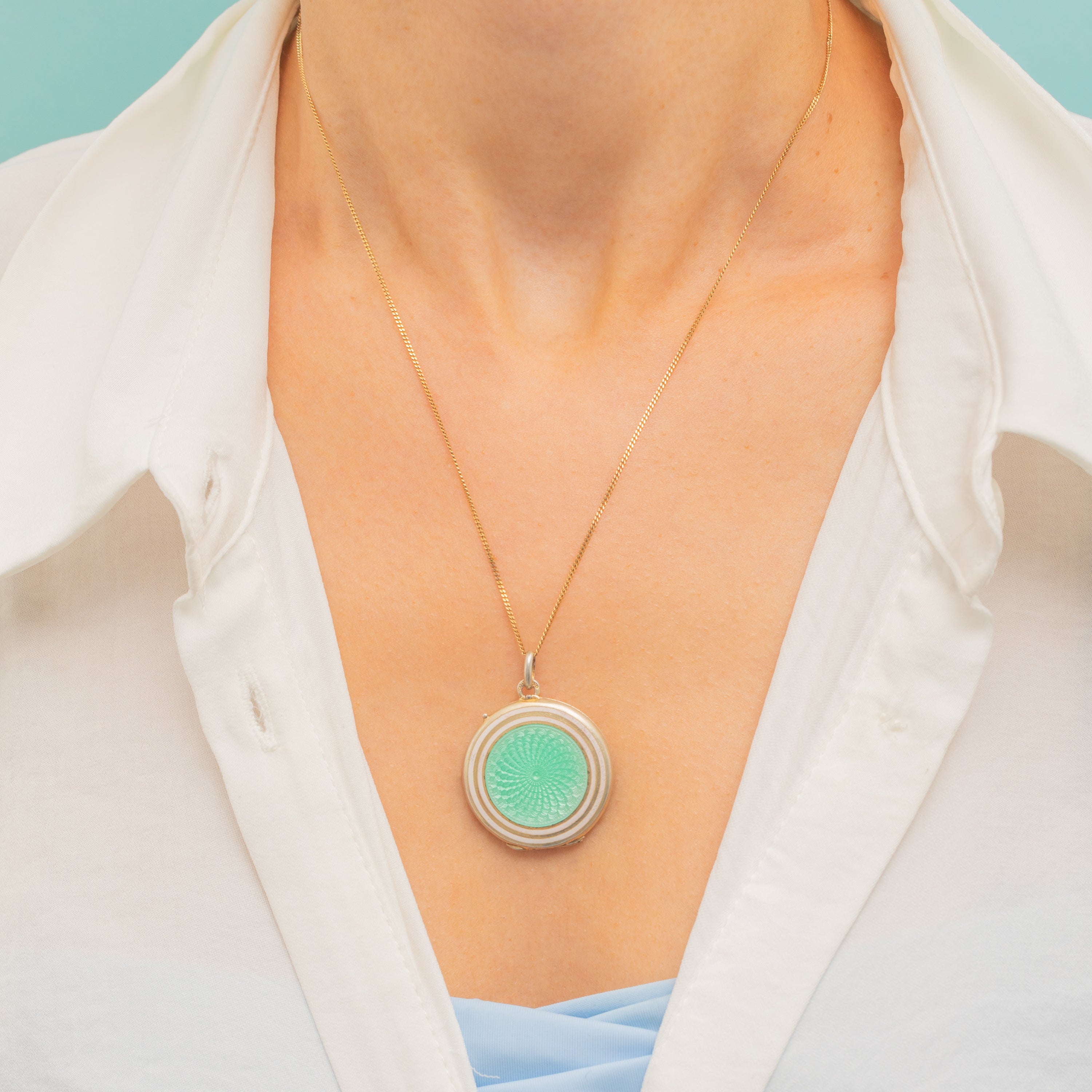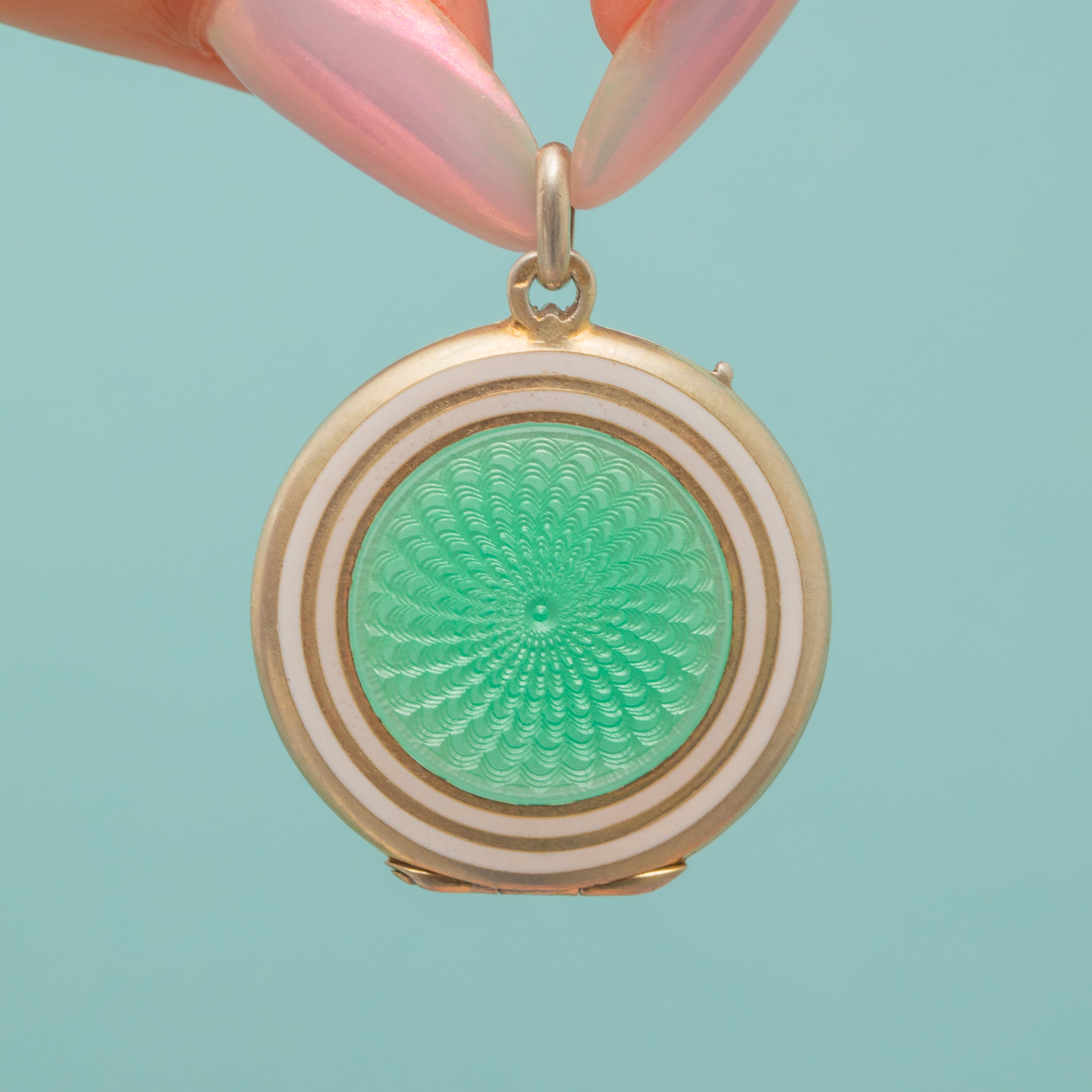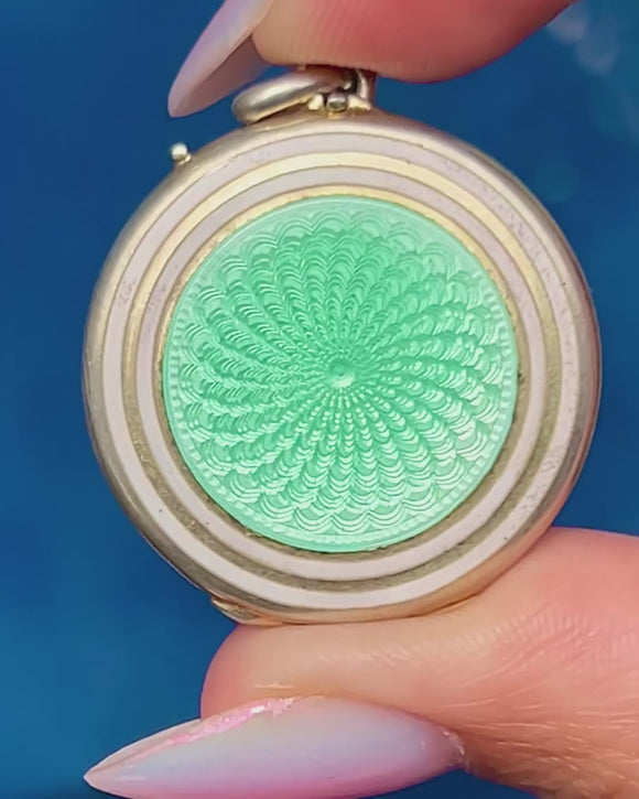 Antique Mint Green Guilloche Enamel Locket