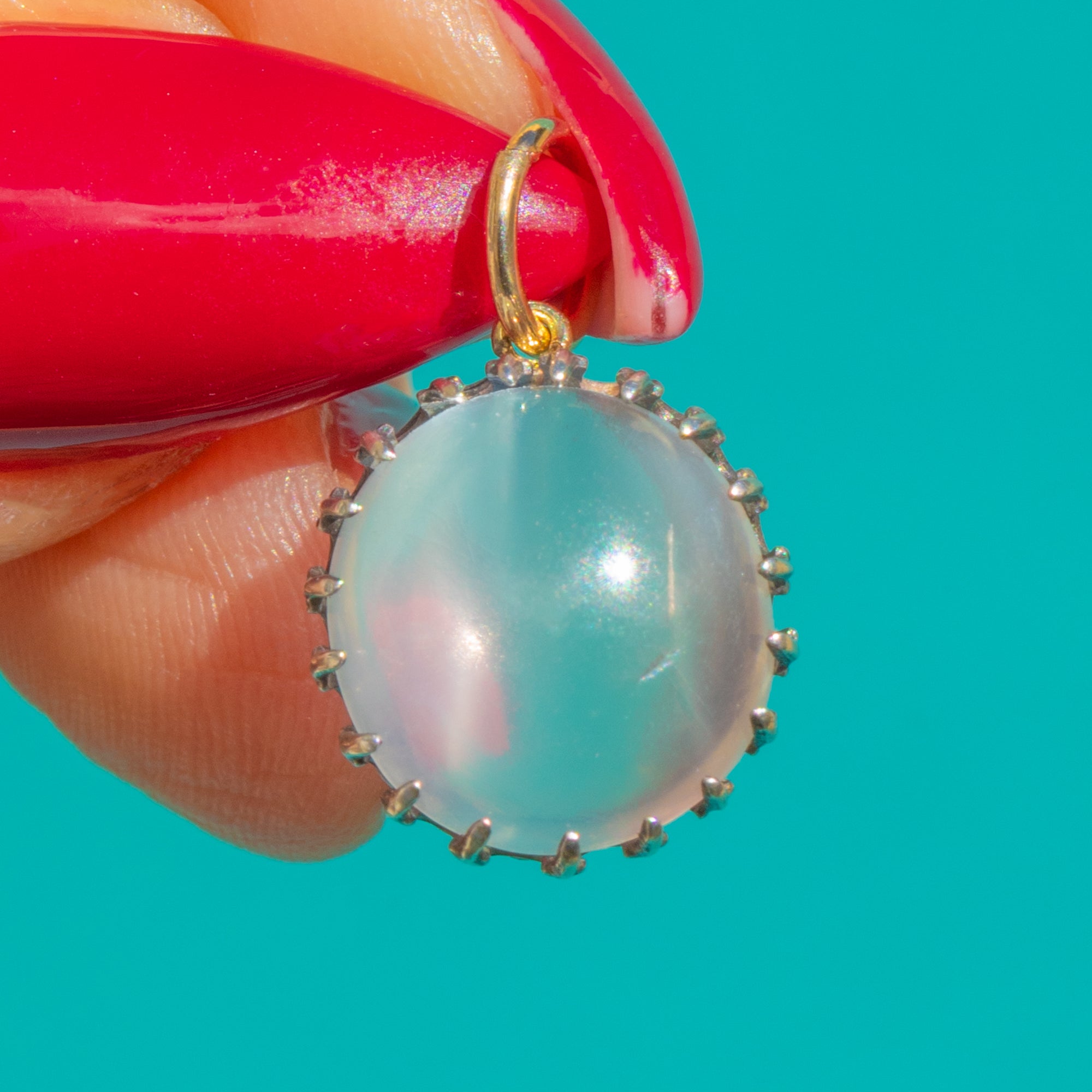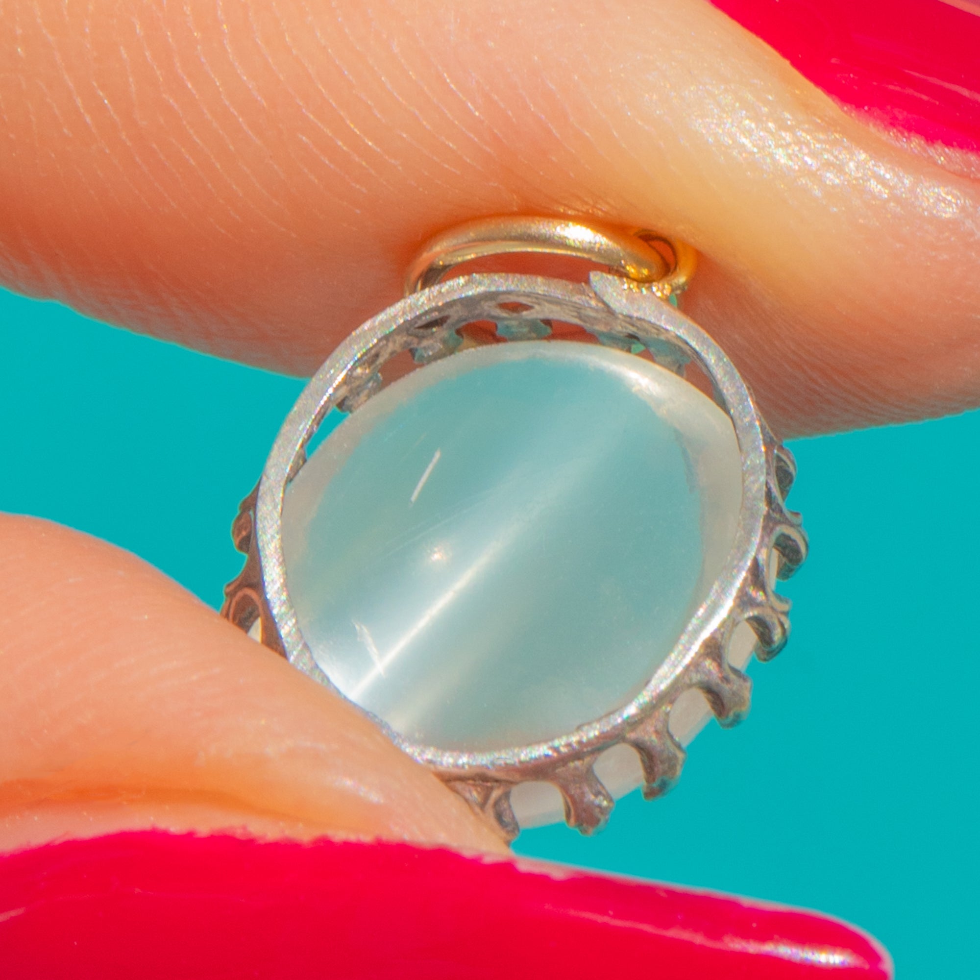 Antique Moonstone Cabochon Charm, 9ct Gold & Silver