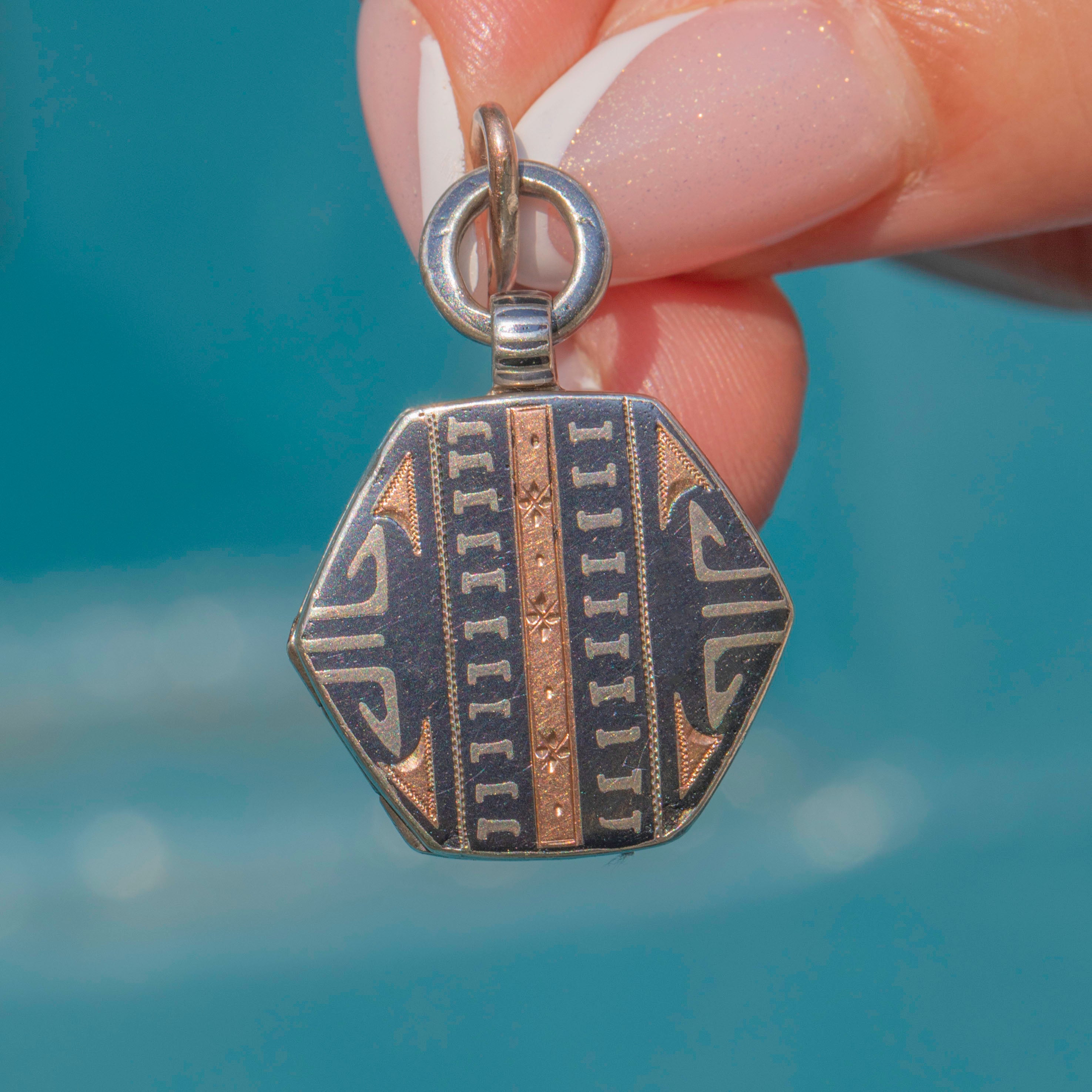 This striking antique Niello hexagonal locket will make a highly coveted addition to your collection! Attributed to Gustav Hauber, who was renowned for his high-quality craftsmanship at the end of the 19th century, this Victorian locket has been wonderfully preserved, making this a desirable piece.