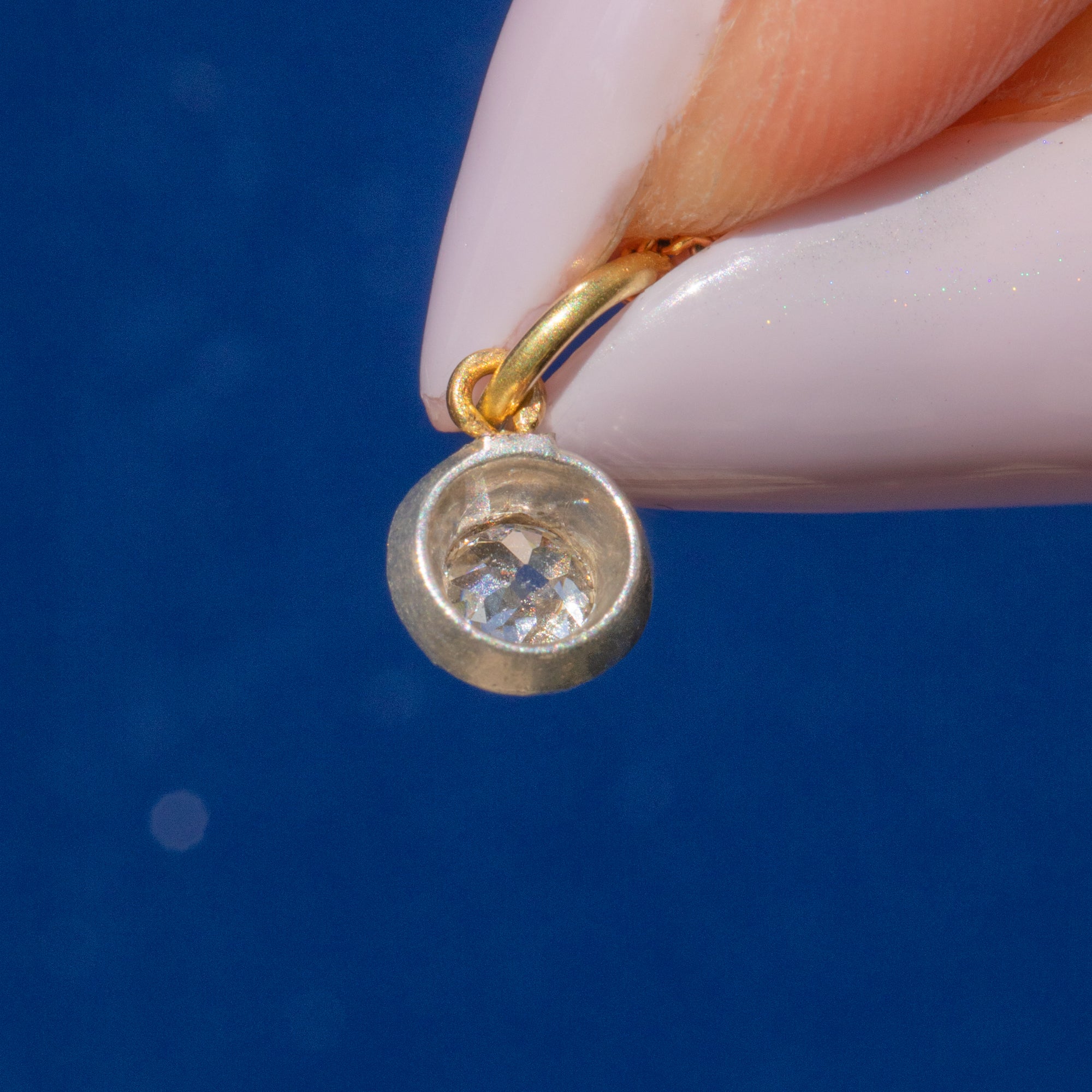 EXCELLENT. With no chips or fleabites, this antique old-mine cut Diamond charm is in excellent condition! She is securely held within collet settings, and is guaranteed to last a lifetime. The Diamond is radiant as ever, which is incredible considering her age. Need we say more?!