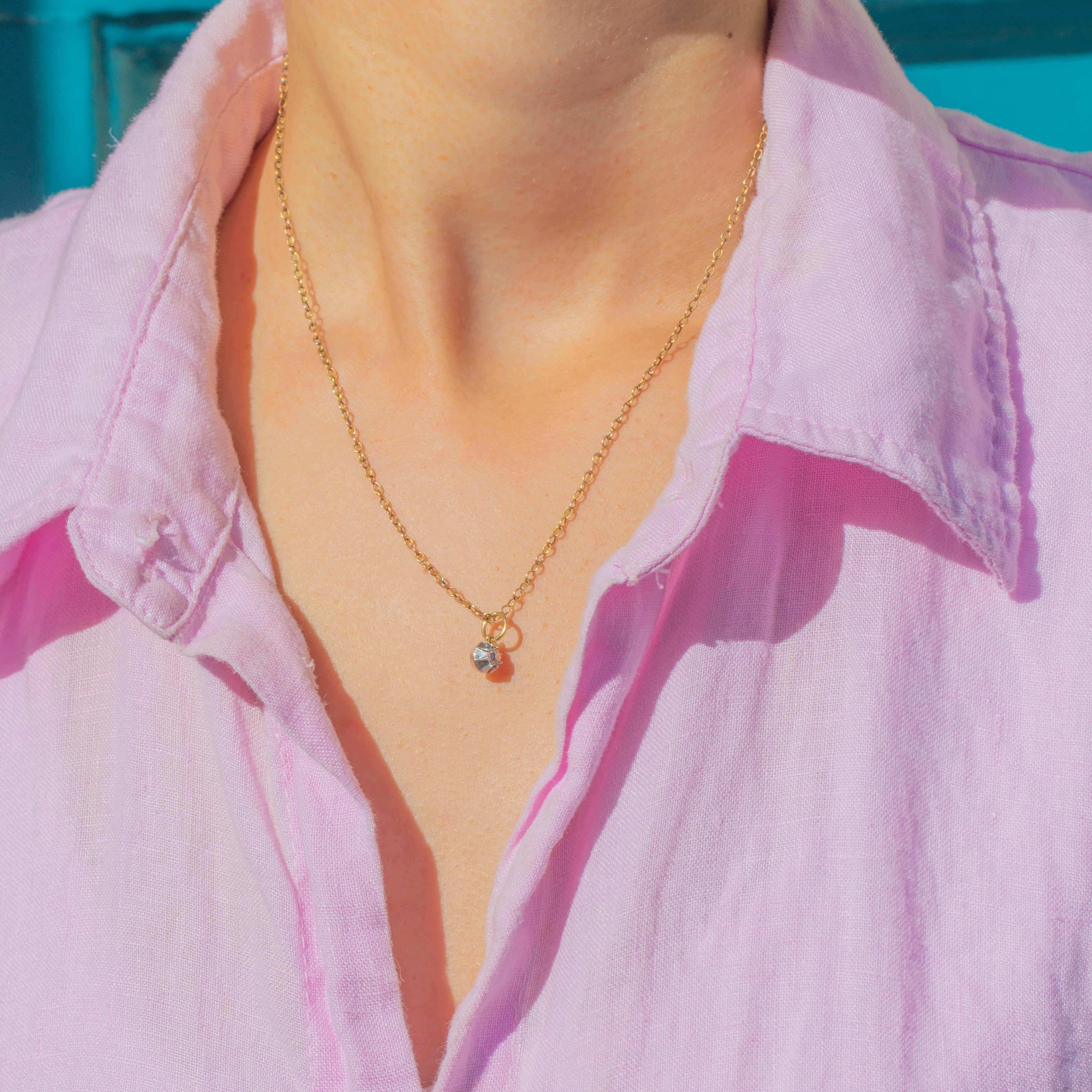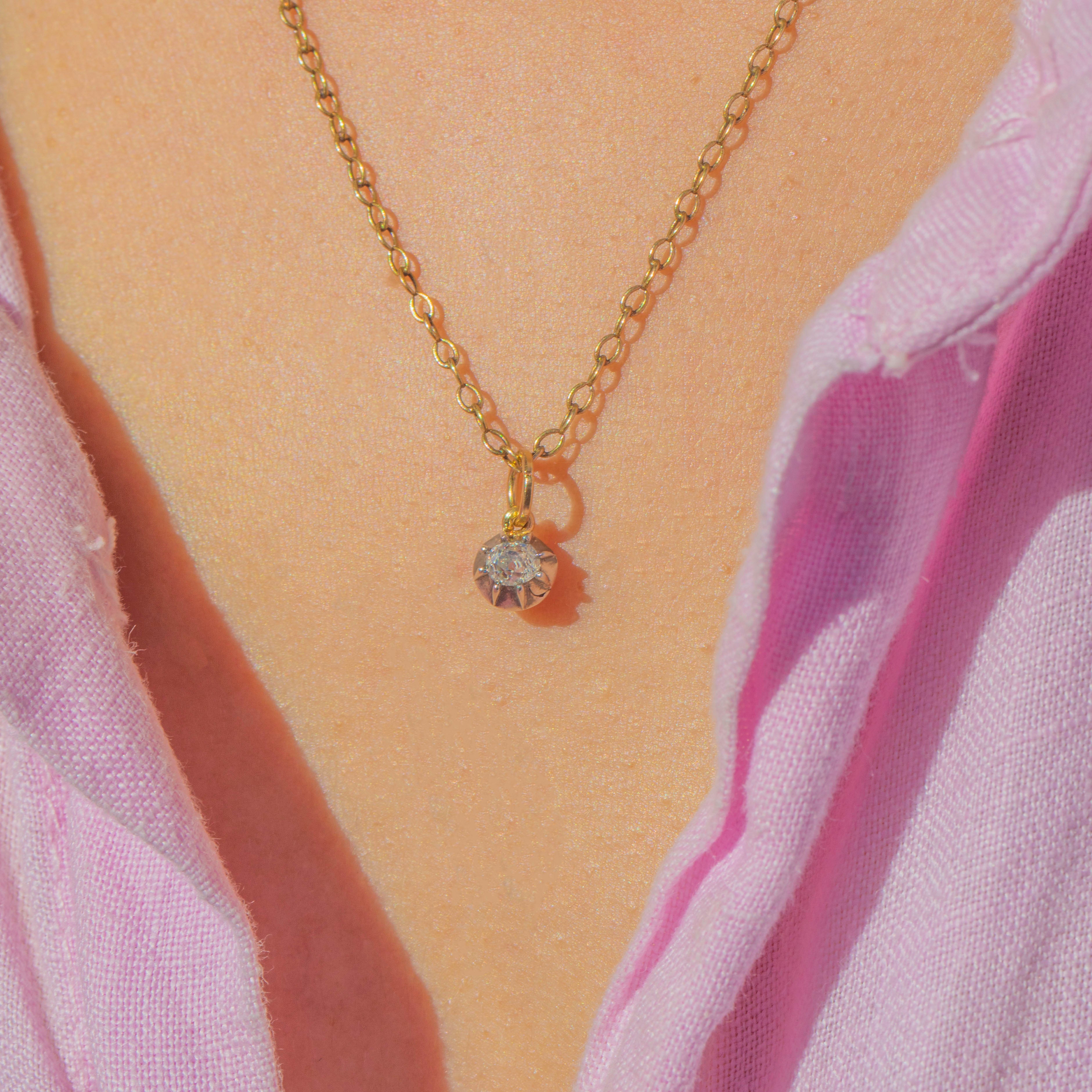 The Diamond is mounted in a classic Sterling Silver collet with an 18ct Gold back and finished with an 18ct Gold jump ring. Full of Victorian character, this dainty charm is perfect worn alone or styled alongside other antique pendants and charms.