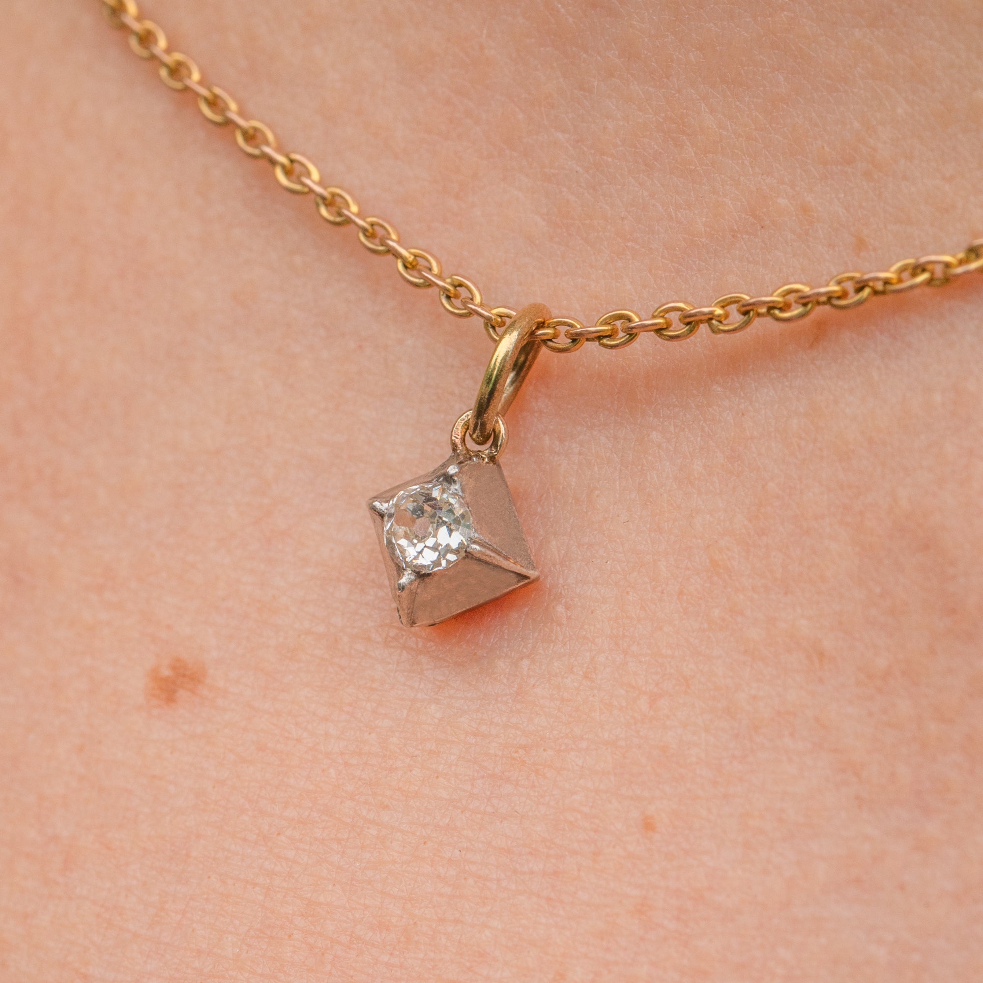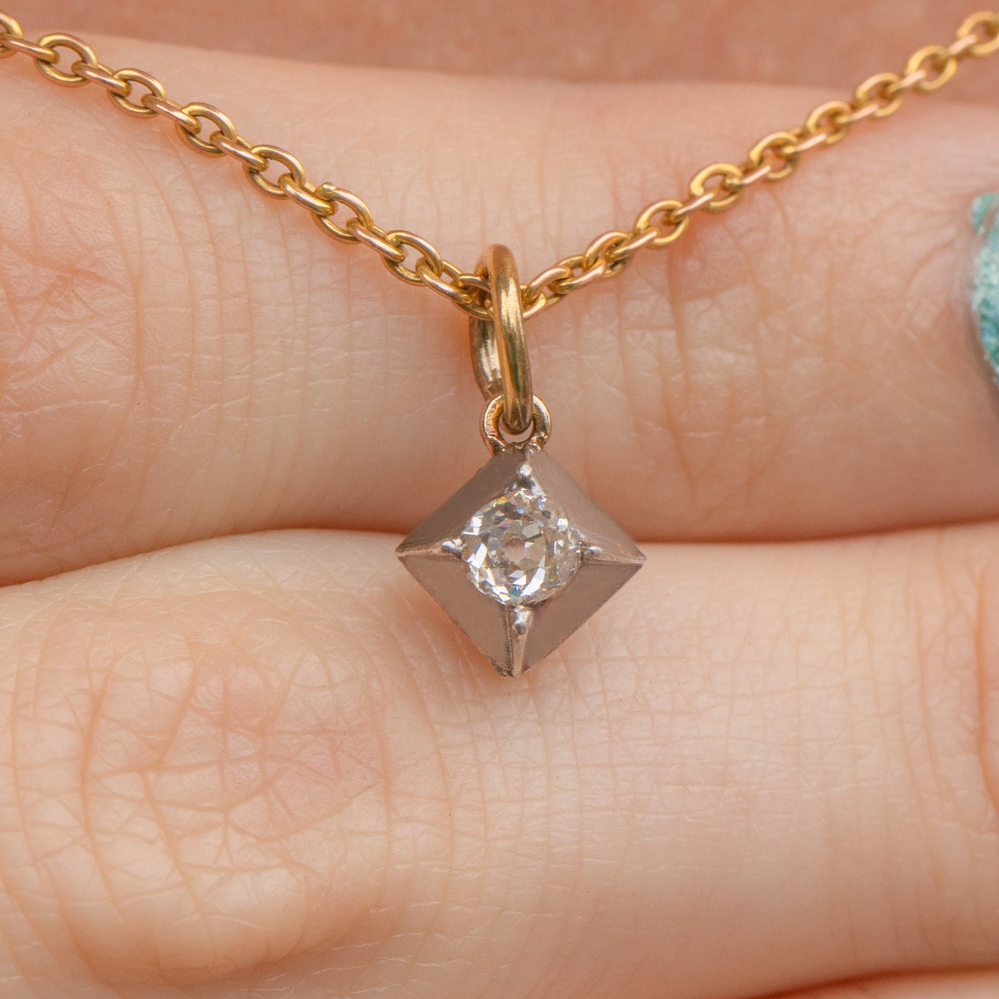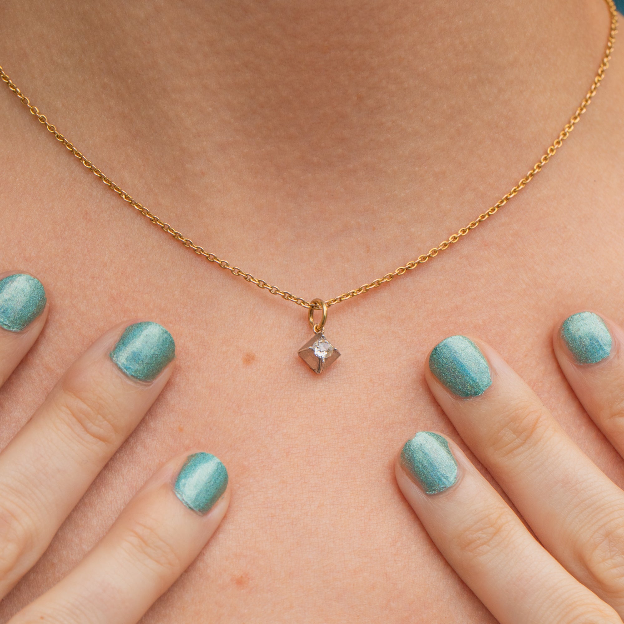Antique Old-Mine Cut Diamond Square Charm, 0.15ct