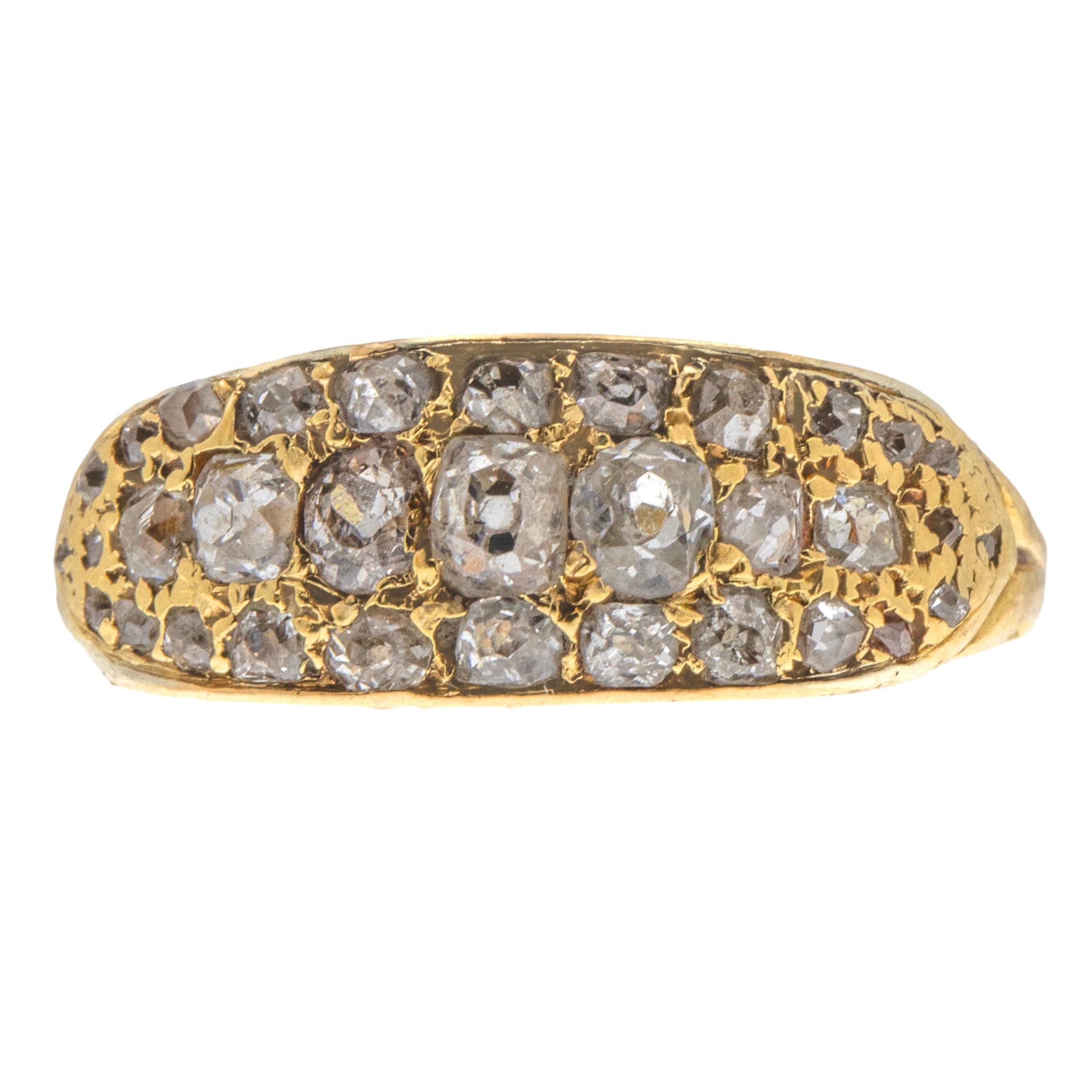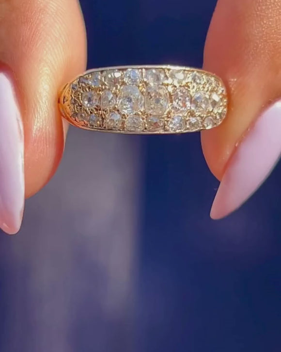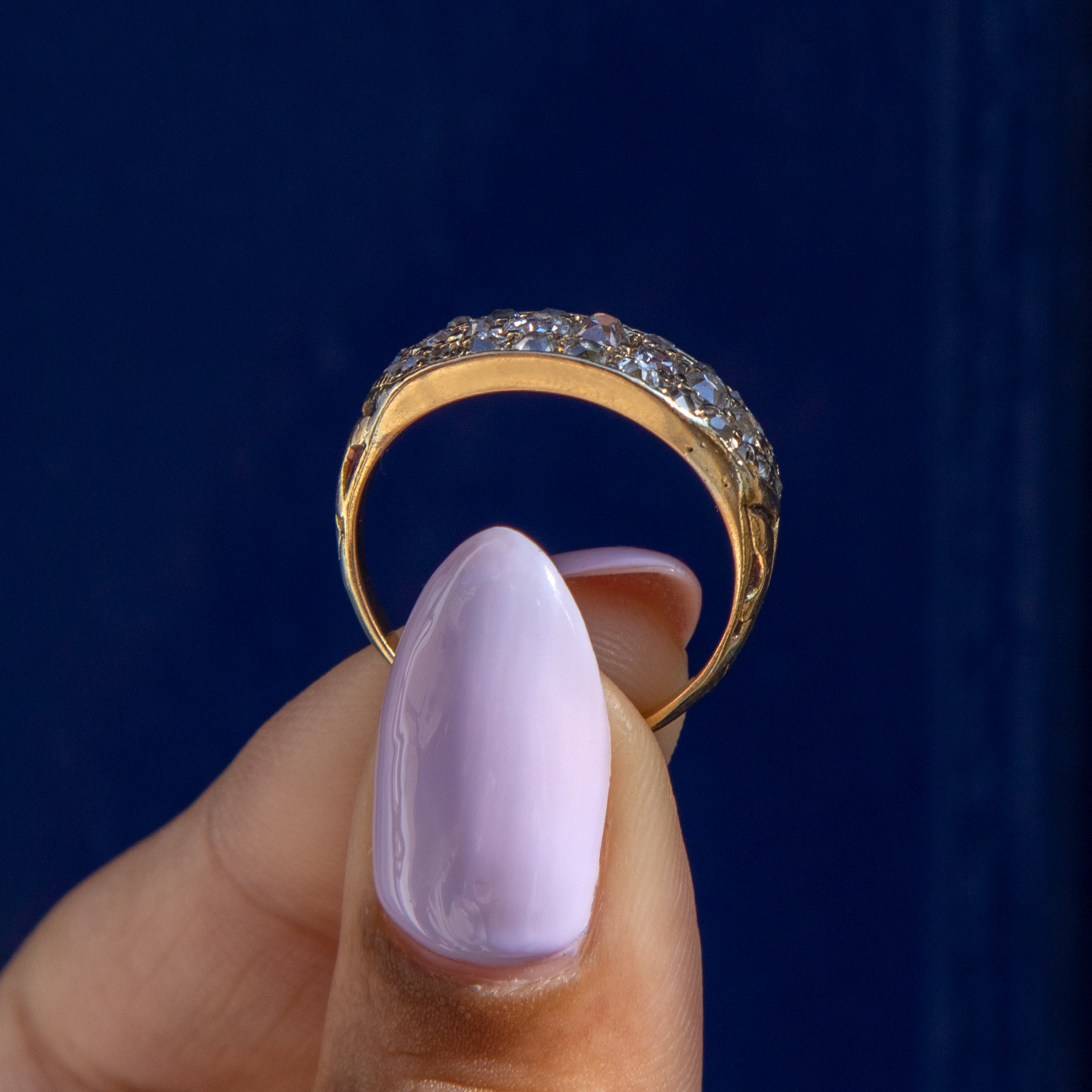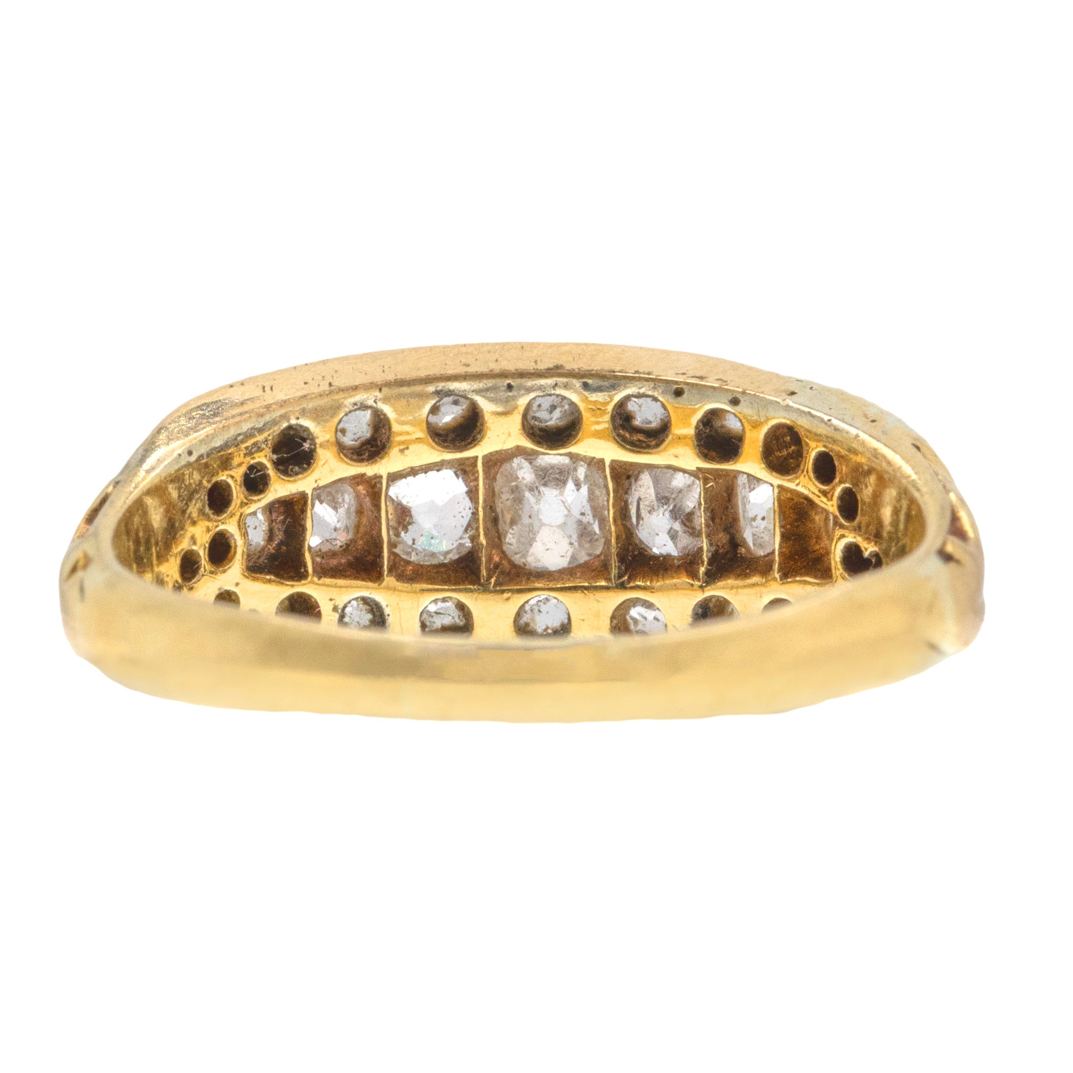 Bague bateau trois rangs en diamant taille ancienne Old-Mine en or 18 carats antique, 0,55 ct