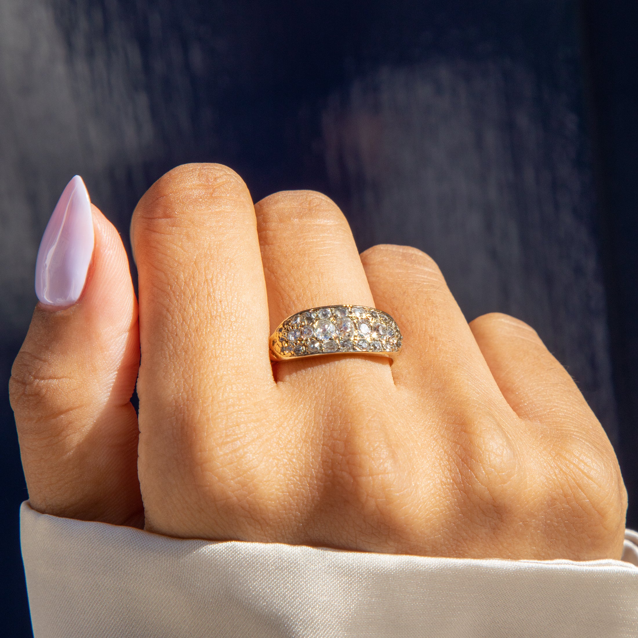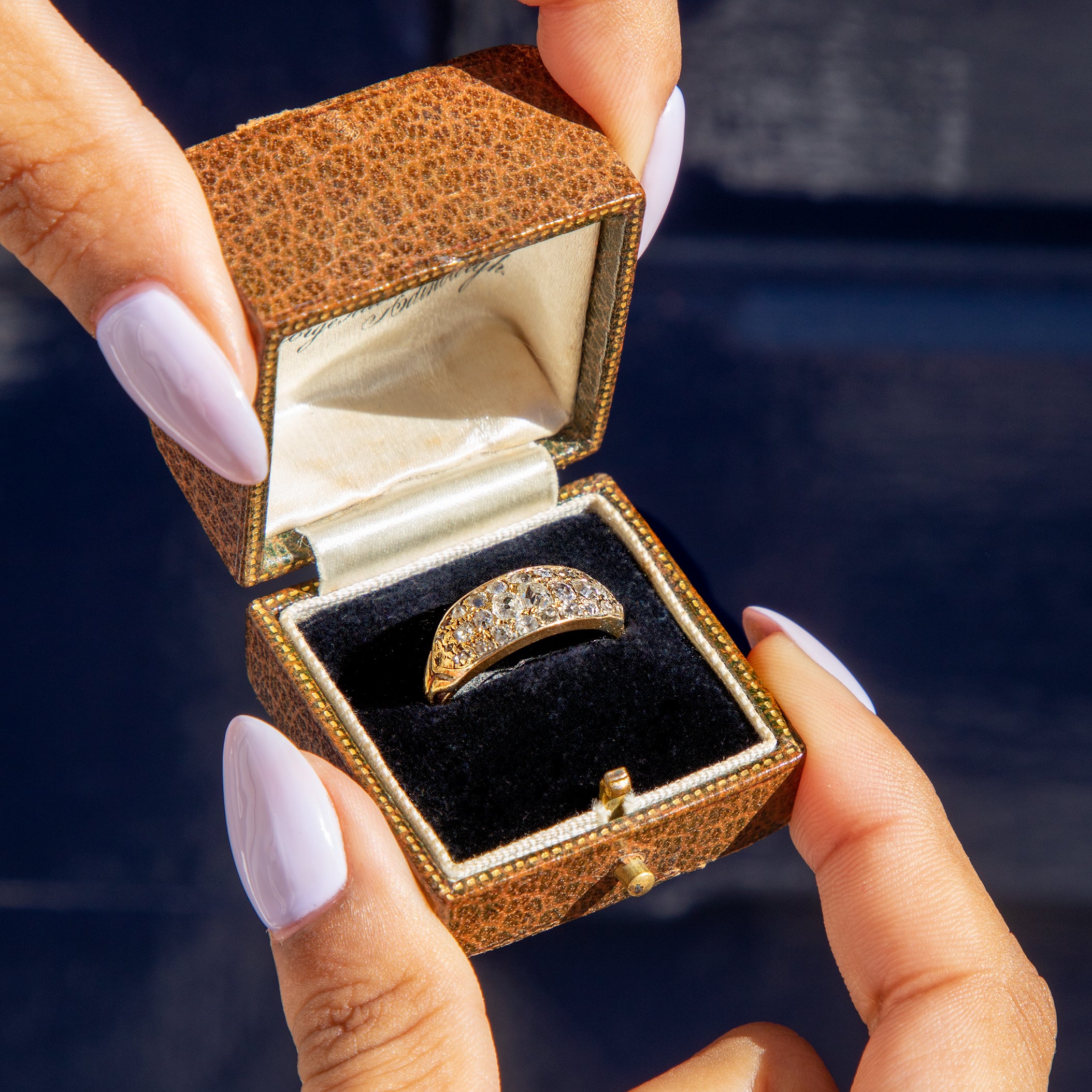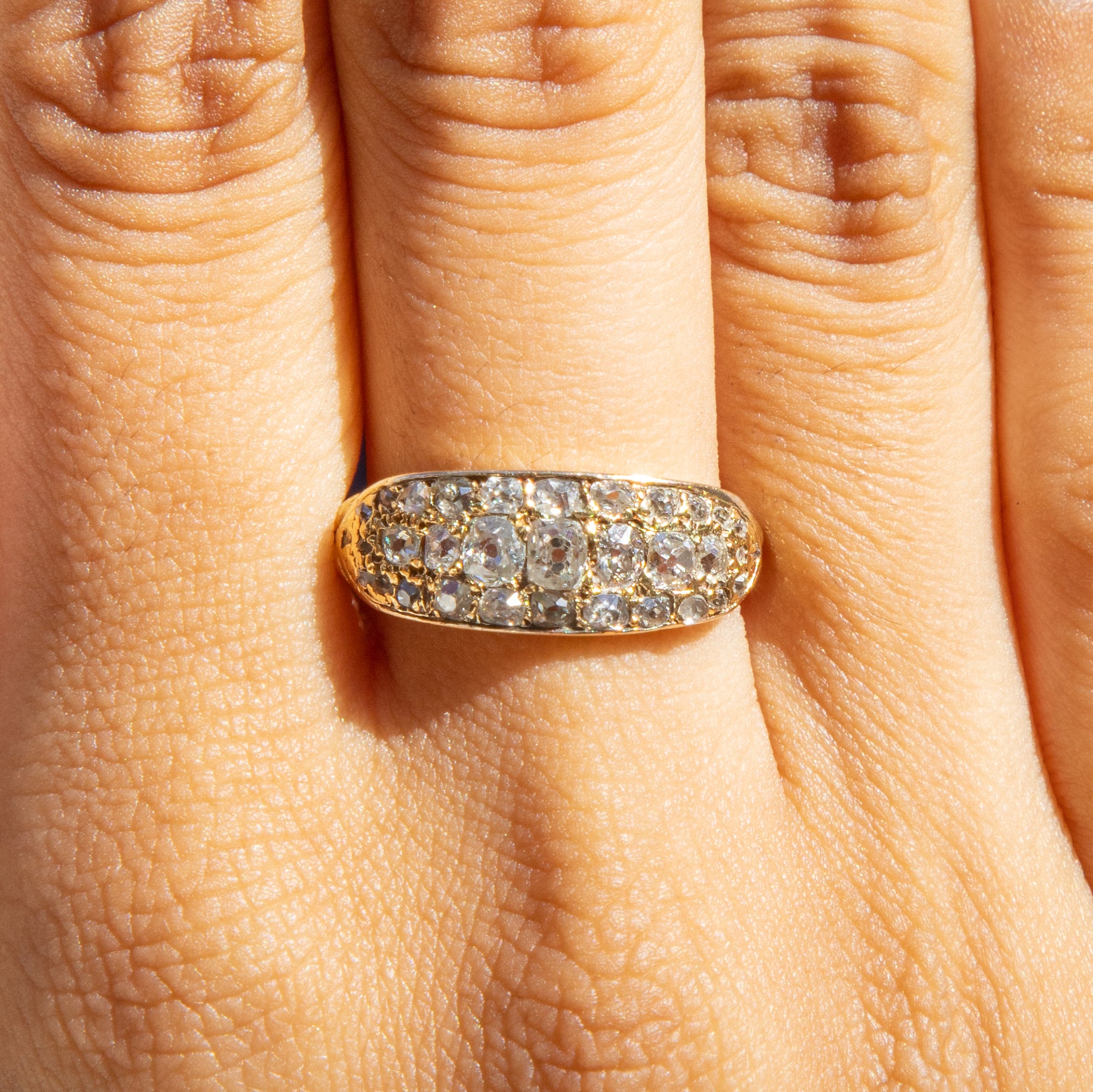 Bague bateau trois rangs en diamant taille ancienne Old-Mine en or 18 carats antique, 0,55 ct