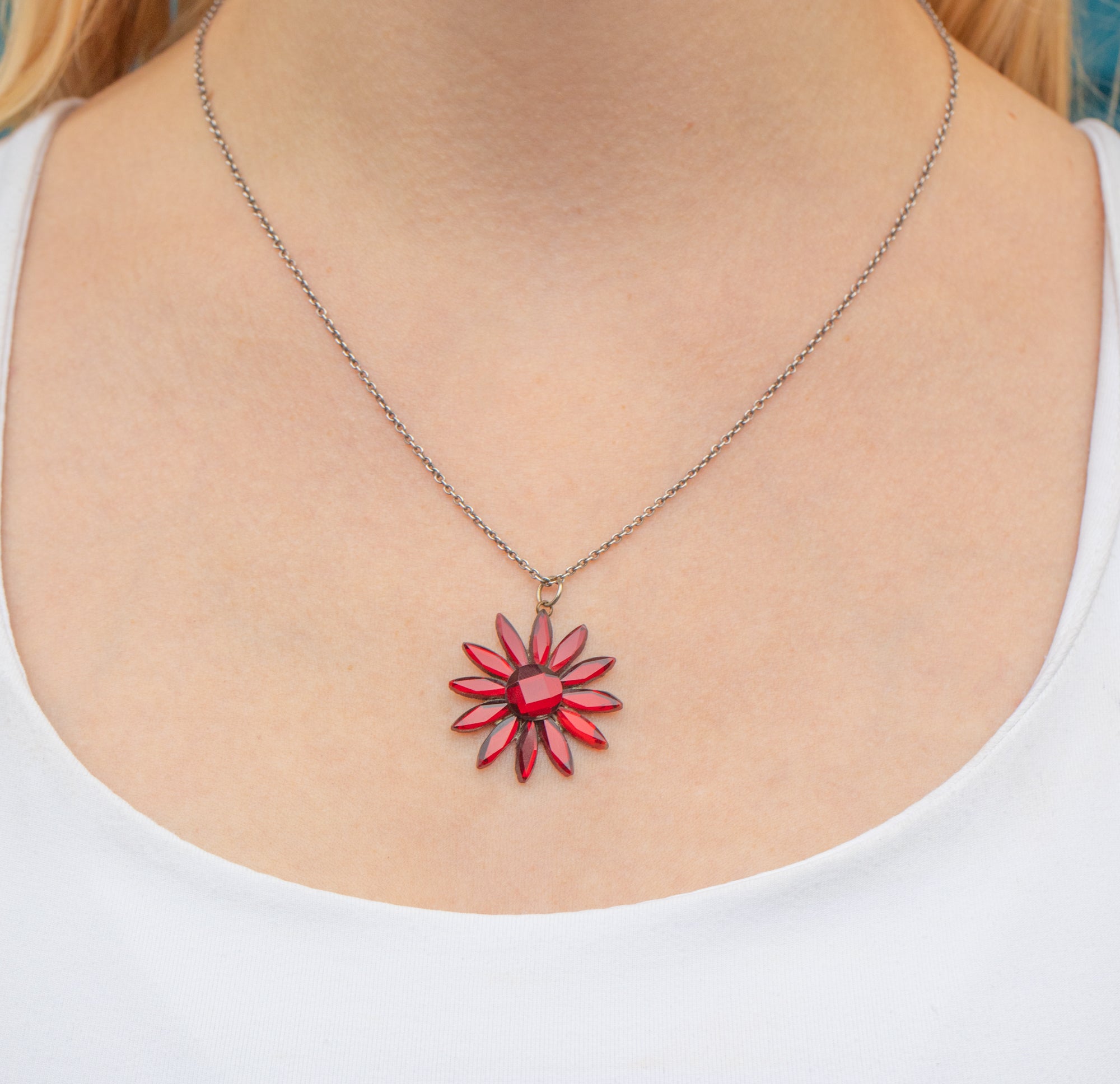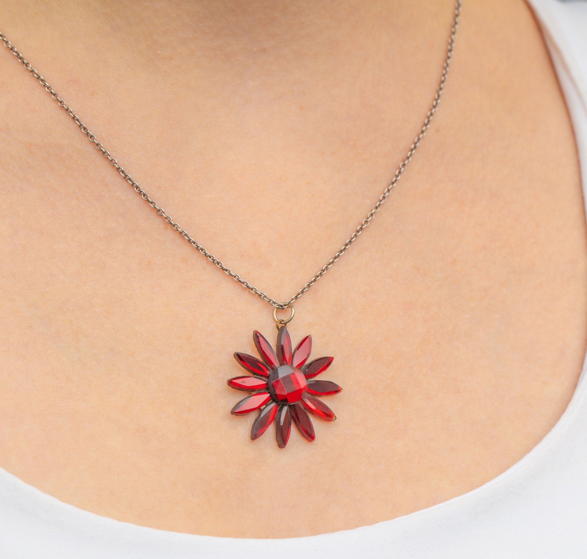 This Victorian flower pendant is versatile and can be worn as a statement piece or layered with other pieces for a more playful look. Her rich crimson colour and timeless design make her a delightful gift for any lovers of antique jewellery.