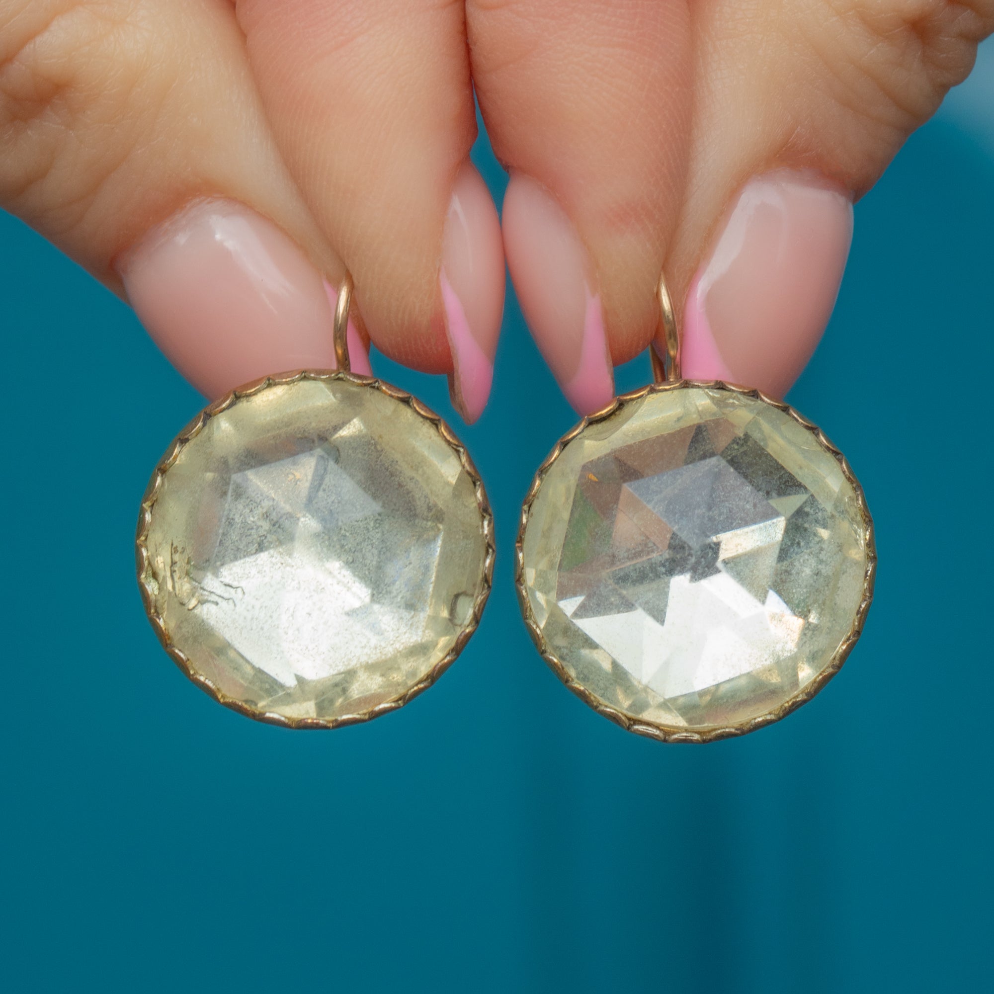 These Georgian earrings are impressive in size and their modest drop makes them the perfect pair to see you from day until night with ease. Antique rose cut Paste in this condition is a rare find, so don't wait around to make these delightful earrings yours!
