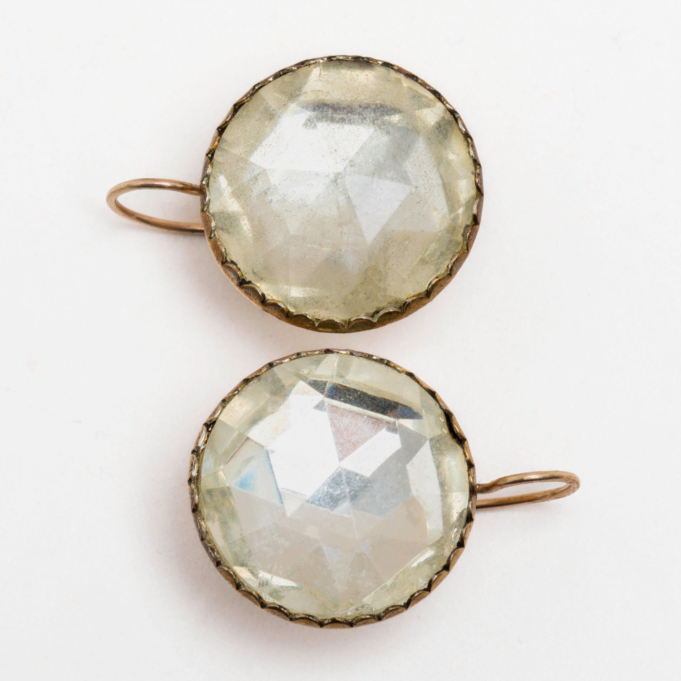Georgian Rose-Cut Paste Button Earrings, 15ct Gold French Hooks