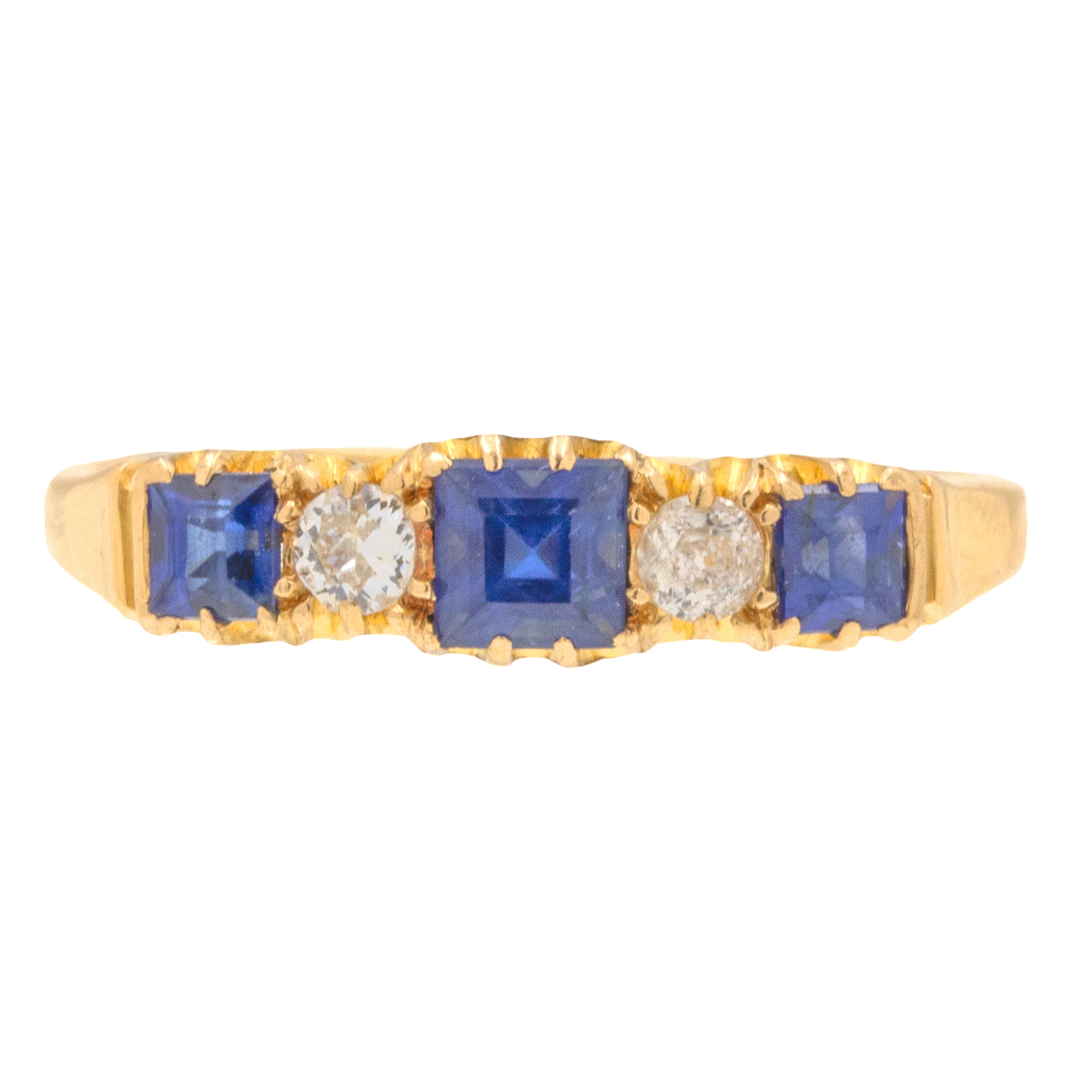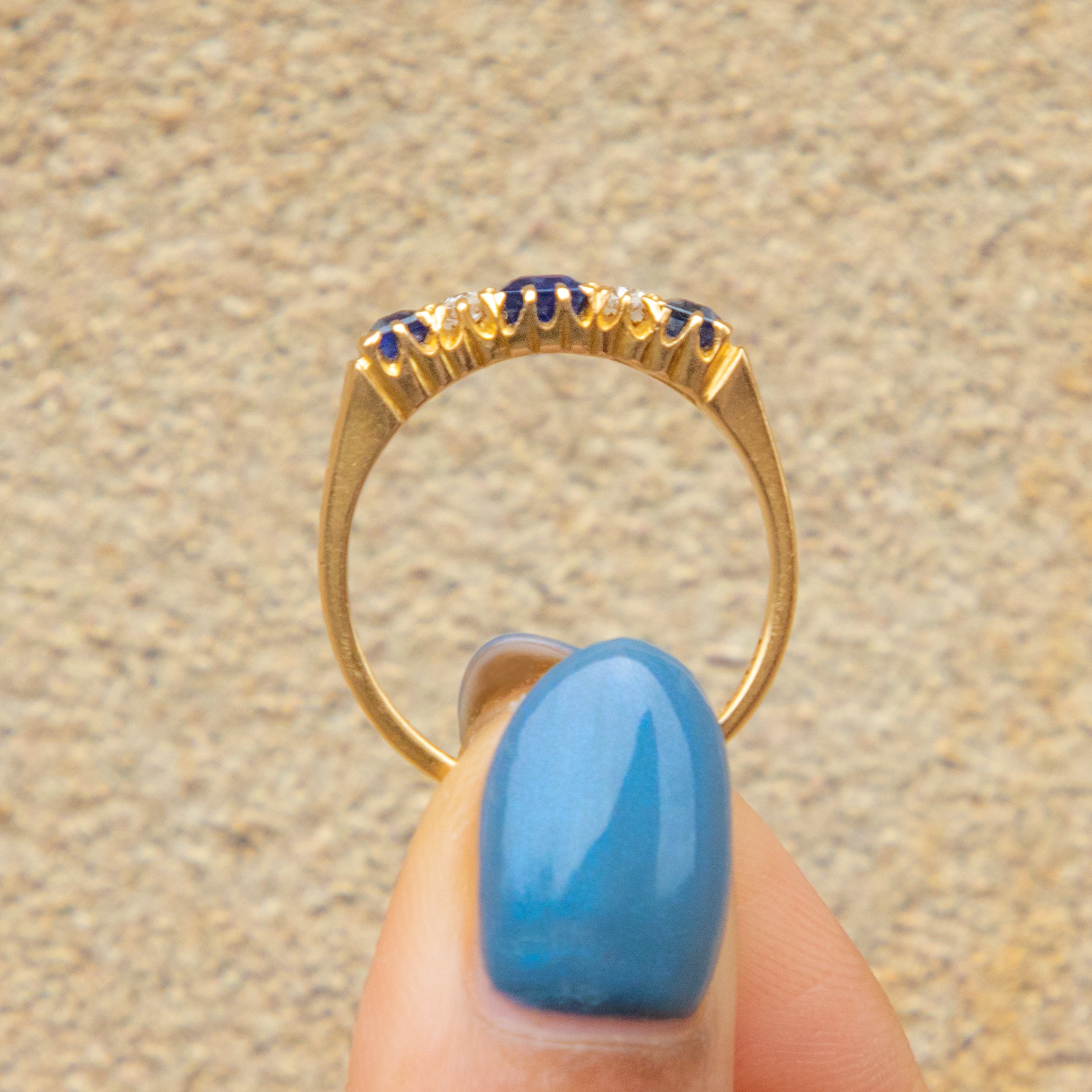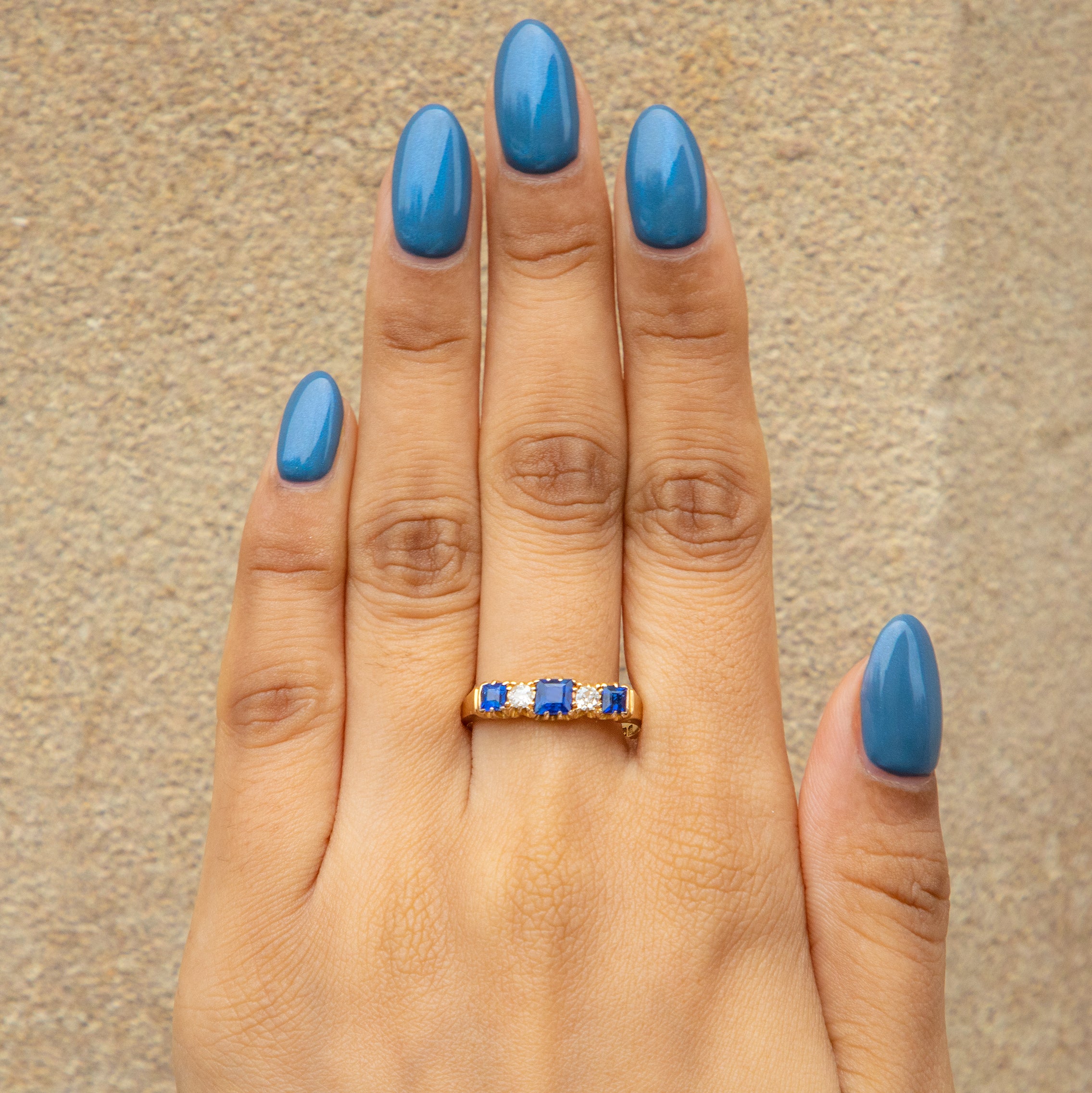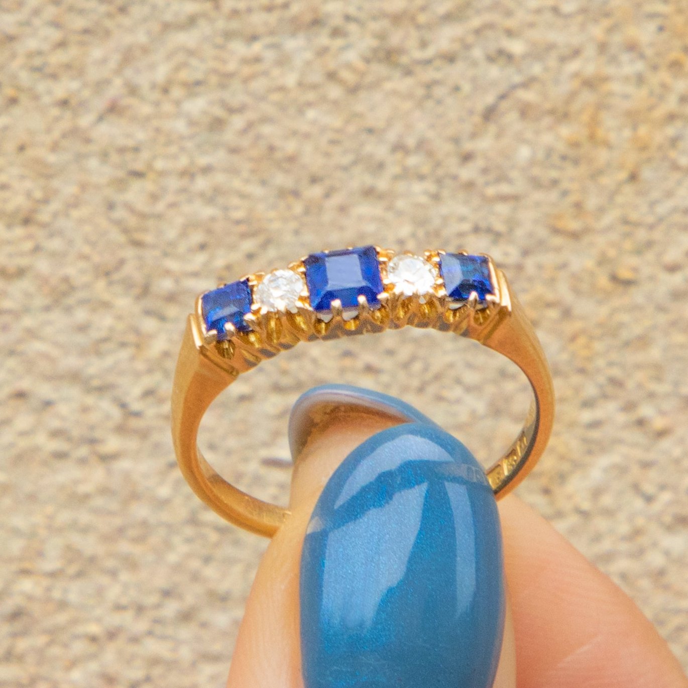 Bague ancienne cinq pierres en or 18 carats avec saphir et diamant, saphir 1,00 ct