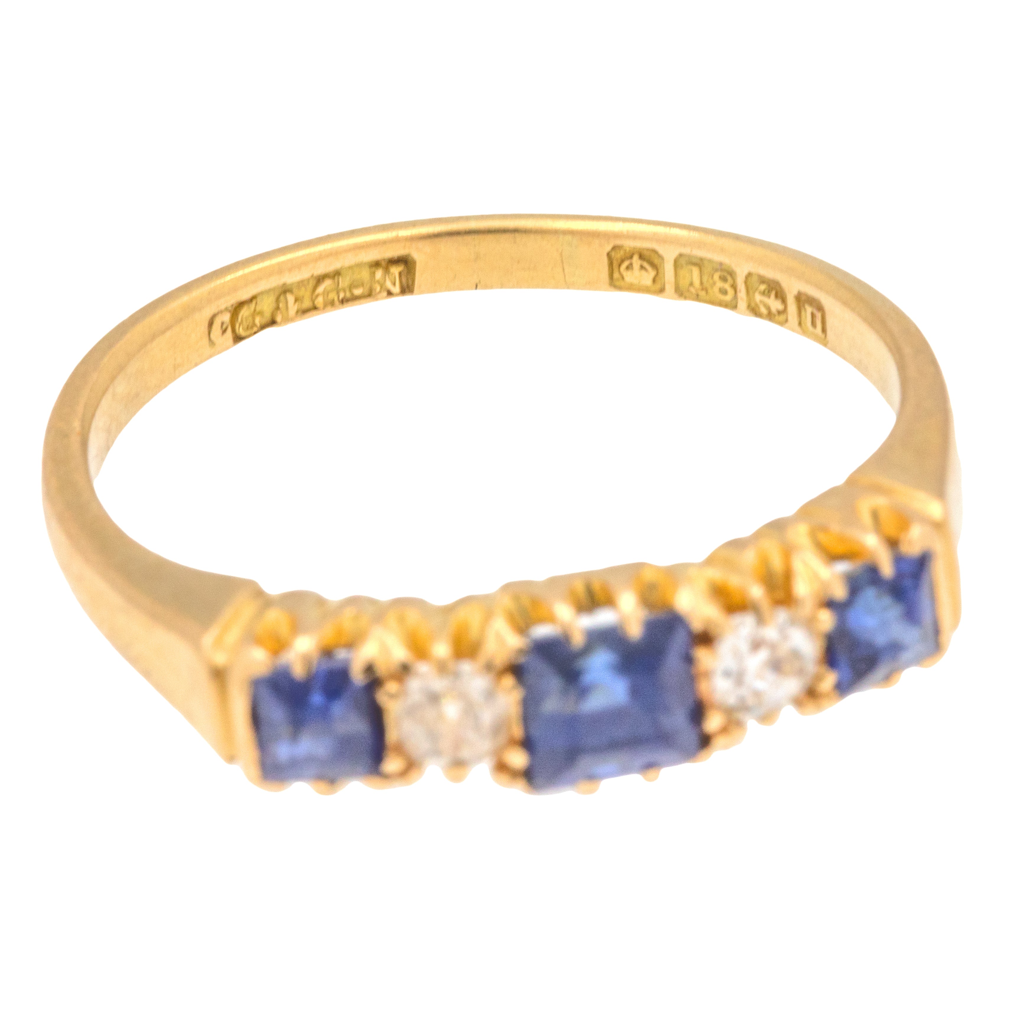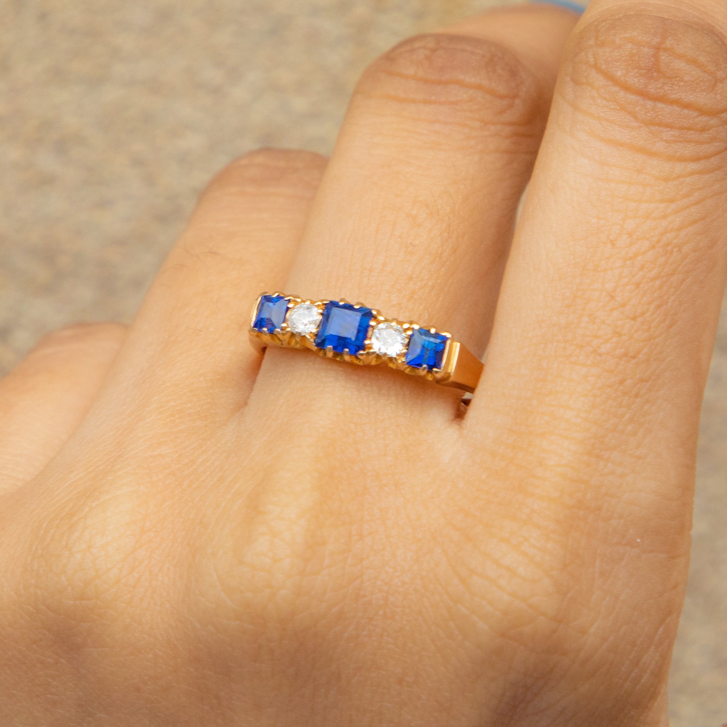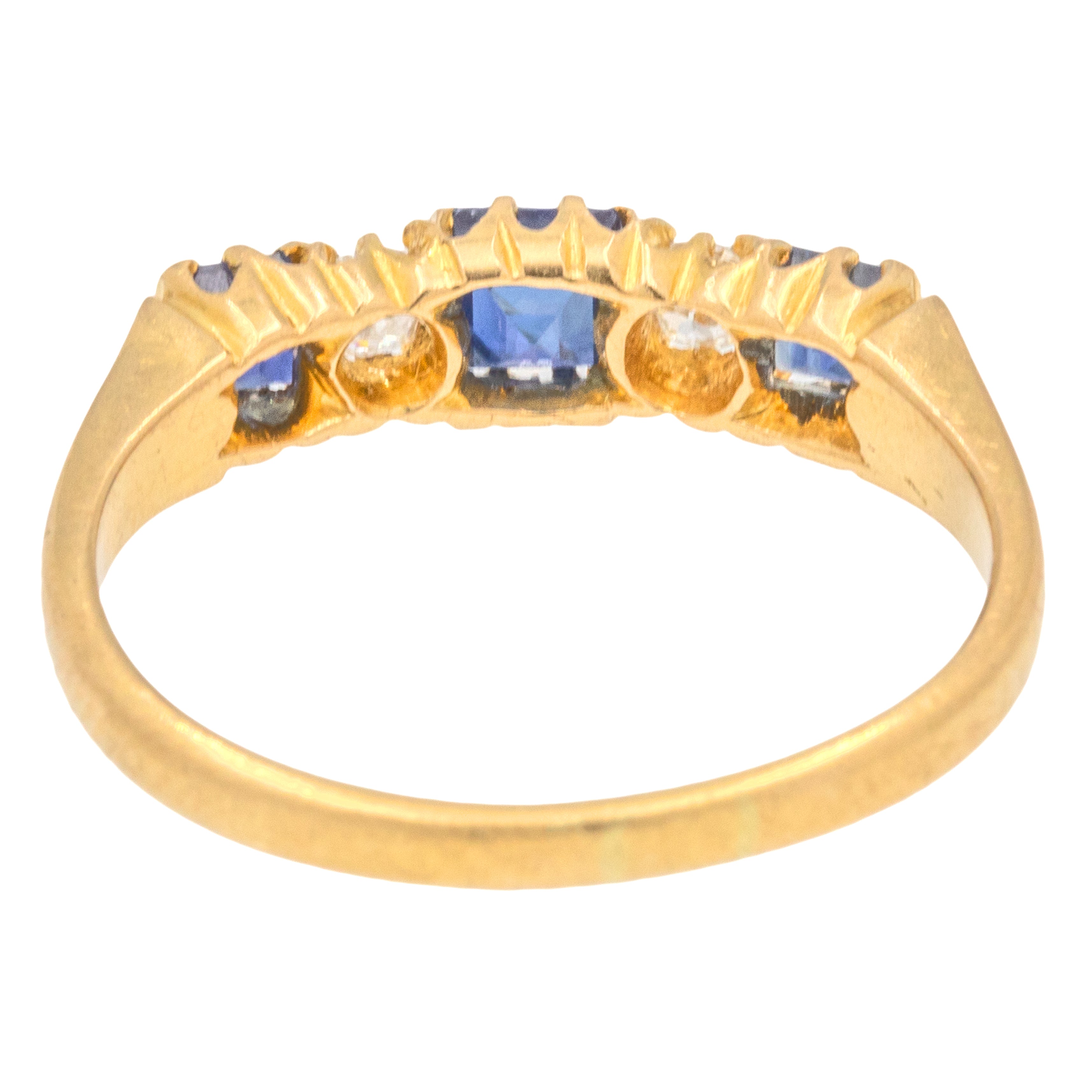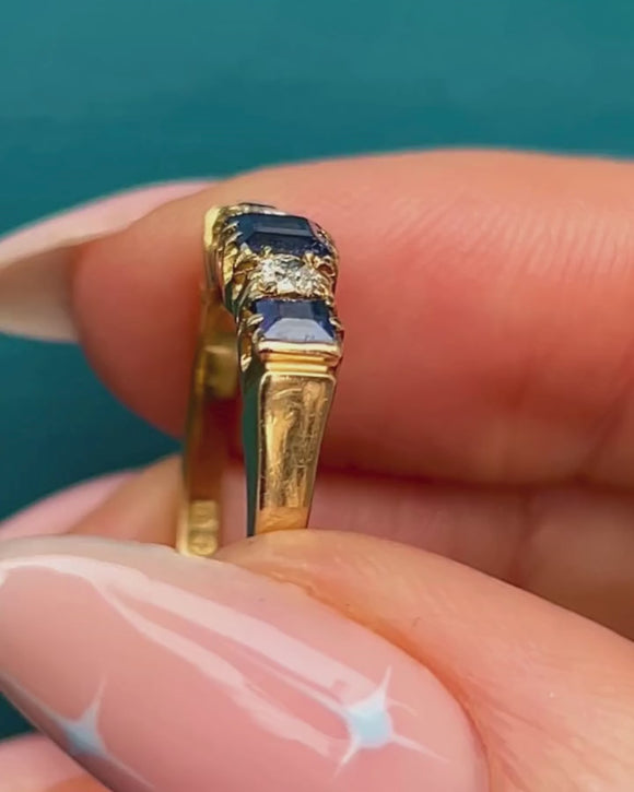 Bague ancienne cinq pierres en or 18 carats avec saphir et diamant, saphir 1,00 ct