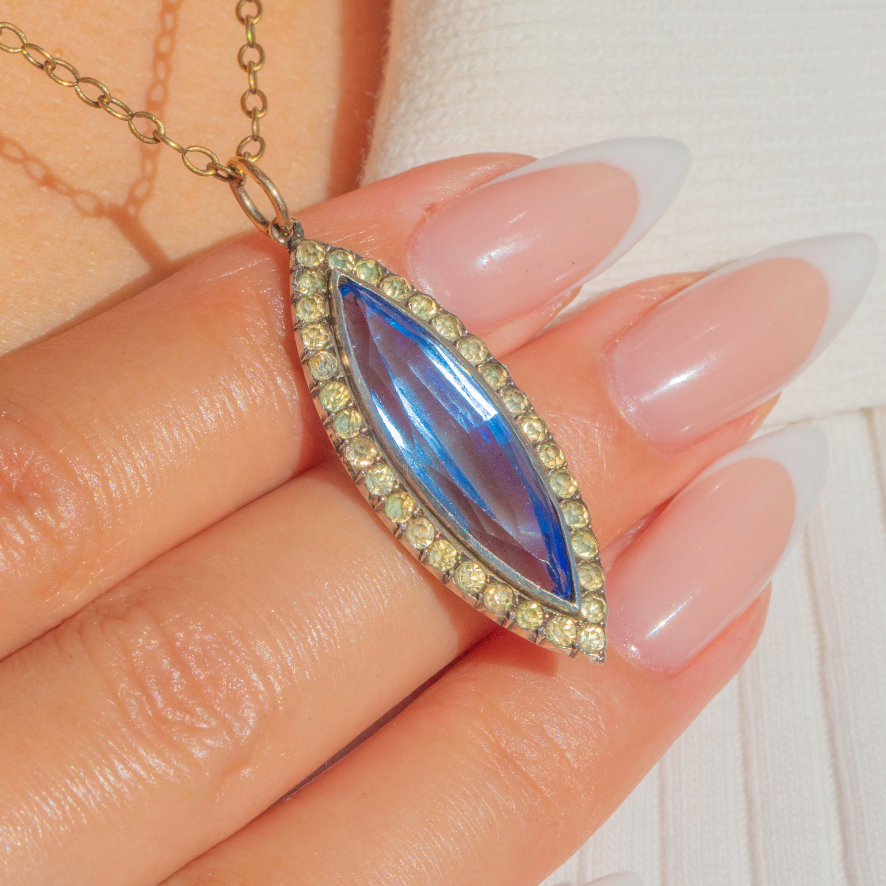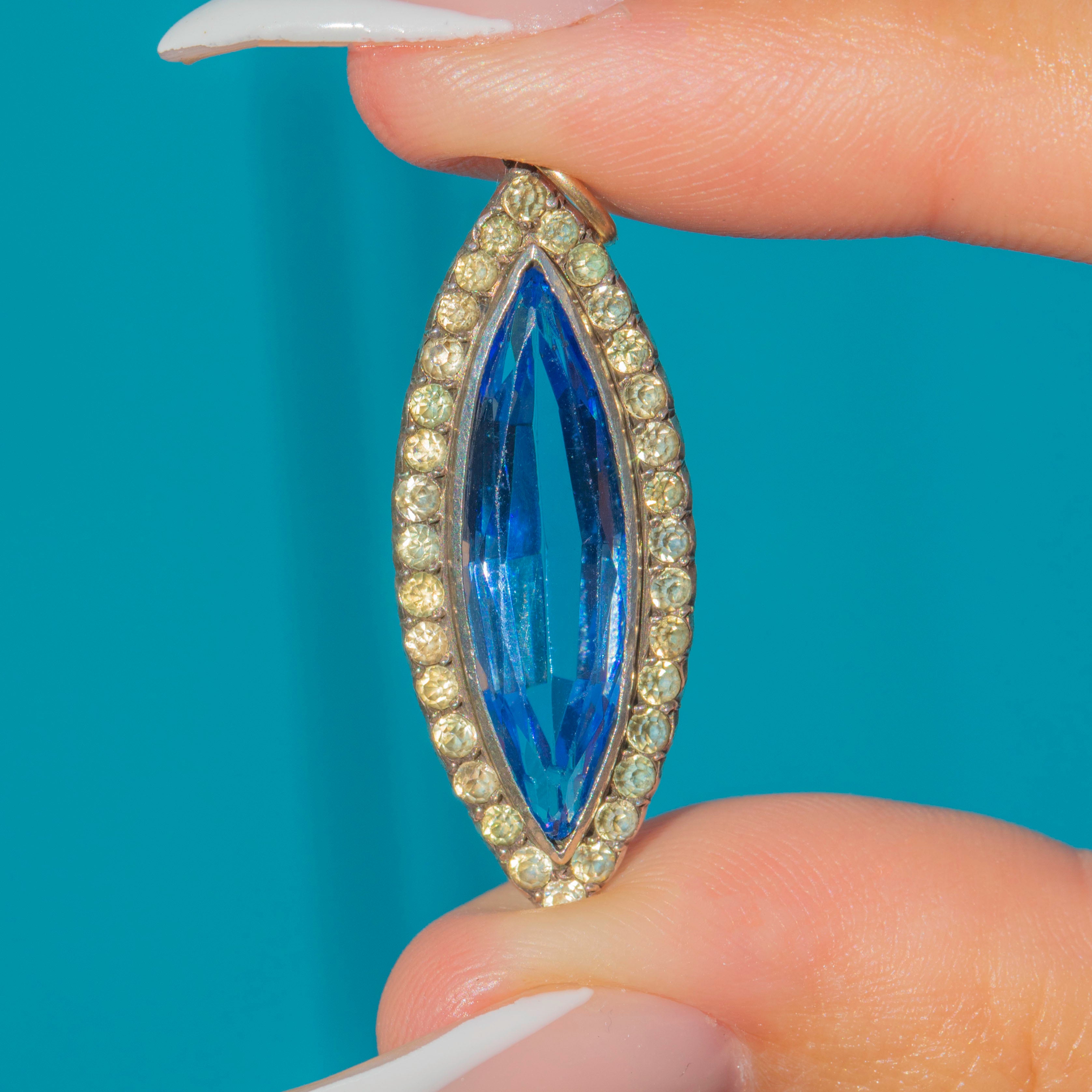 Antique Silver & 9ct Gold Blue Paste Navette Pendant