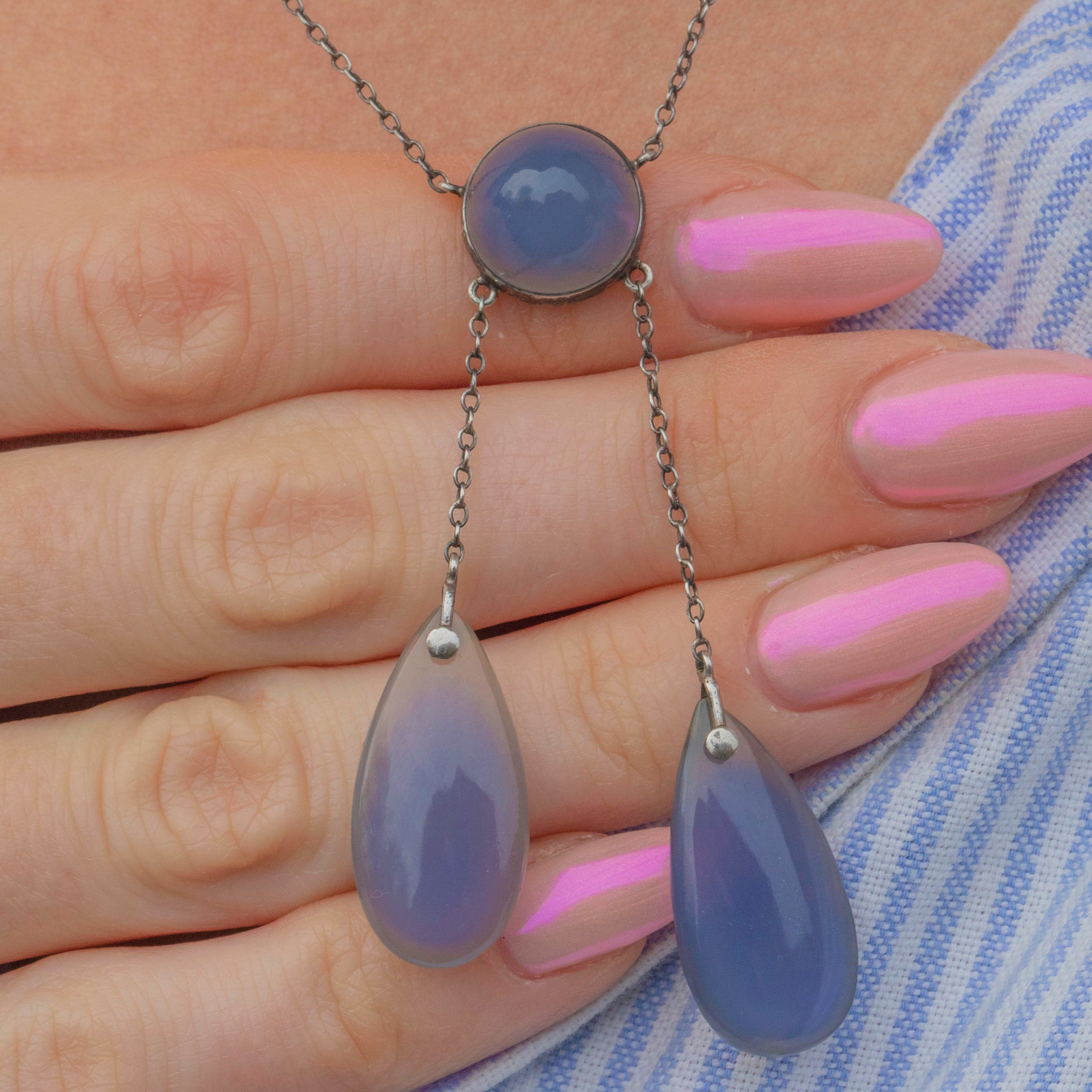This antique Silver blue Chalcedony negligee drop necklace is just dreamy!