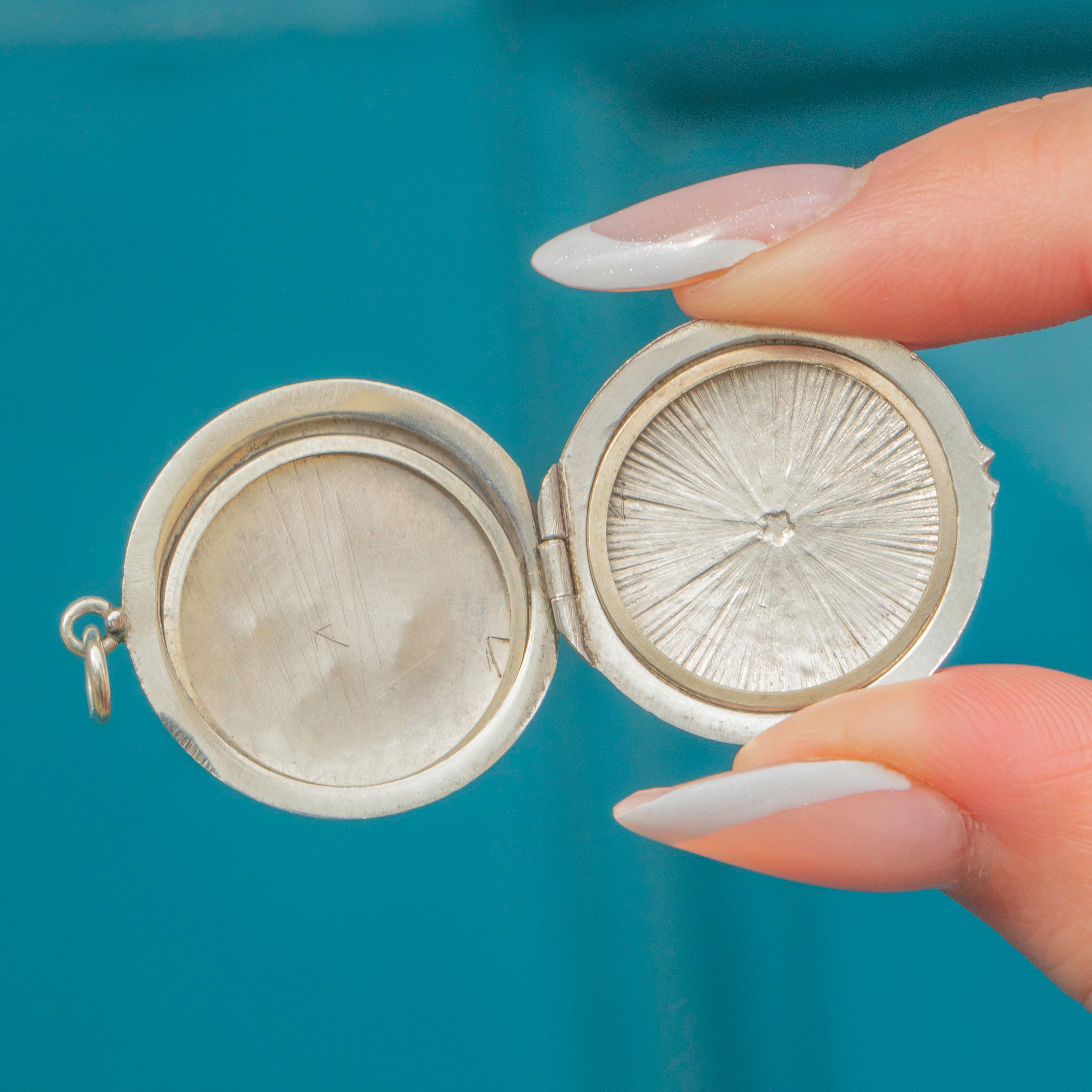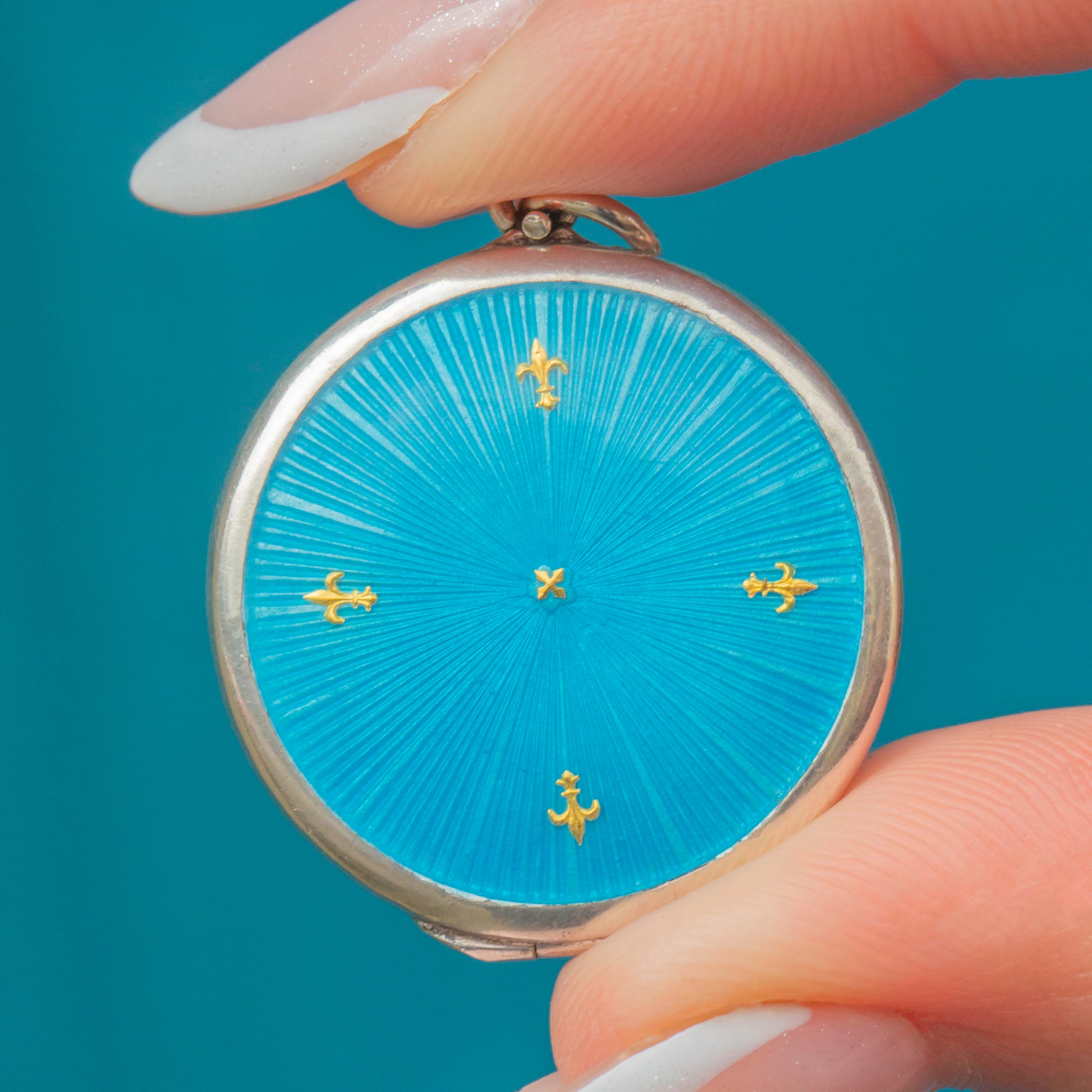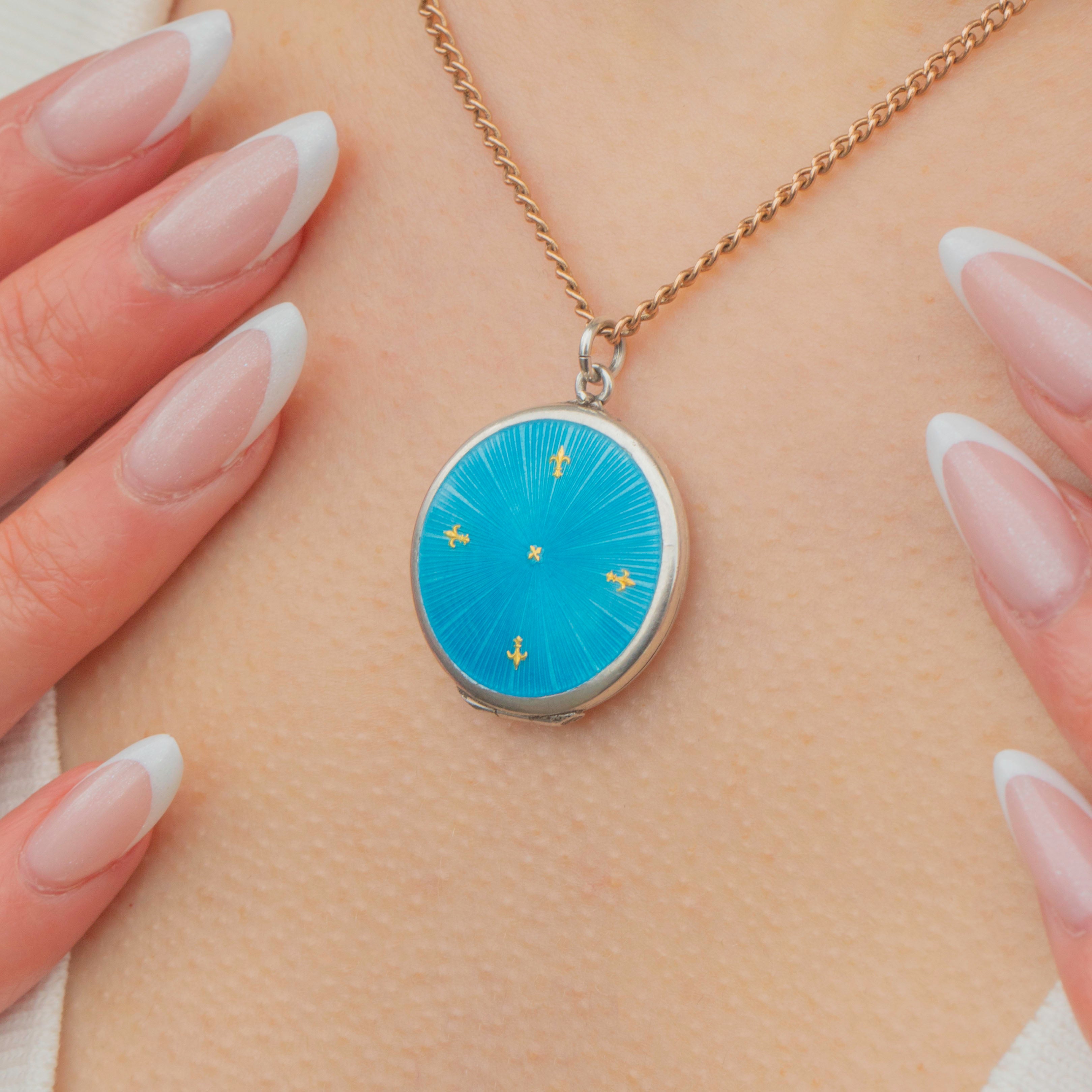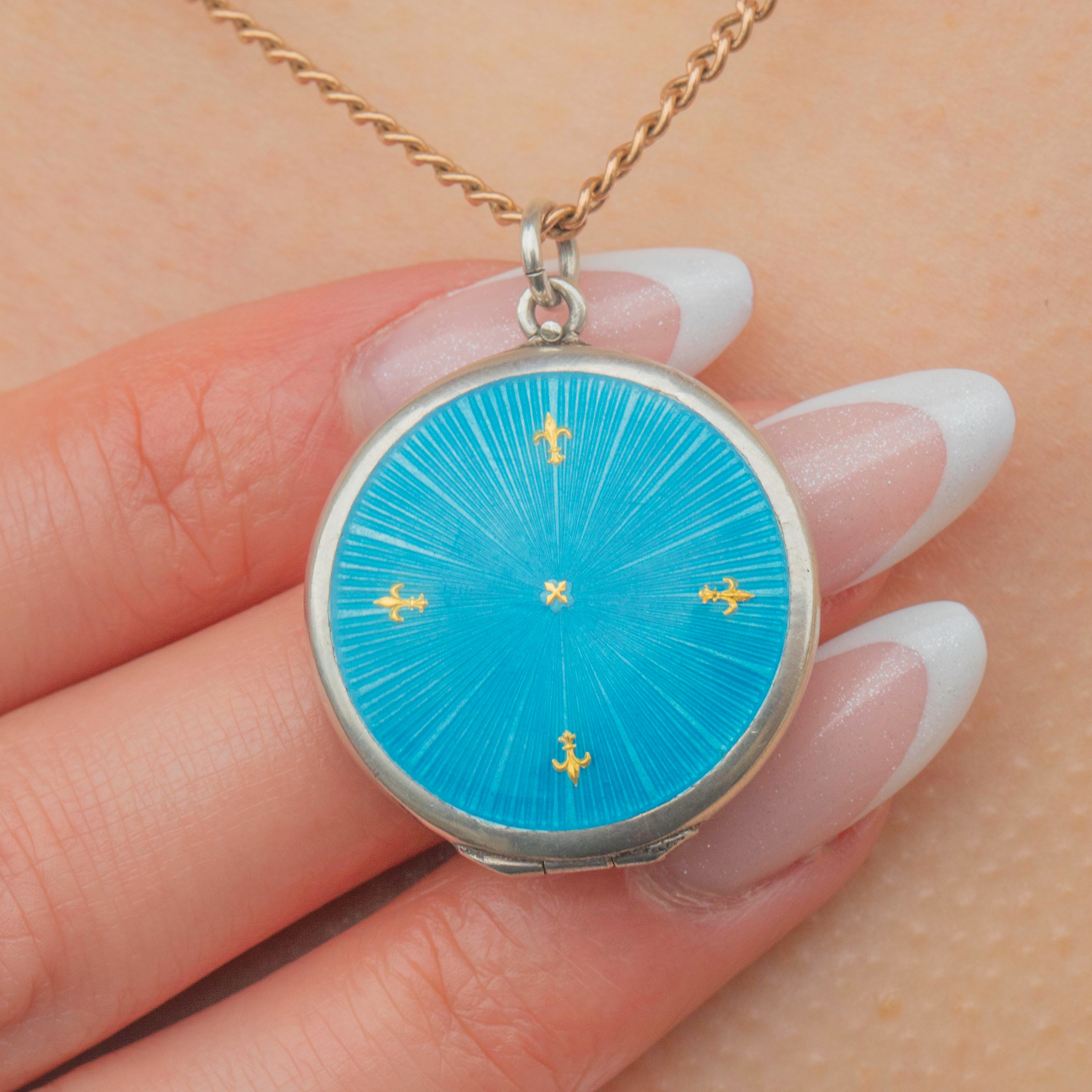 Add a pop of colour to your collection with this antique Silver blue Guilloché Enamel locket!
