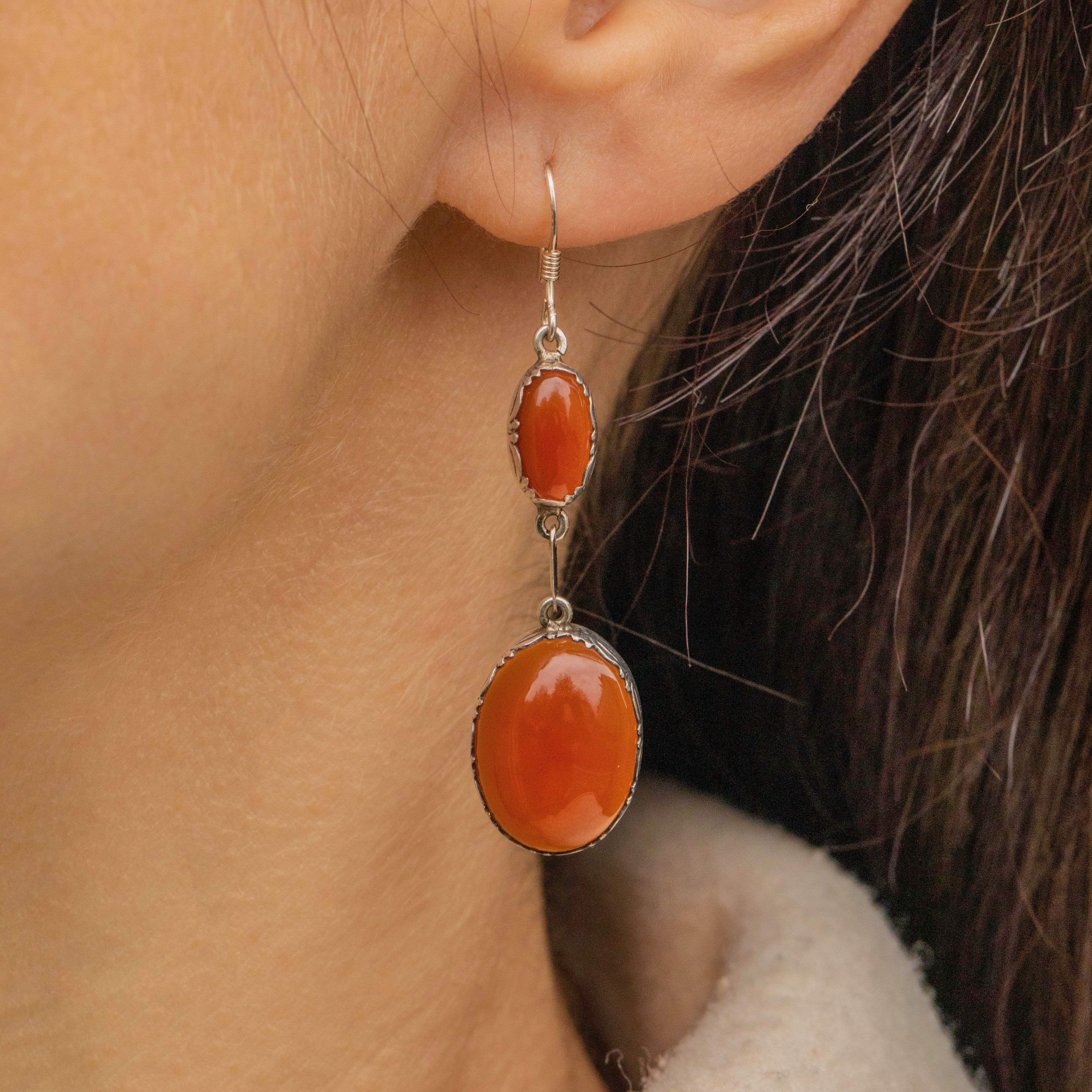 These antique Silver Carnelian cabochon drop earrings are just a delight!