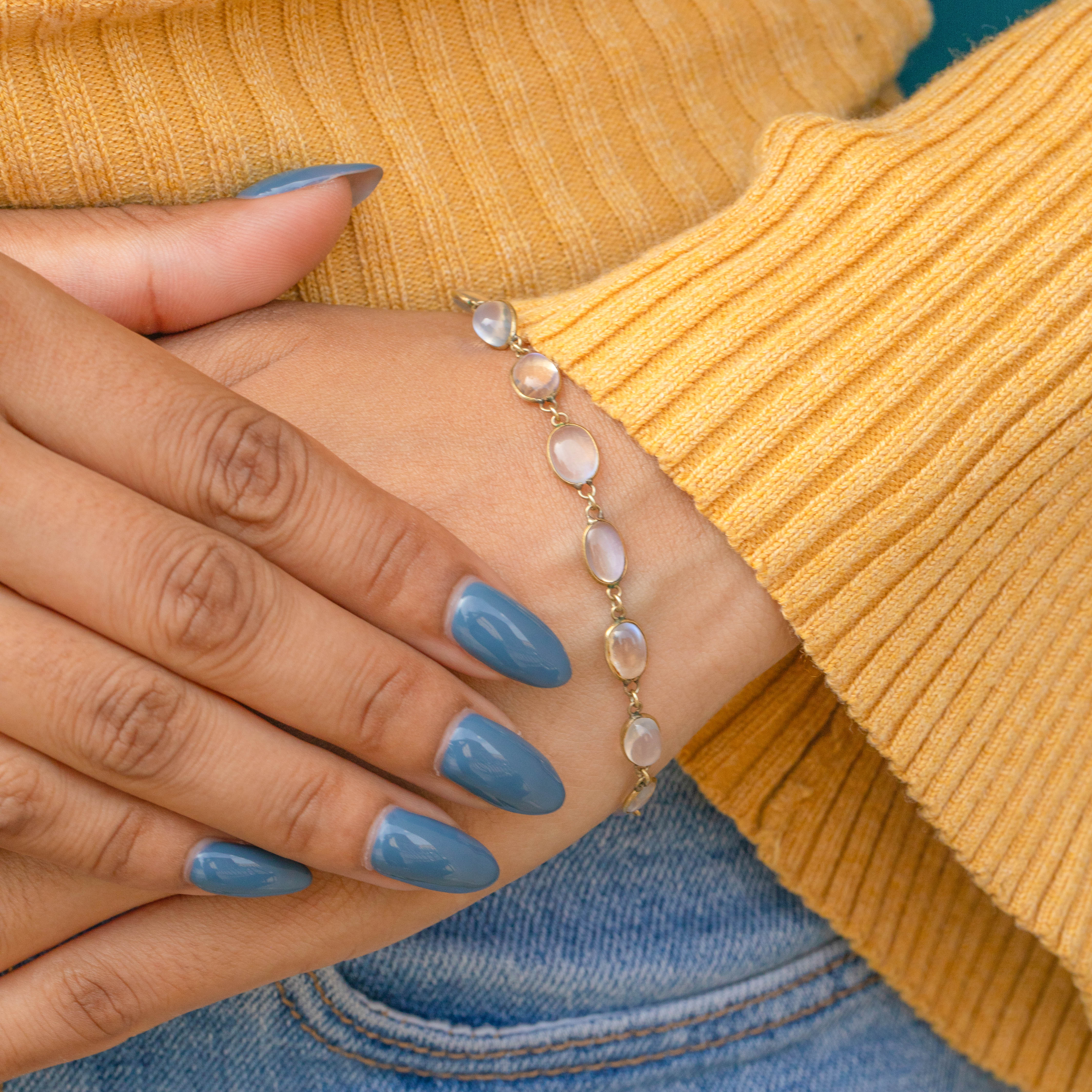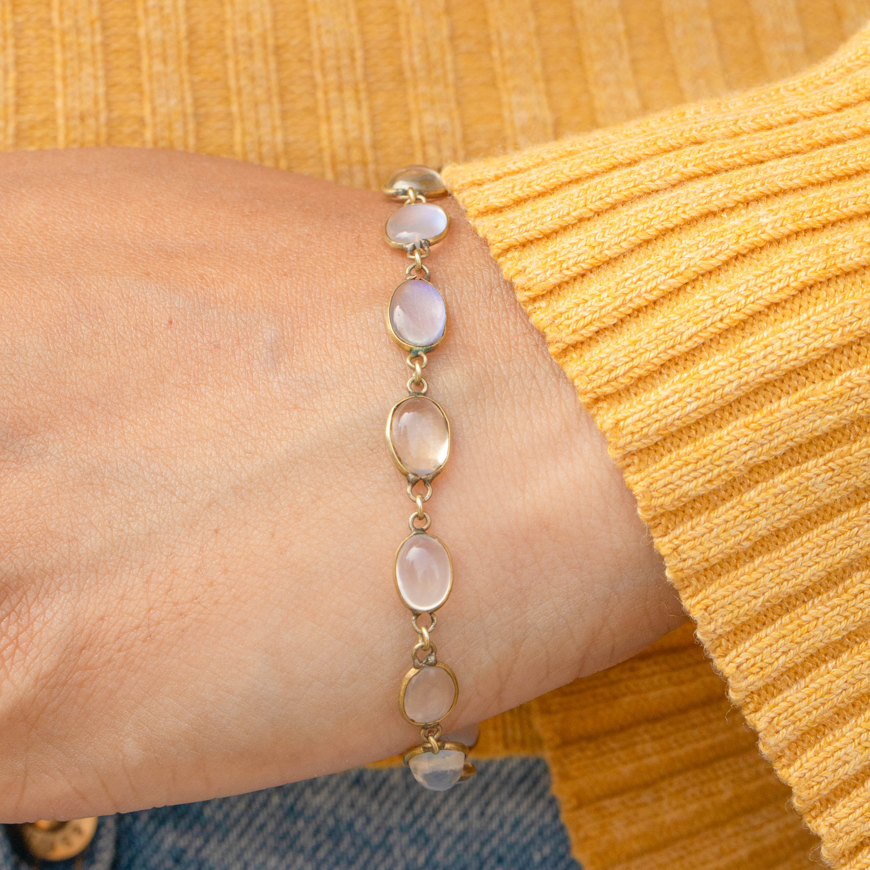 Bracelet ancien en argent doré avec pierre de lune et fermoir en or 9 carats, 11.20ct