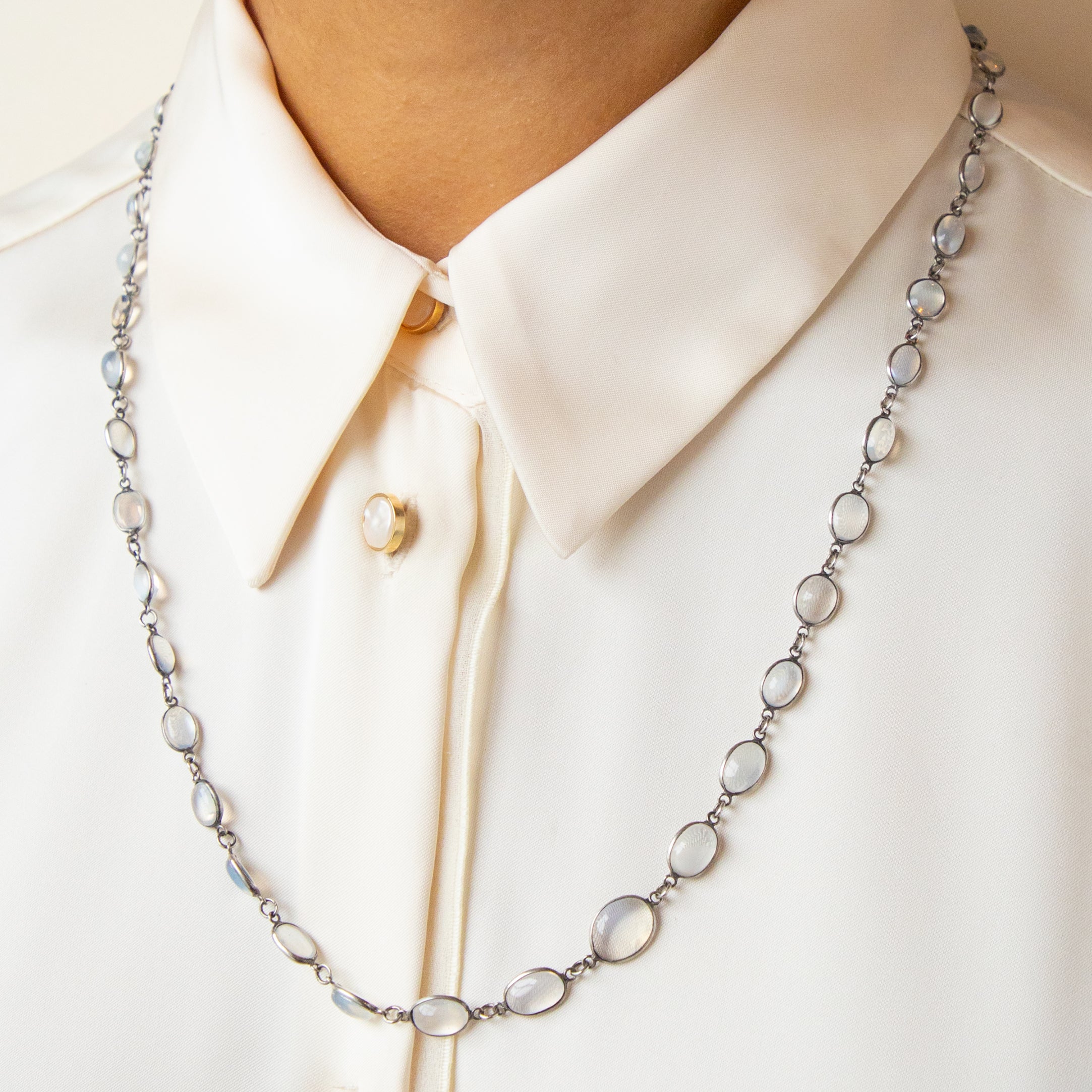 Collier rivière antique en argent avec pierre de lune, 28.45ct