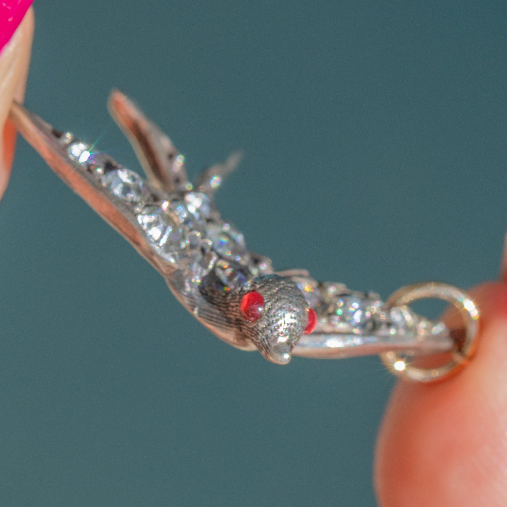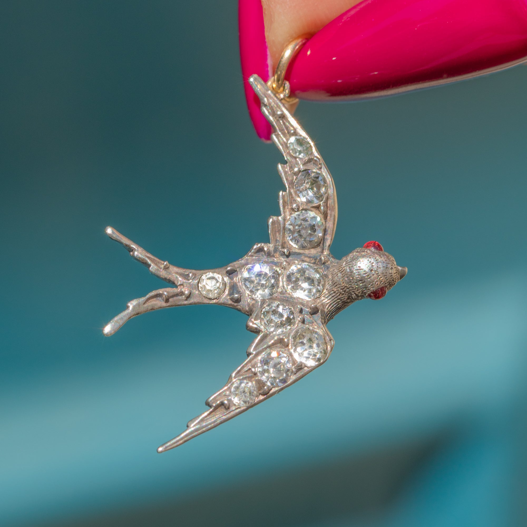 EXCELLENT: The Silver is bright and the Paste are all securely set, with no signs of dulling over the years! Complete with a soldered 9ct Gold jump ring, you can wear this antique swallow pendant with absolute confidence!