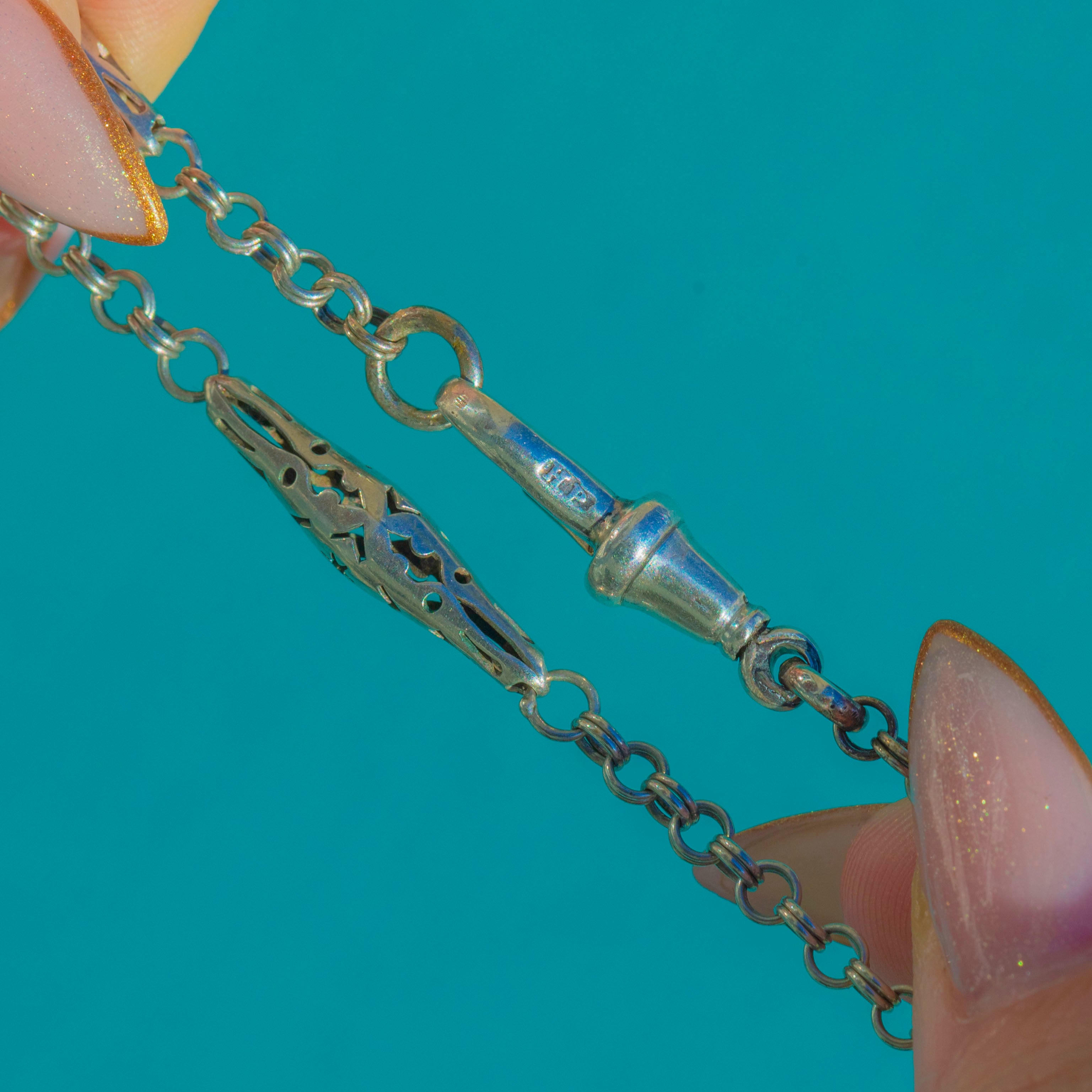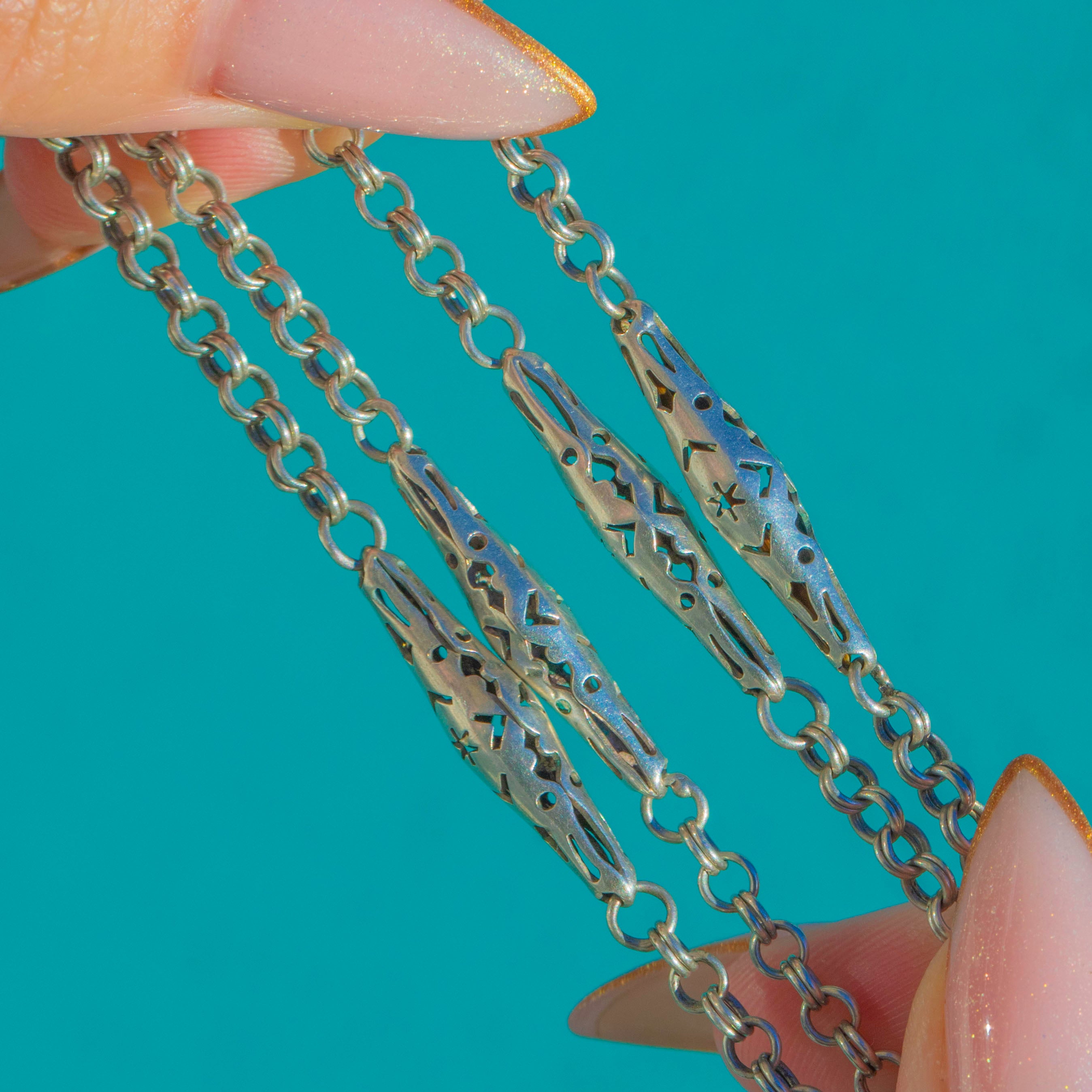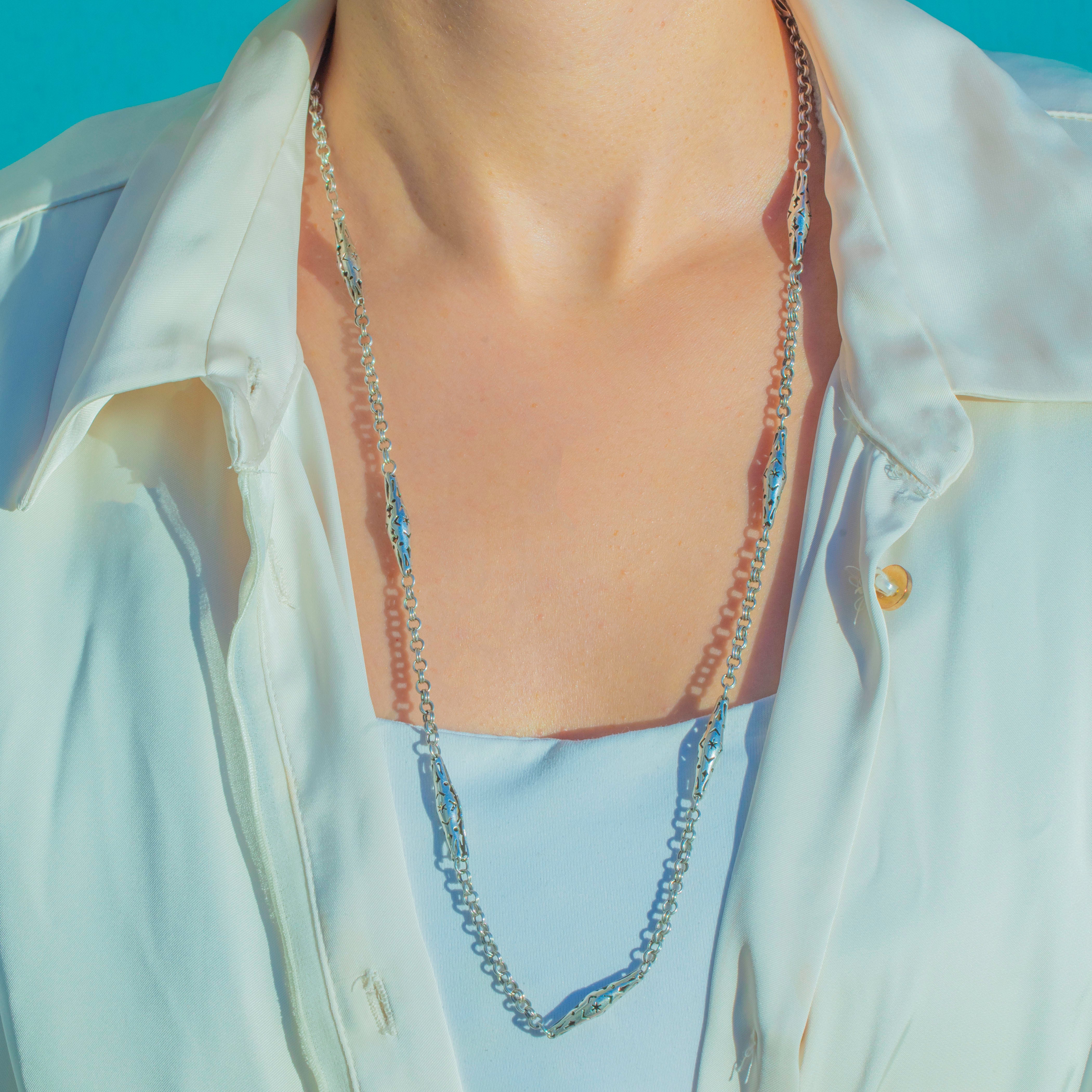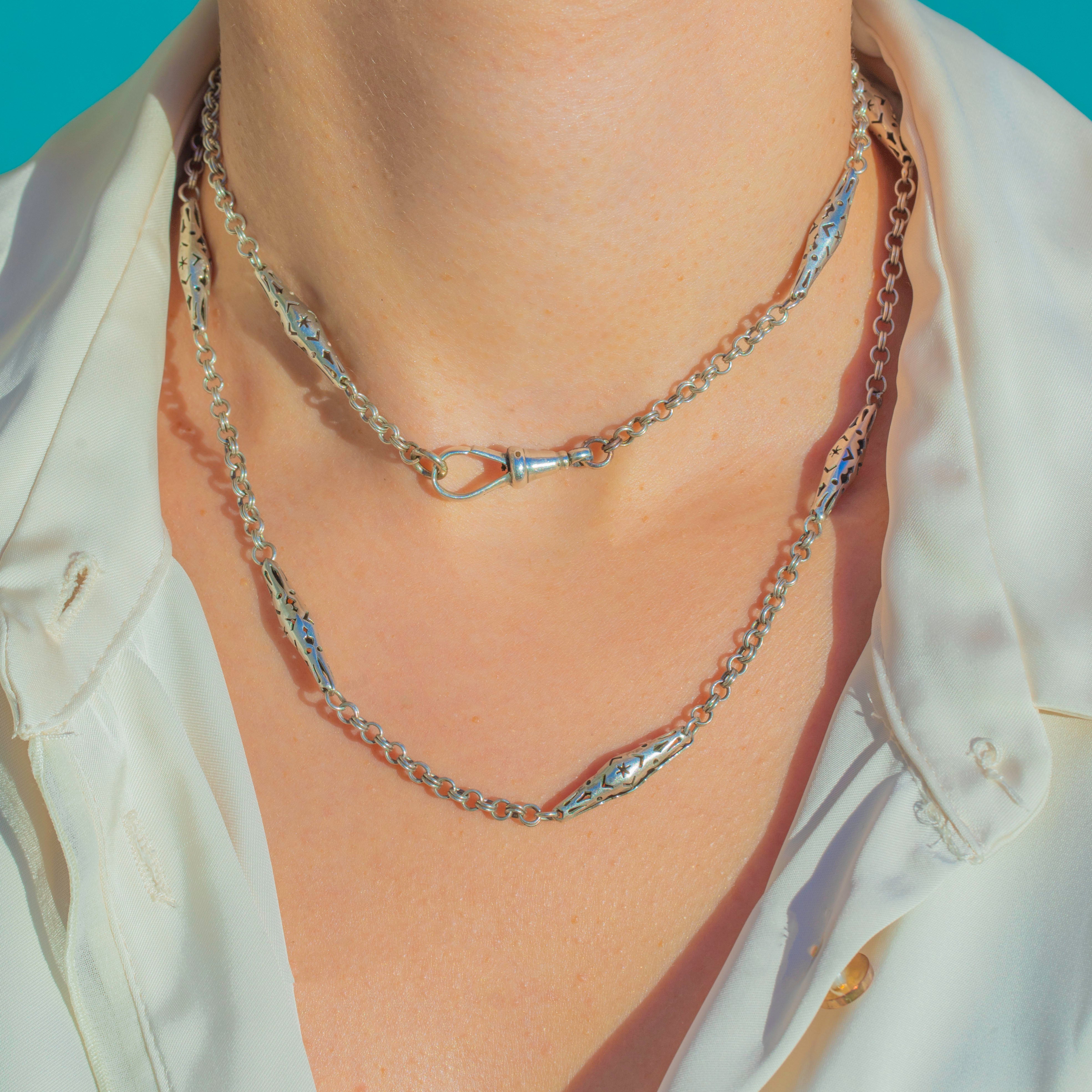 Collier chaîne en argent ancien avec étoiles ajourées, grand fermoir à clip pour chien