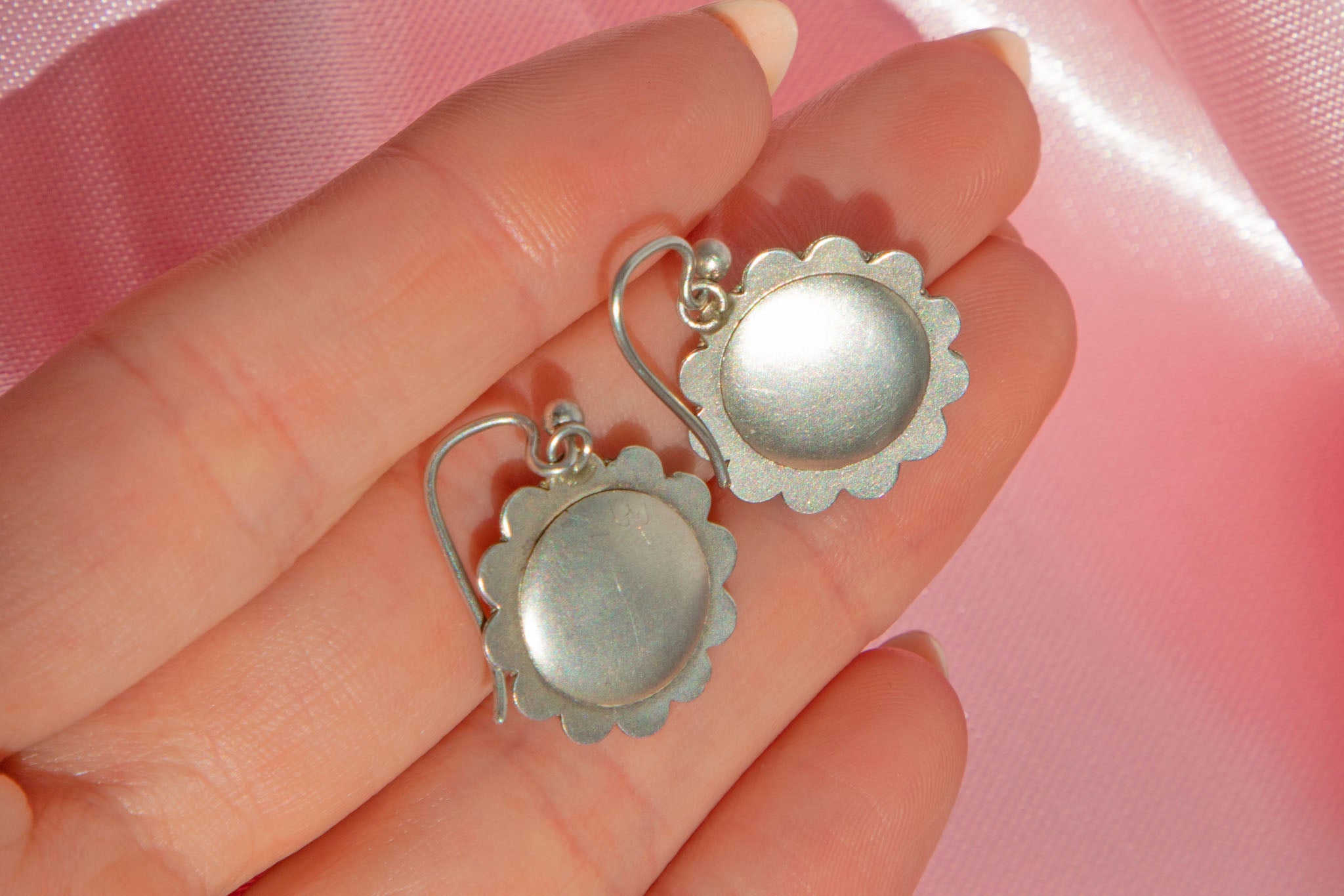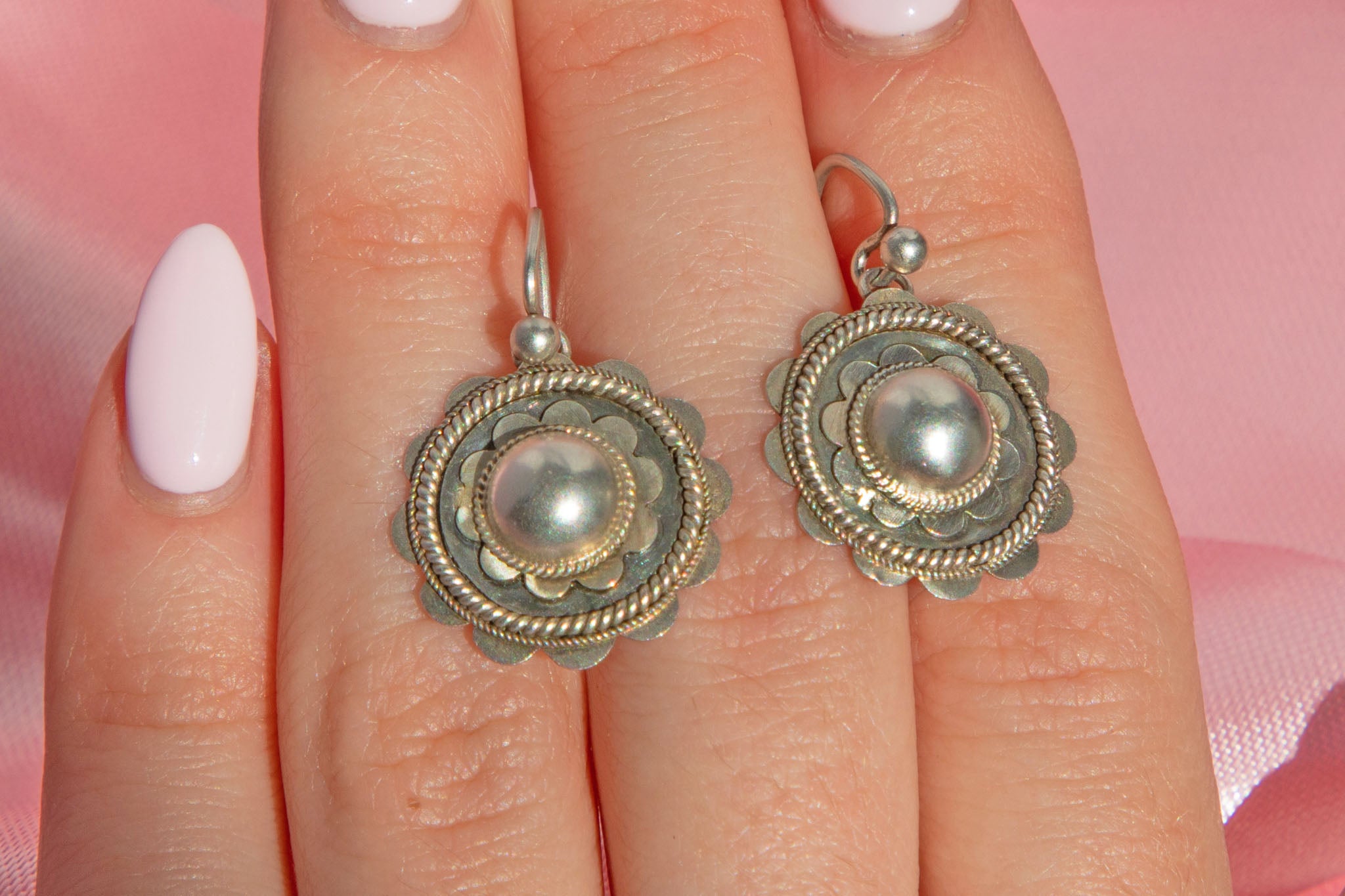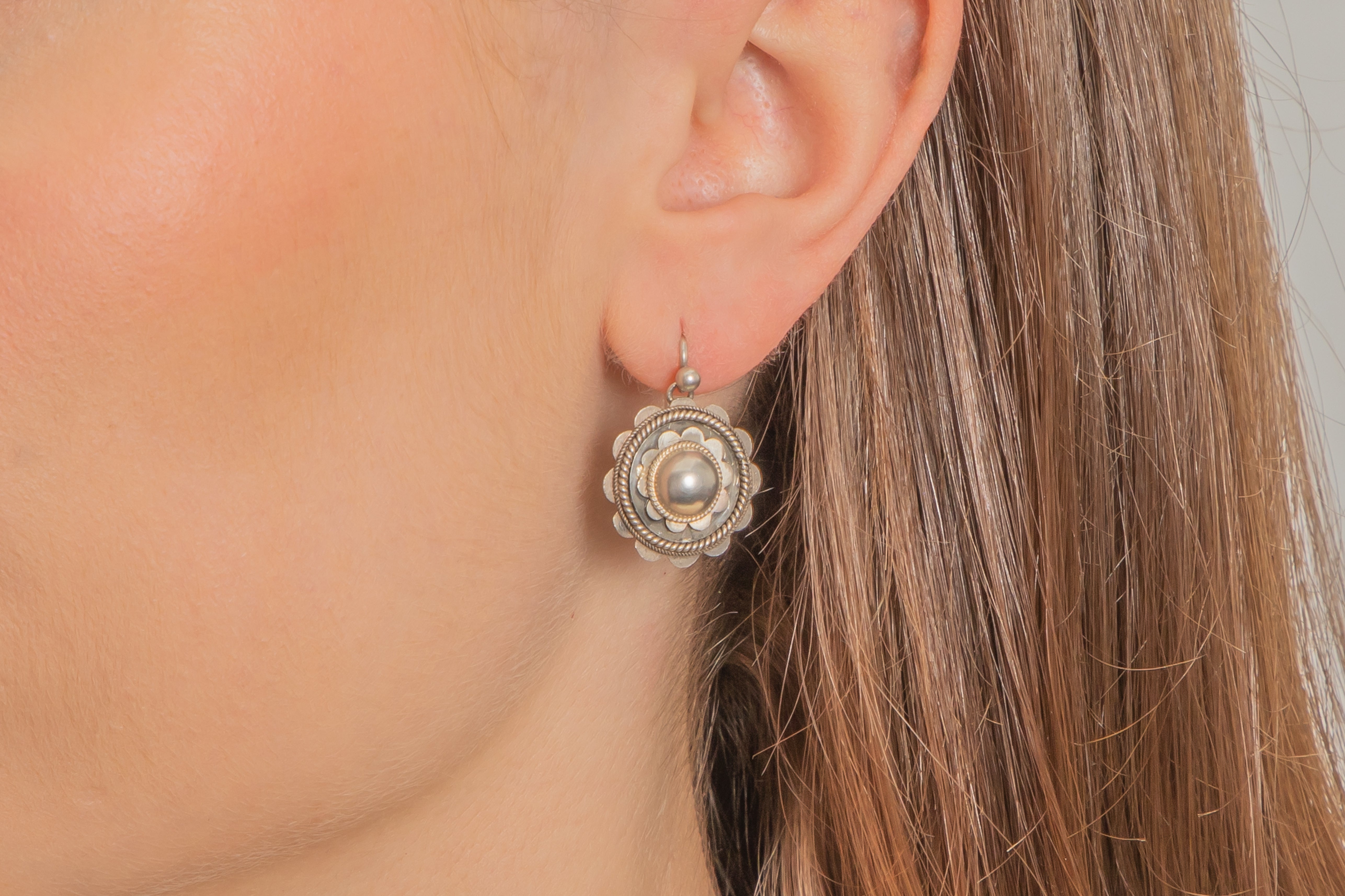 Boucles d'oreilles anciennes en argent en forme de fleur rondelette