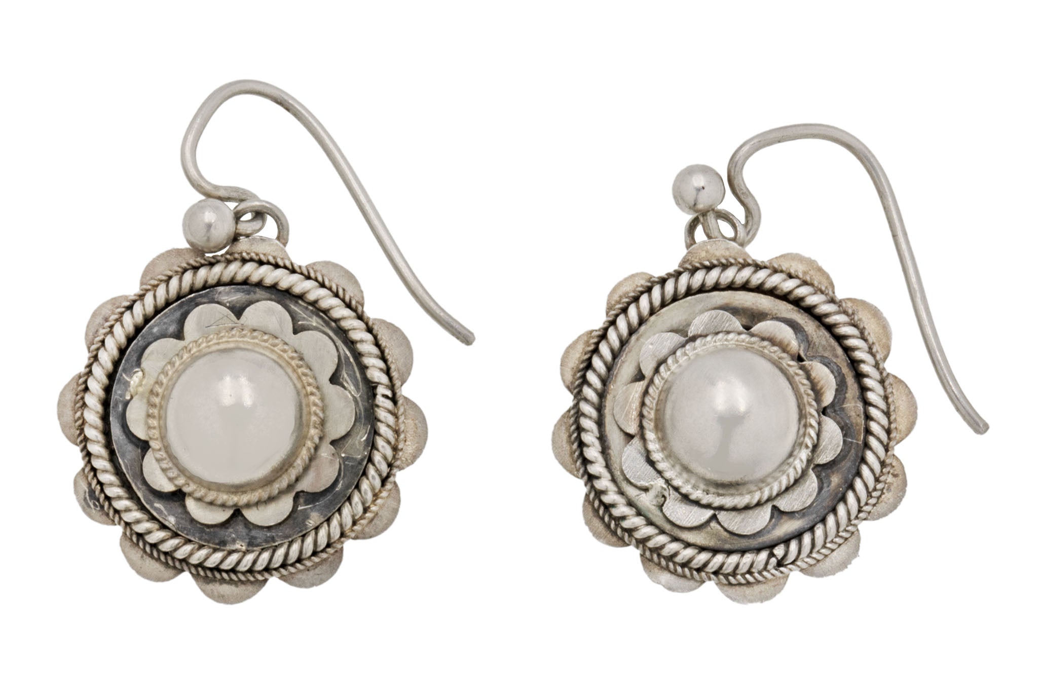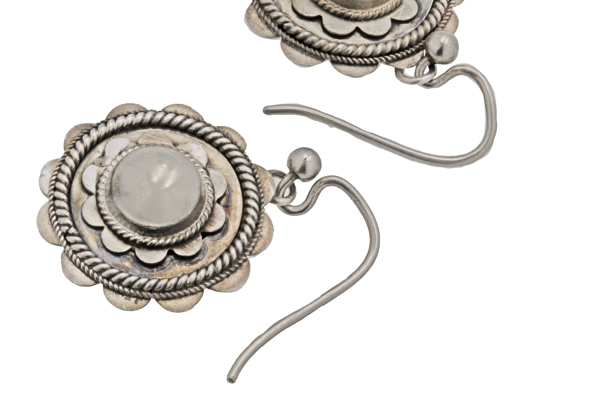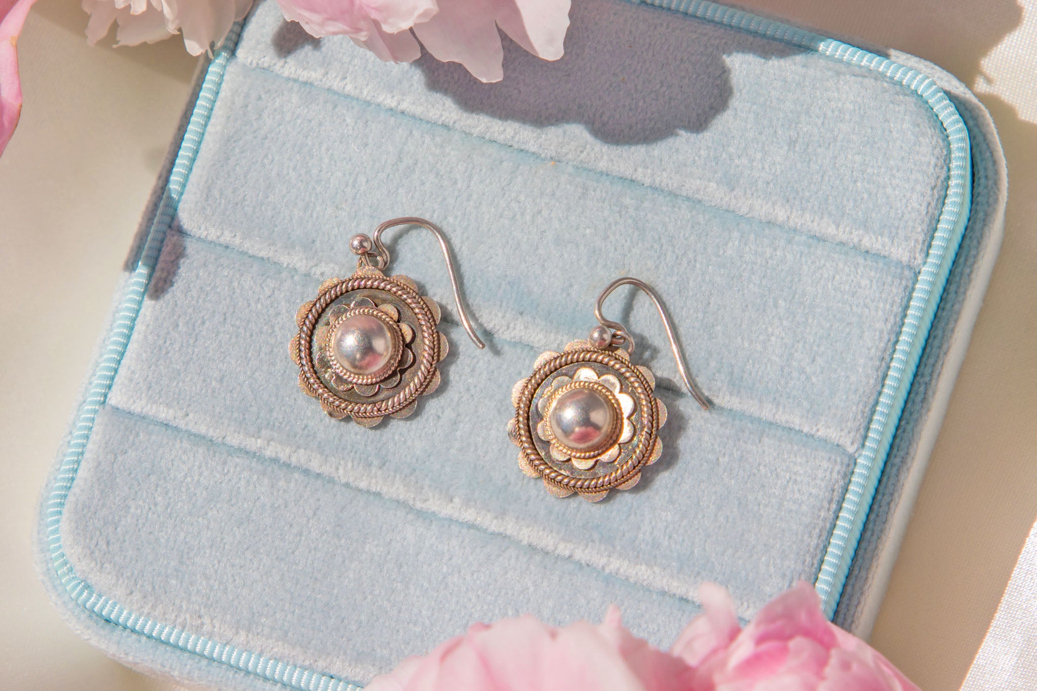 Boucles d'oreilles anciennes en argent en forme de fleur rondelette